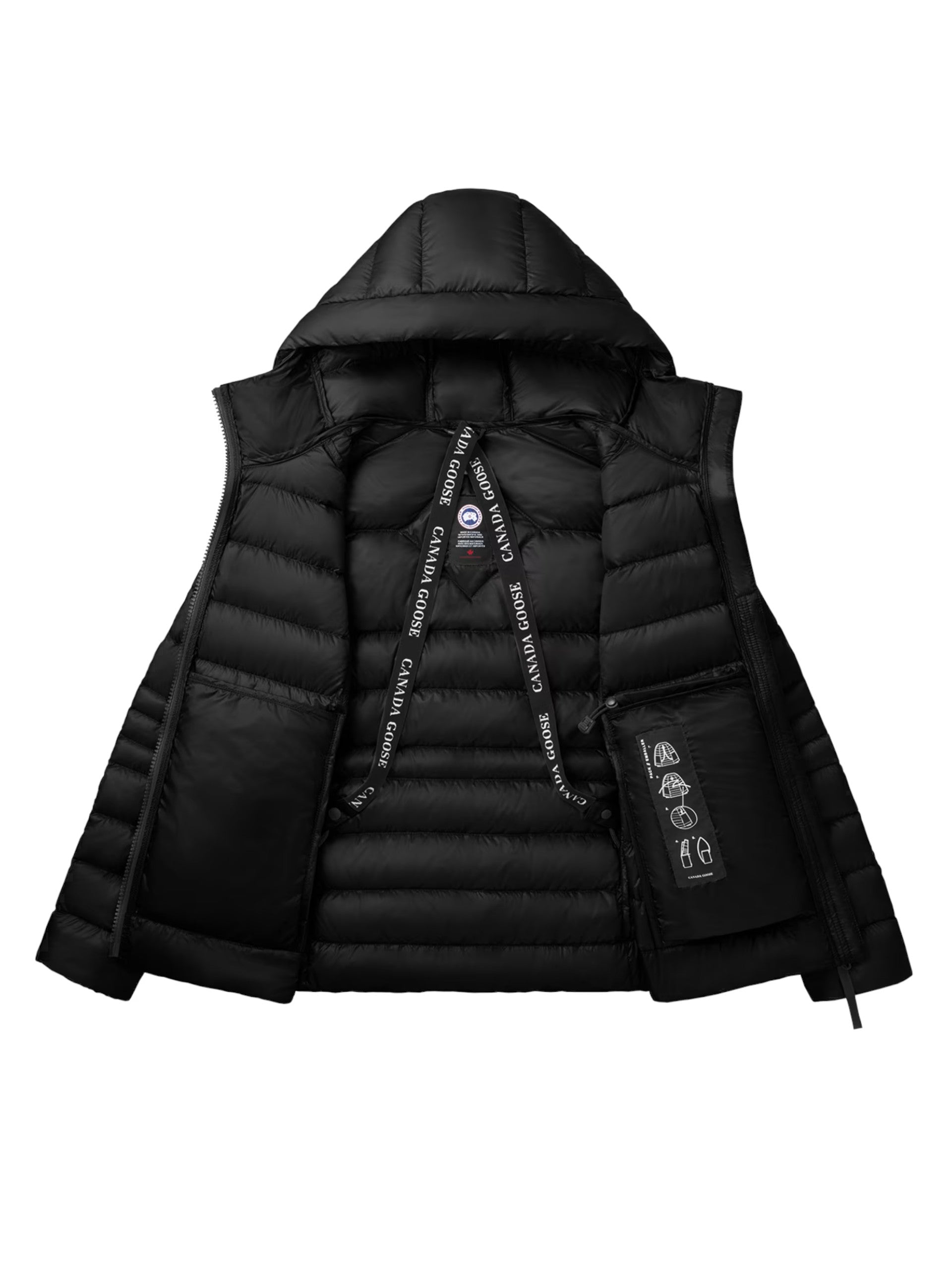 Piumino Canada Goose Cypress Hoody nero da donna con bretelle interne 2242