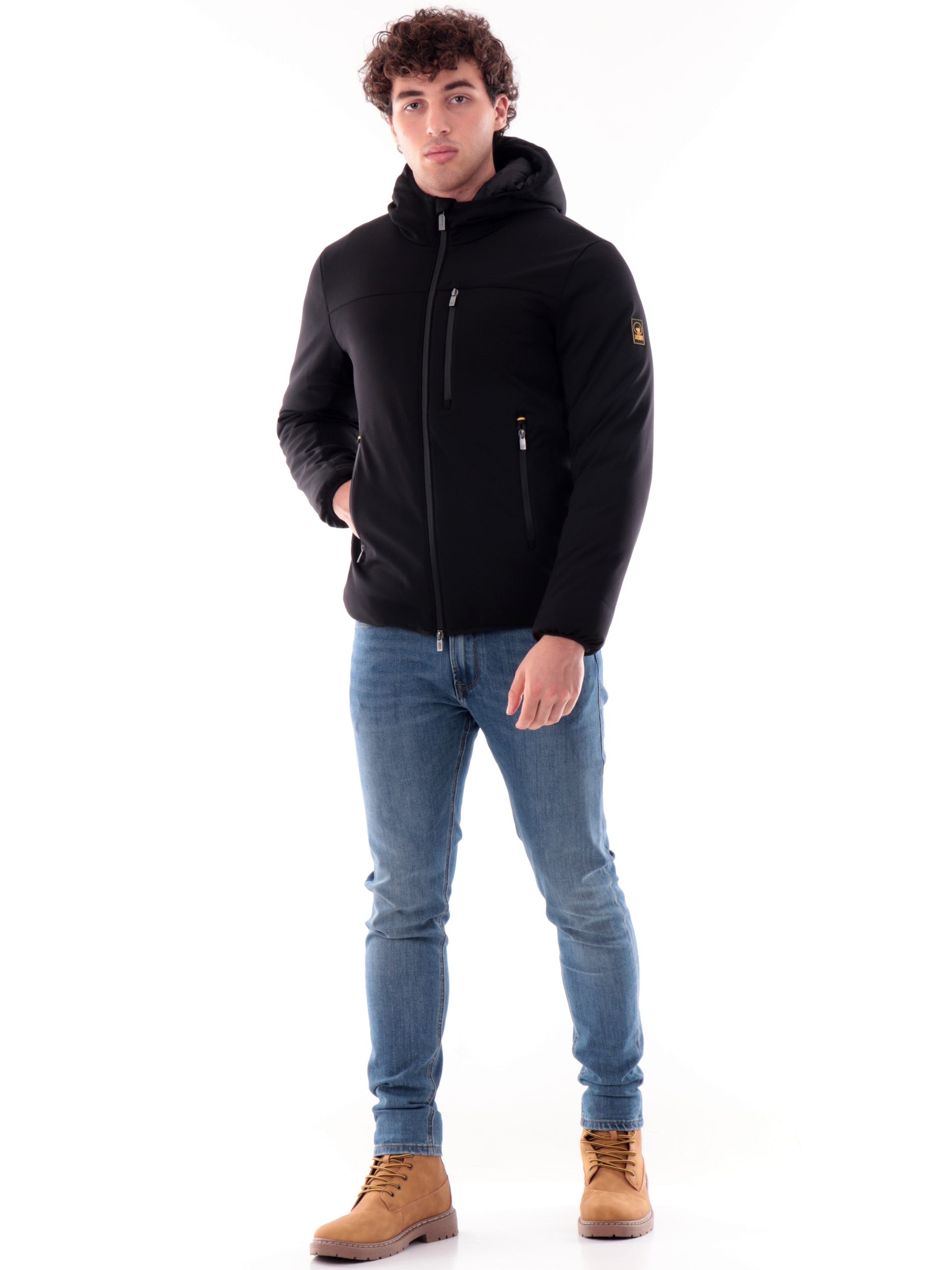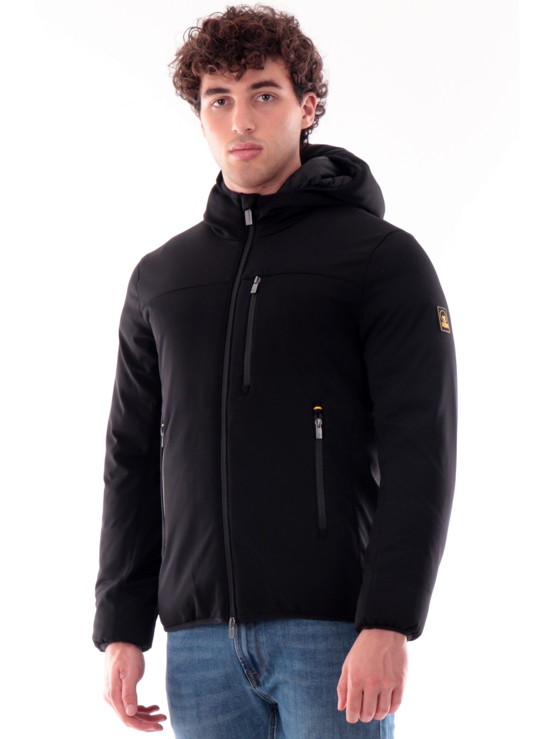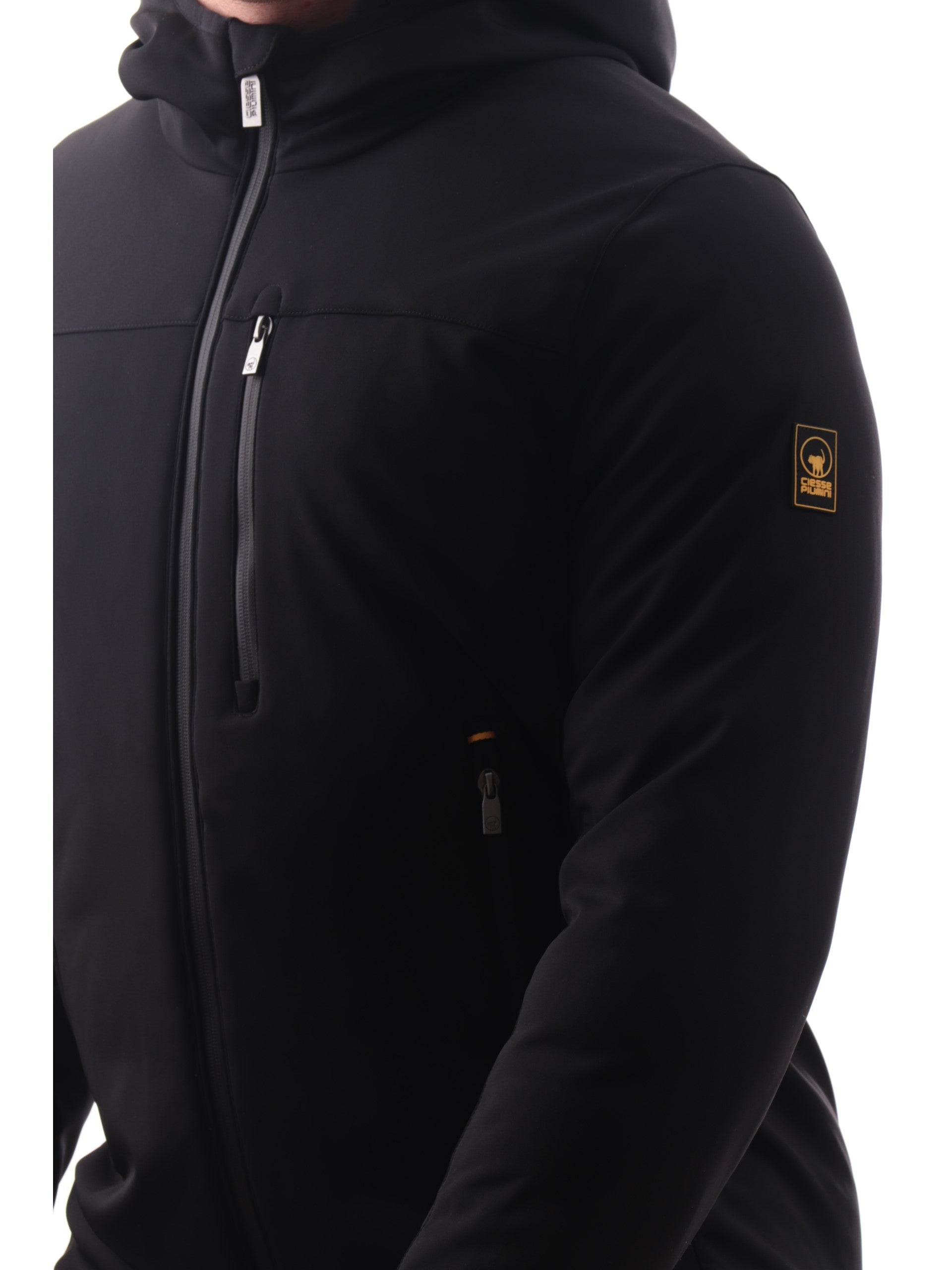 Giacca Ciesse Piumini Jayden 3.0 nera da uomo con cappuccio fisso ed imbottitura sintetica. Giubbino uomo Ciesse con allacciatura frontale, cerniera termonastrata a doppio cursore, due tasche laterali, polsini elasticizzati e bordo regolabile per una vestibilità avvolgente. Il patch con il logo gommato Ciesse è applicato sul braccio sinistro. Giubbino Ciesse da uomo realizzato con un tessuto esterno robusto e idrorepellente, ha una texture liscia, è versatile e si adatta ad ogni uso, senza rinunciare allo stile.