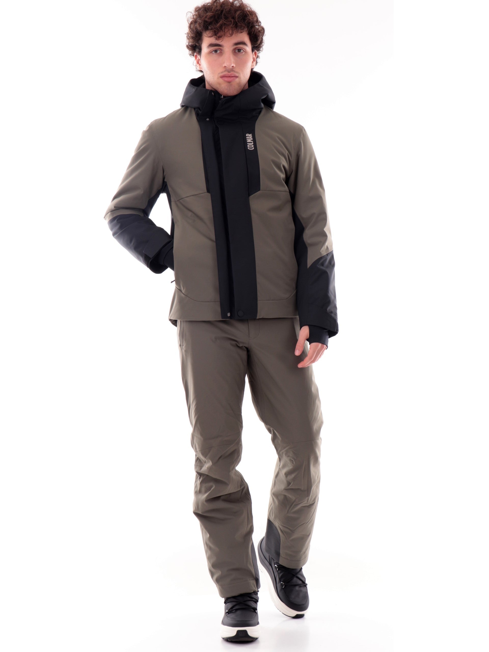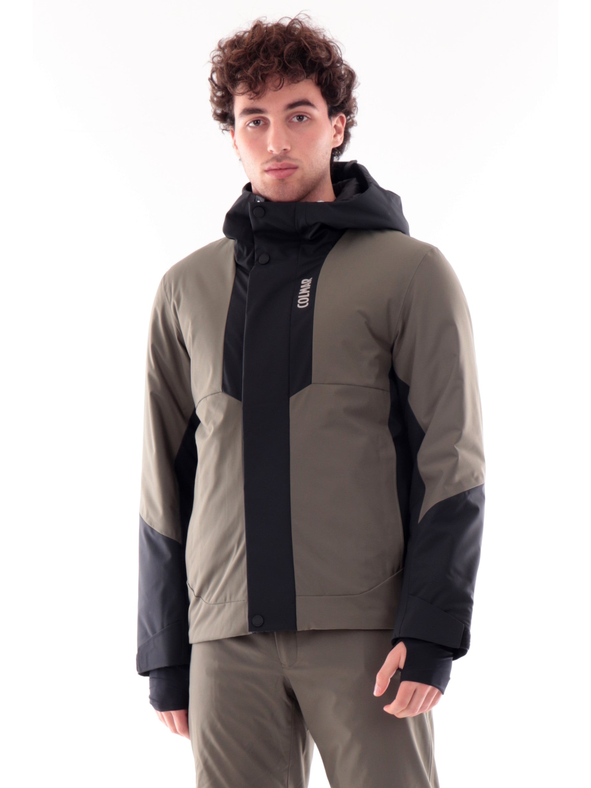 Giacca da sci verde da uomo Colmar. Questa giacca da neve è realizzata in tessuto stretch meccanico,impermeabile e traspirante che garantisce massima libertà di movimento durante le giornate in pista, assicurando performance ottimali nelle discese e nelle curve. Questa giacca è realizzata da un'imbottita con ovatta Clo Univa Eco e offre la giusta protezione dal freddo per vivere al meglio ogni momento sulla neve. Questo giubbino verde da neve è caratterizzato dal cappuccio fisso con coulisse, chiusura centrale full zip con patta e con una tasca, due tasche laterali con zip, polsini elasticizzati e fondo regolare con coulisse, all'interno troviamo due tasche, una con zip e una aperta.