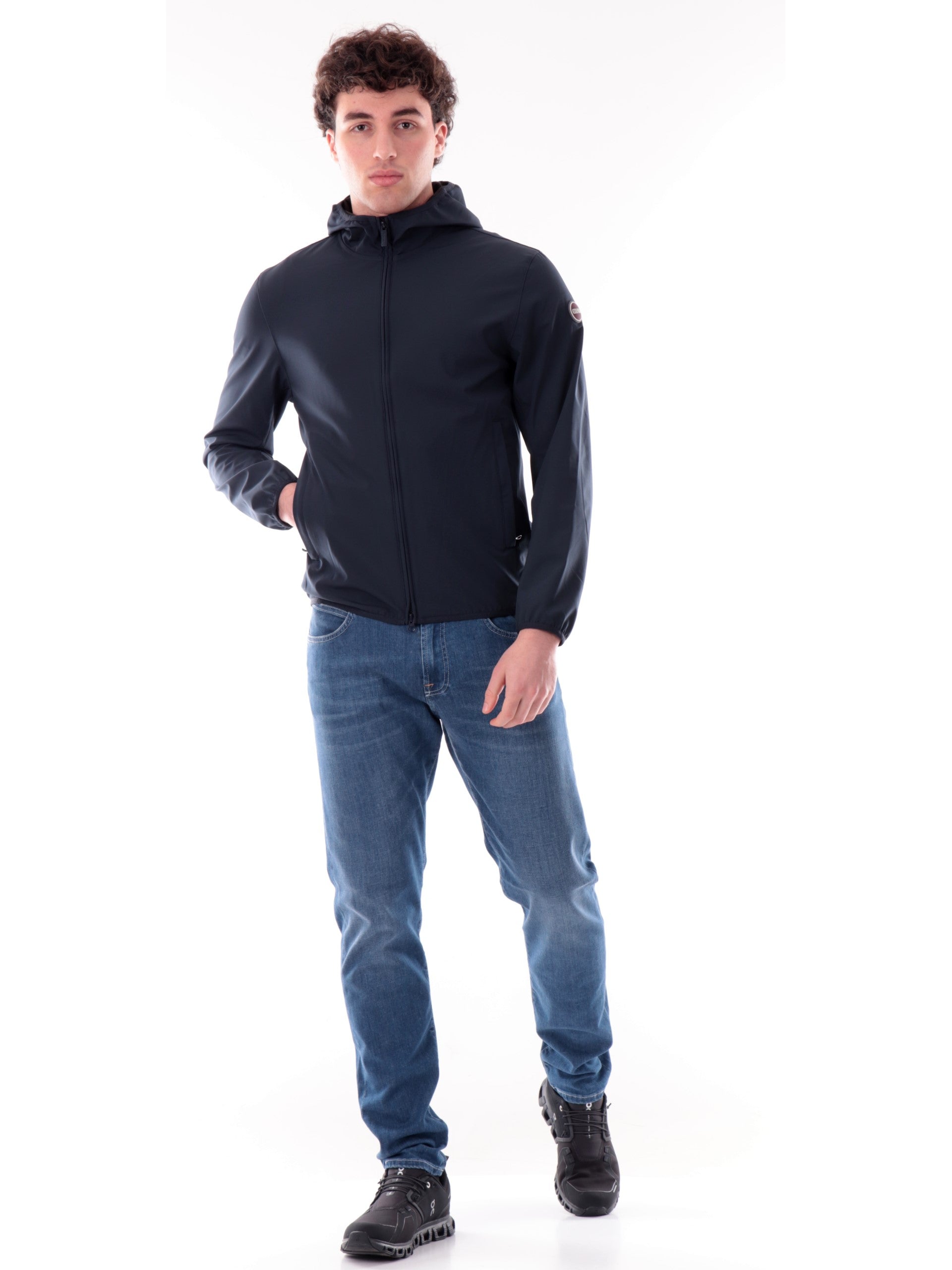 Giacca Colmar blu da uomo in softshell impermeabile. Questa giacca Colmar impermeabile, ideale per affrontare al meglio ogni situazione, è caratterizzata dal cappuccio fisso con bordo elasticizzato, chiusura full zip con doppio cursore, due tasche con zip, polsini e fondo elasticizzati e il logo ricamato sulla manica sinistra. Ideale per le giornate di primavera e le sere d’estate.