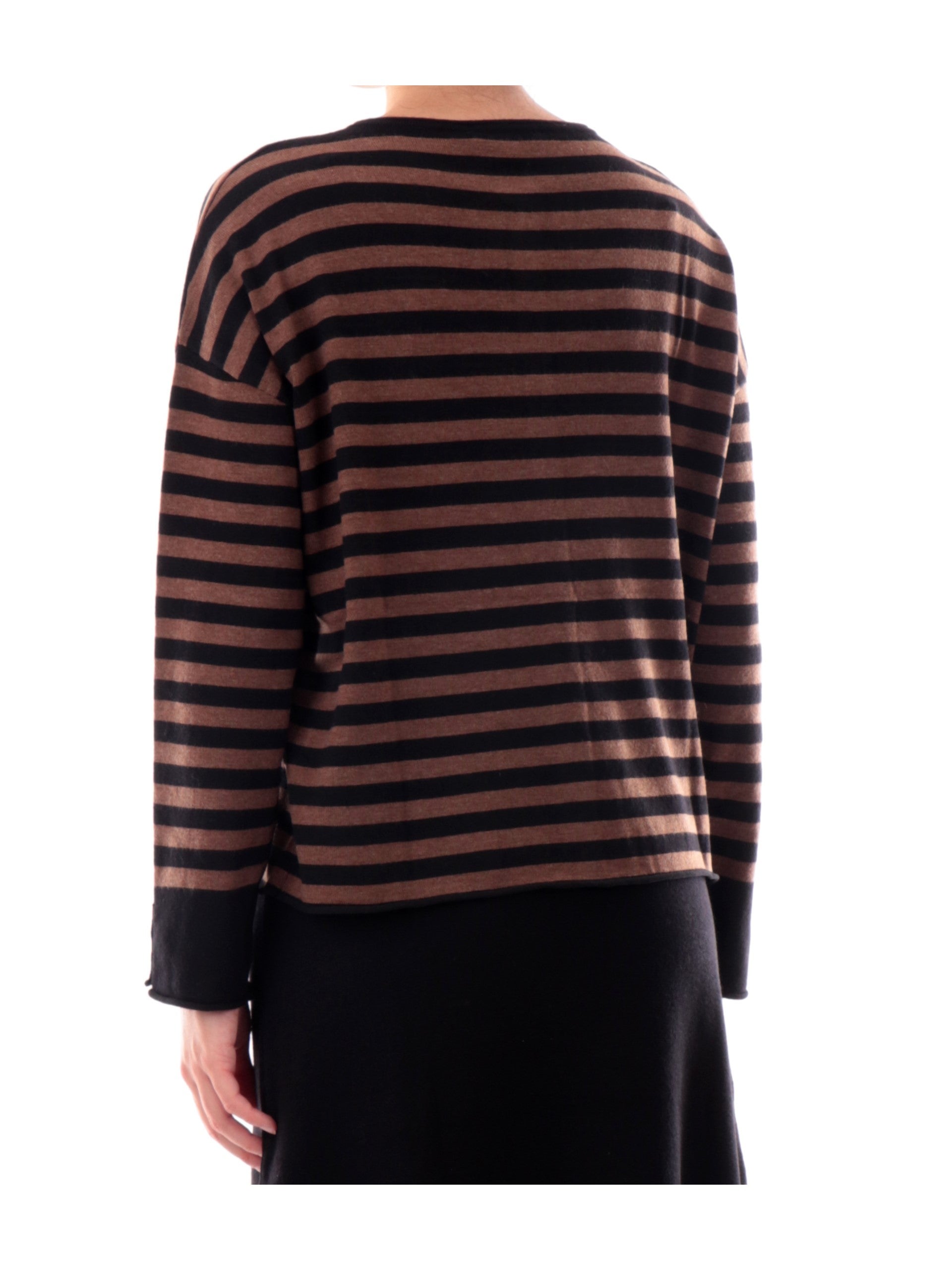 Maglione Anis marrone a righe da donna colletto alla coreana 255W1265