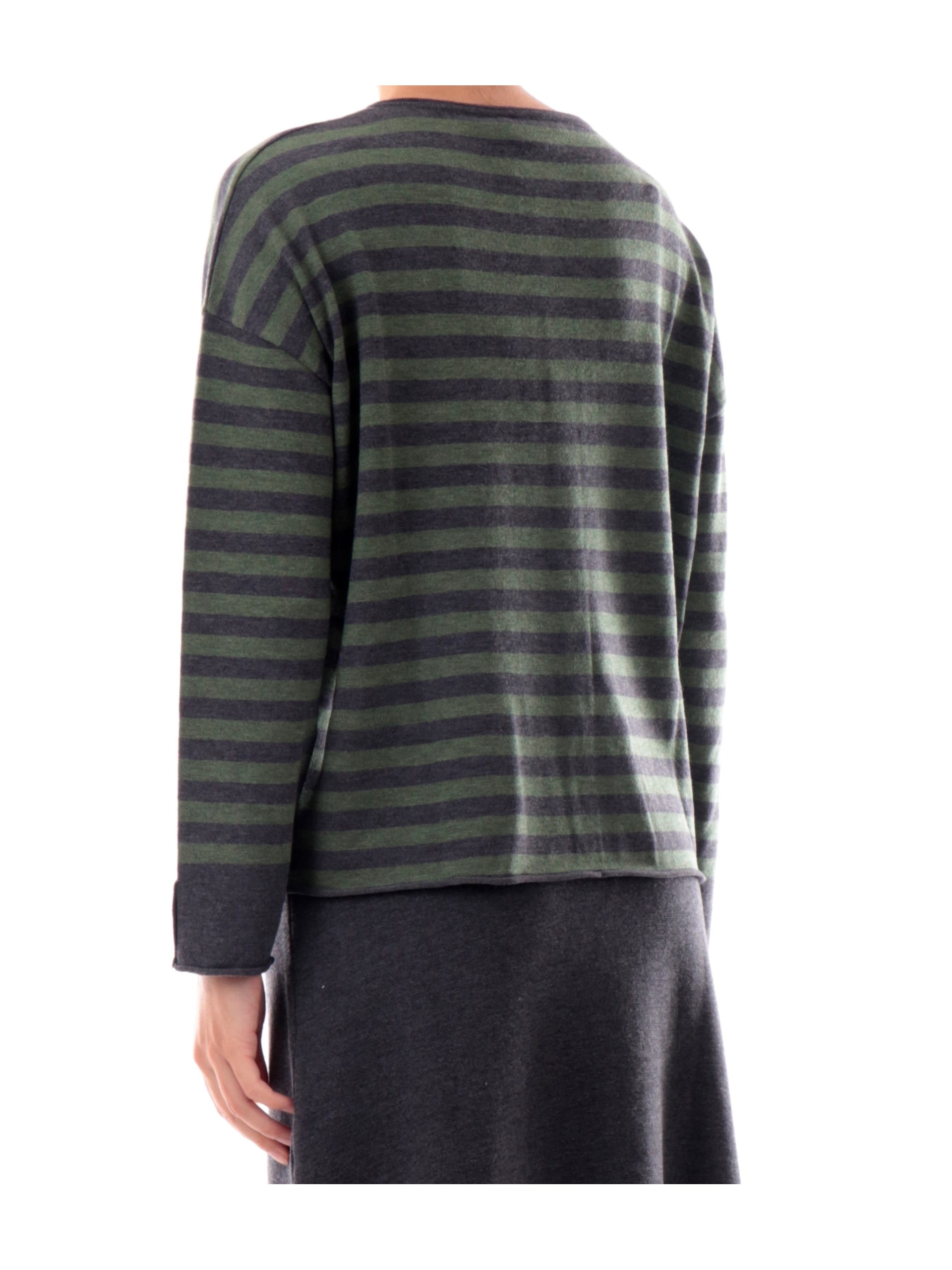 Maglione Anis verde a righe da donna colletto alla coreana 255W1265