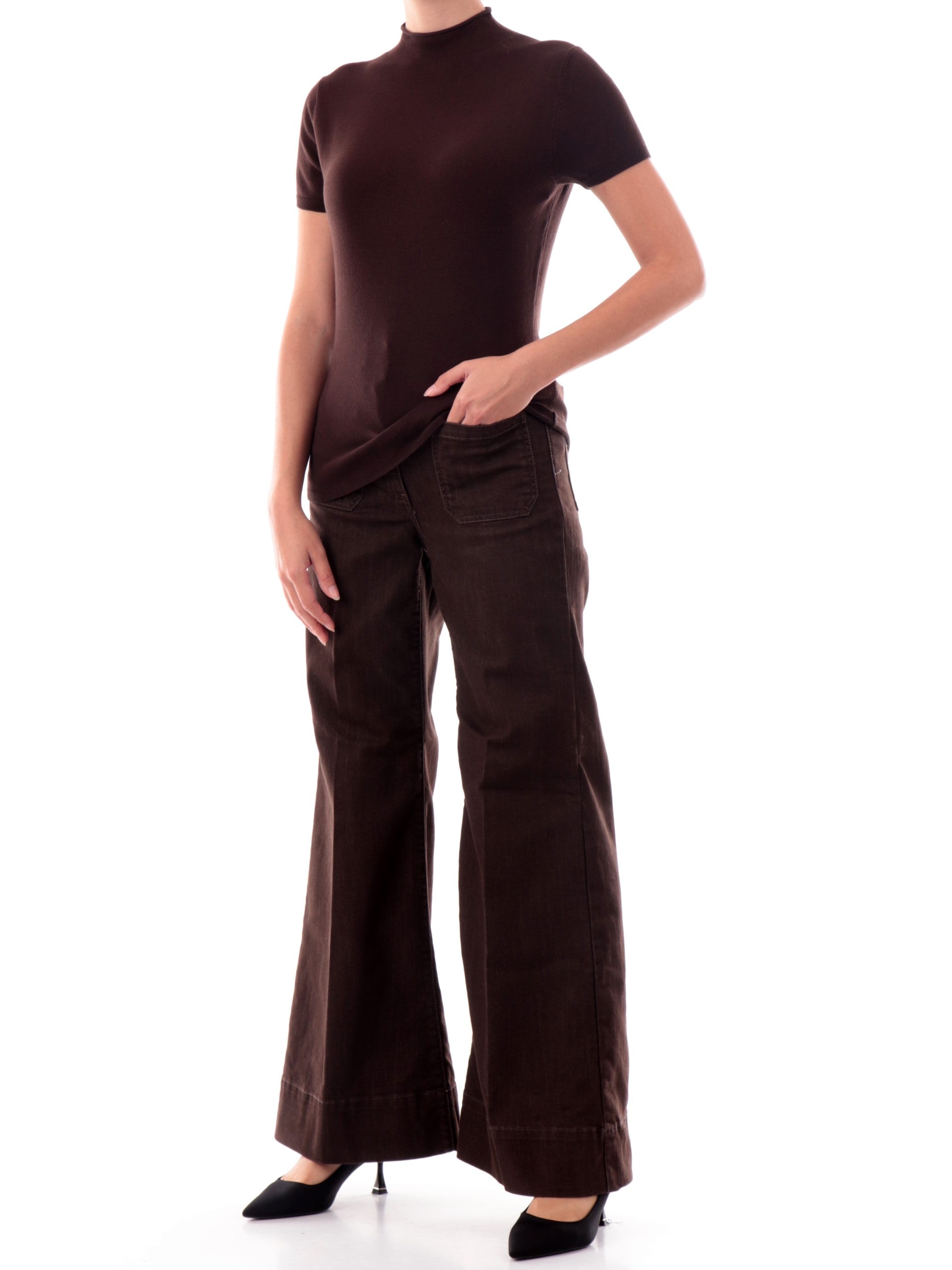 Maglia Anis dolcevita marrone. Questo lupetto Anis White marrone è realizzato in morbida viscosa elasticizzata che lo rende perfetto da utilizzare come maglia collo alto versatile e facile da abbinare.