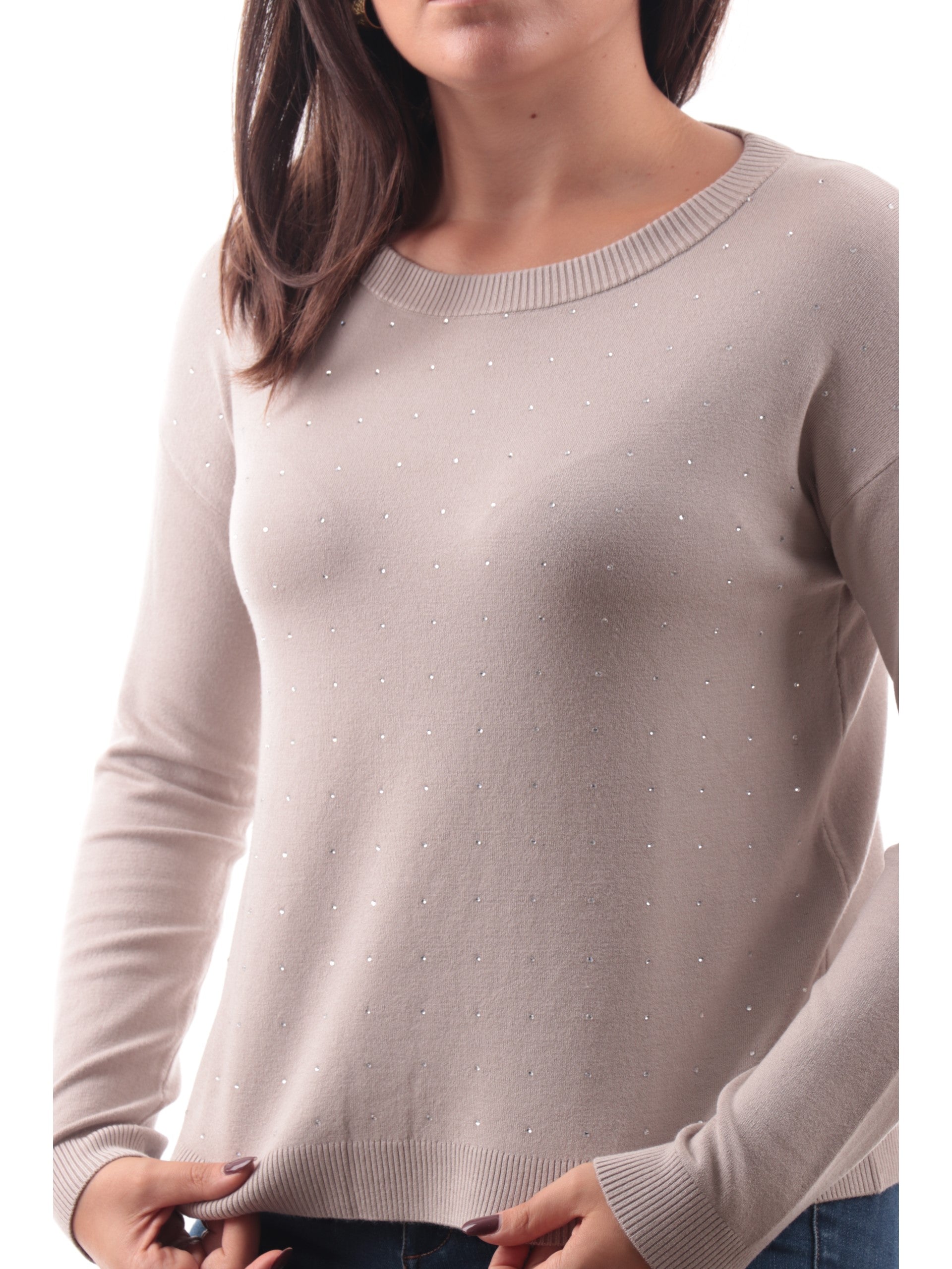 Maglia Anis white beige da donna con strass realizzata in morbido filato di viscosa delicata elasticizzata . Questo maglione Anis beige da donna è una maglia Anis versatile e comoda, perfetta per ogni situazione. La sua vestibilità morbida lo rende adatto ad ogni donna.
