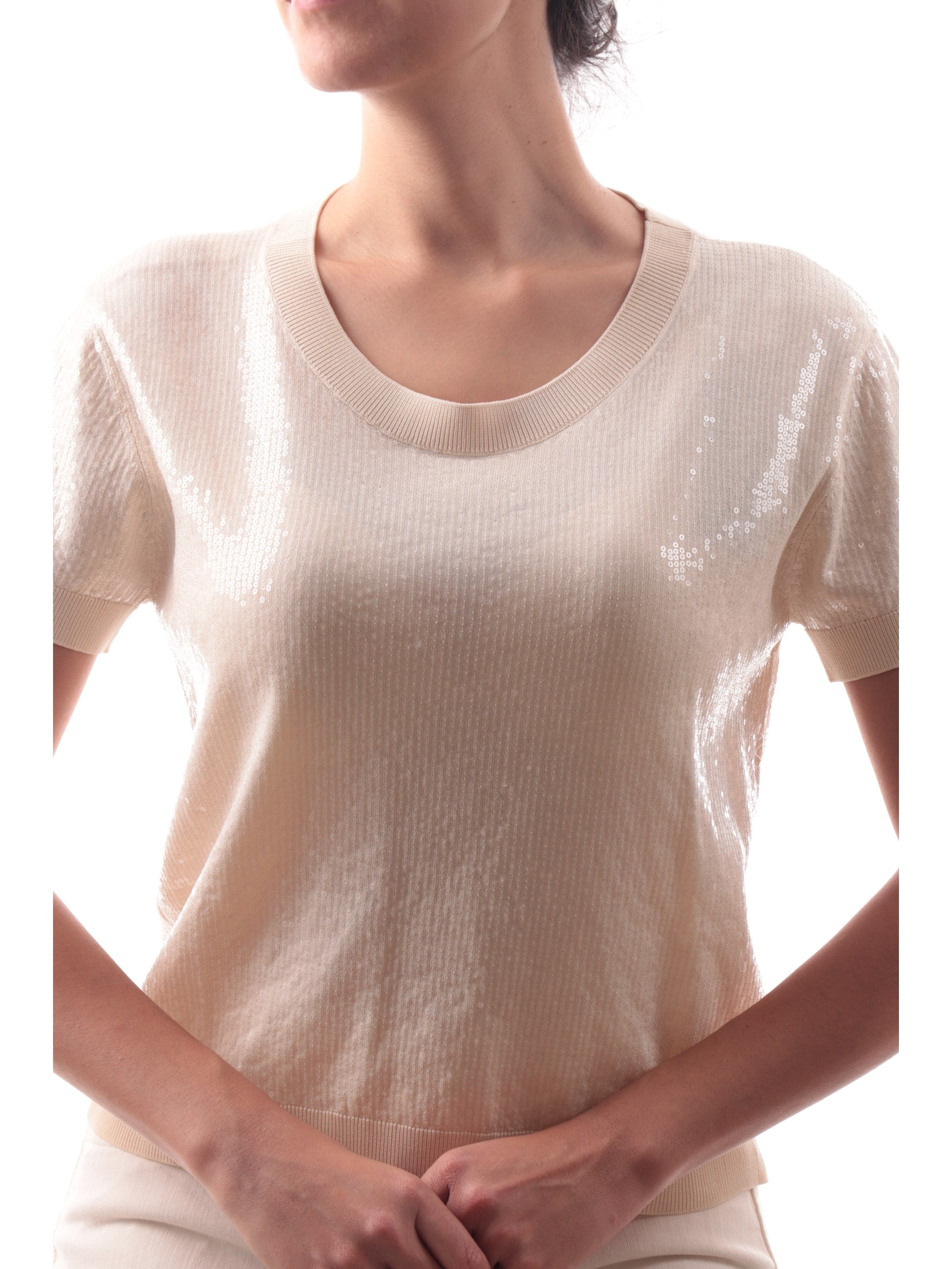Maglia Top Guess beige da donna paillettes all over Juniper Sequins W5YR21Z3E70
