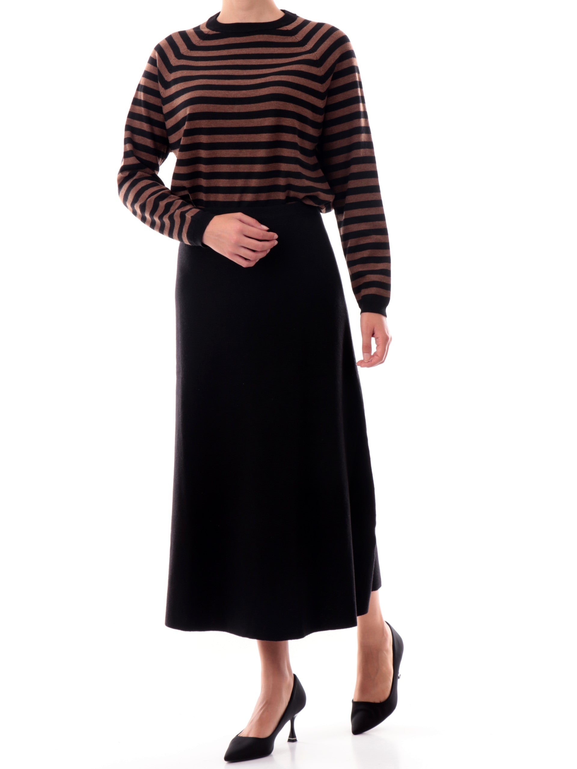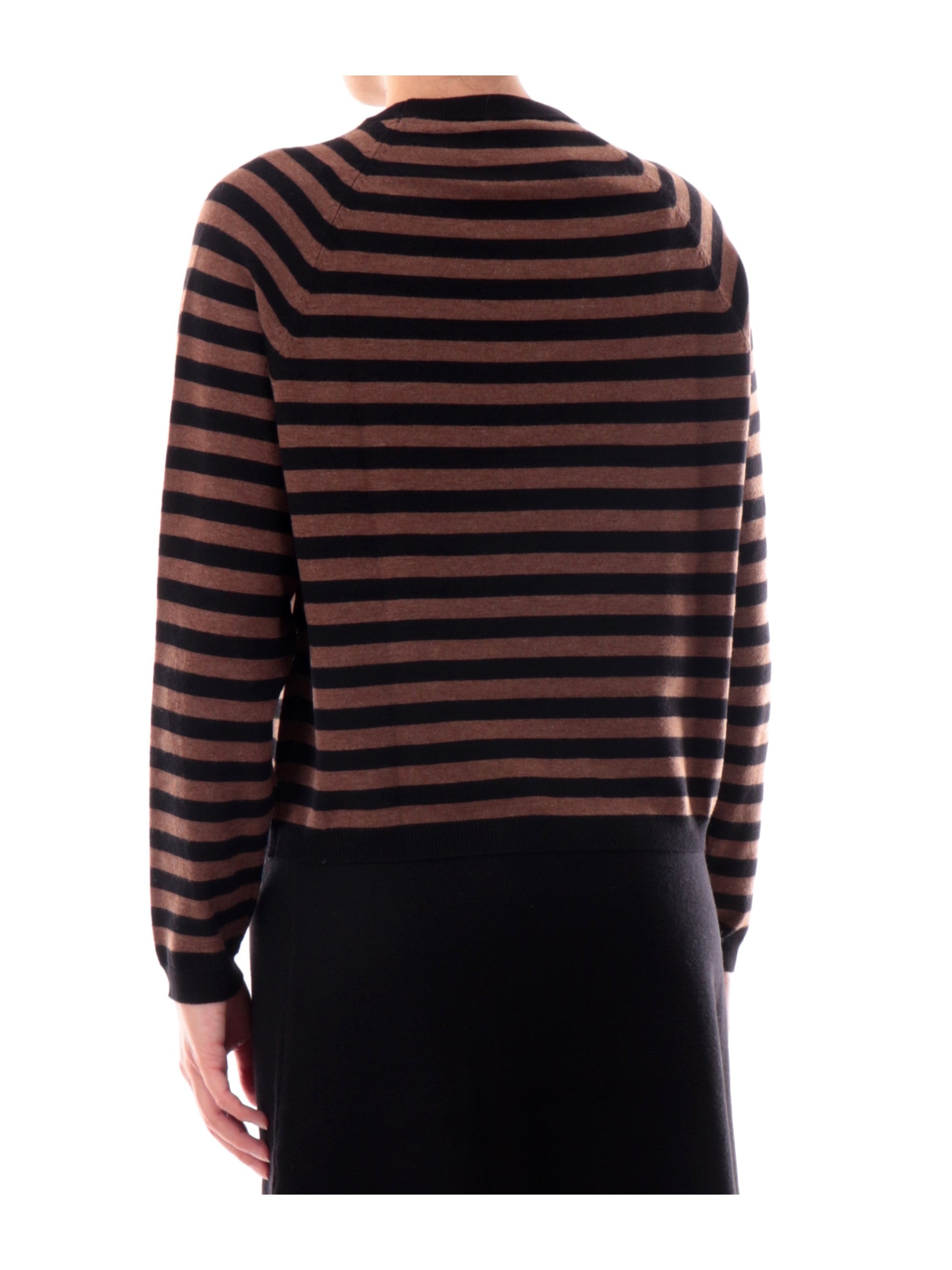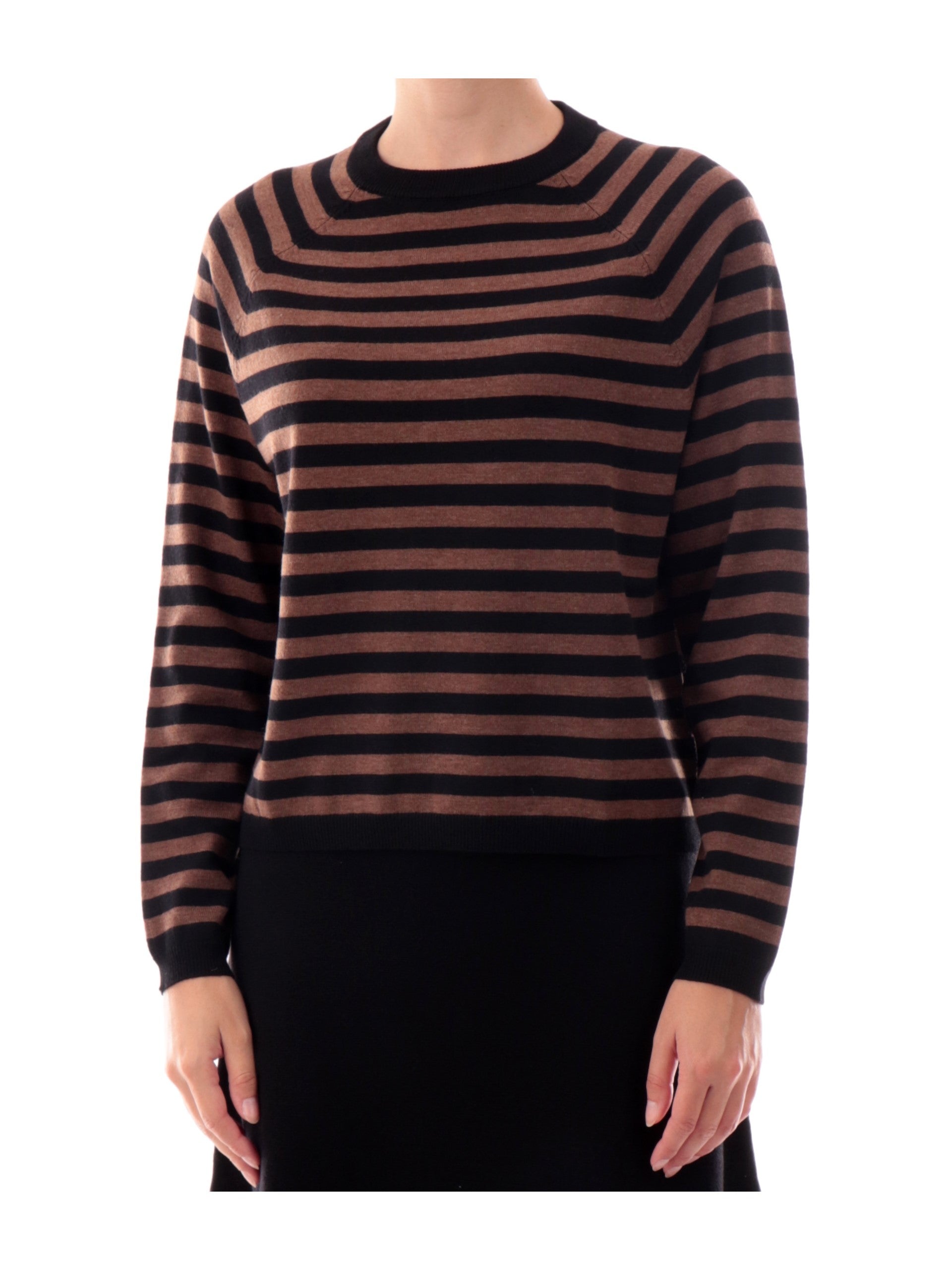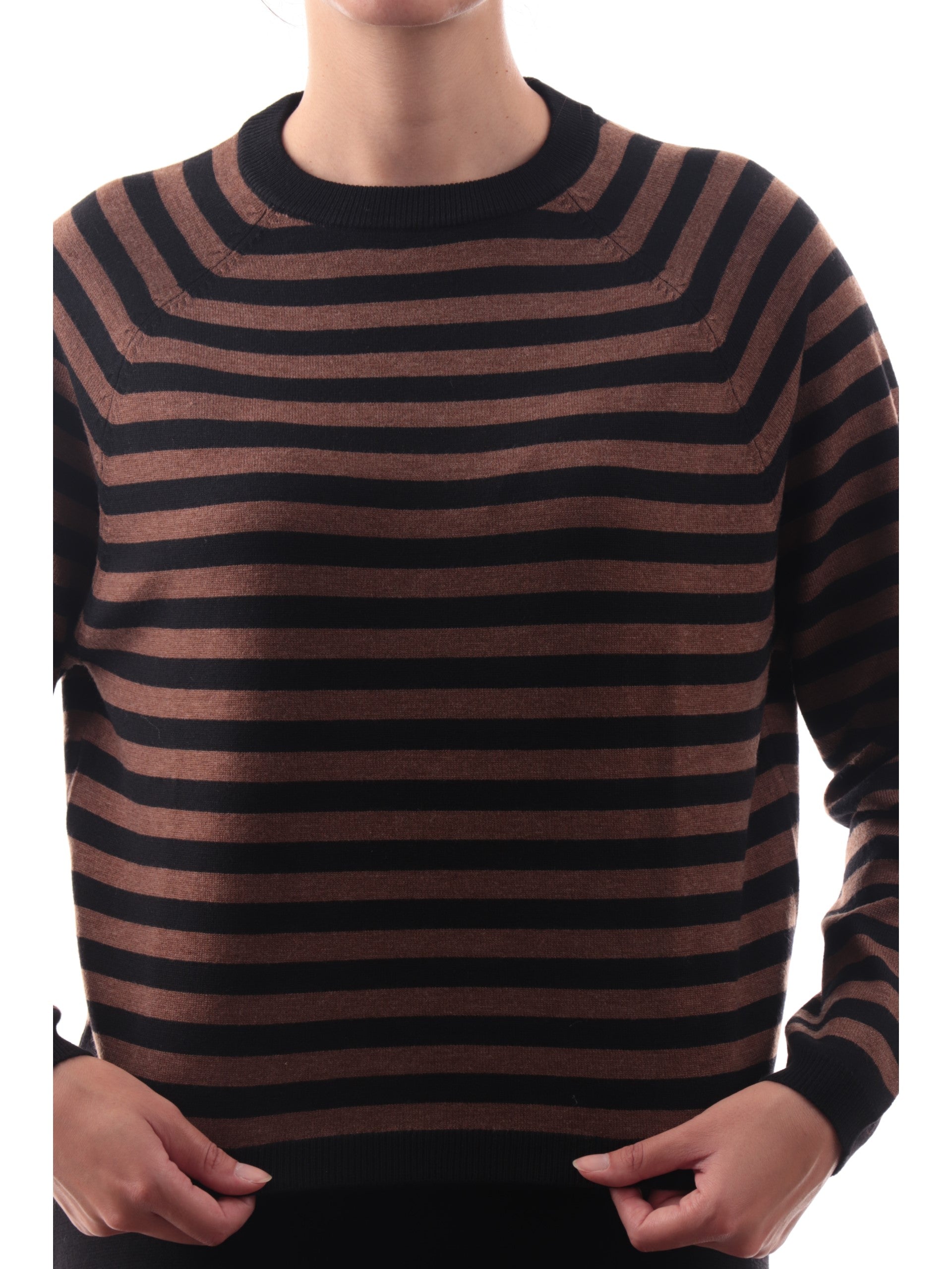 Maglione Anis marrone a righe nere da donna girocollo 255W1266