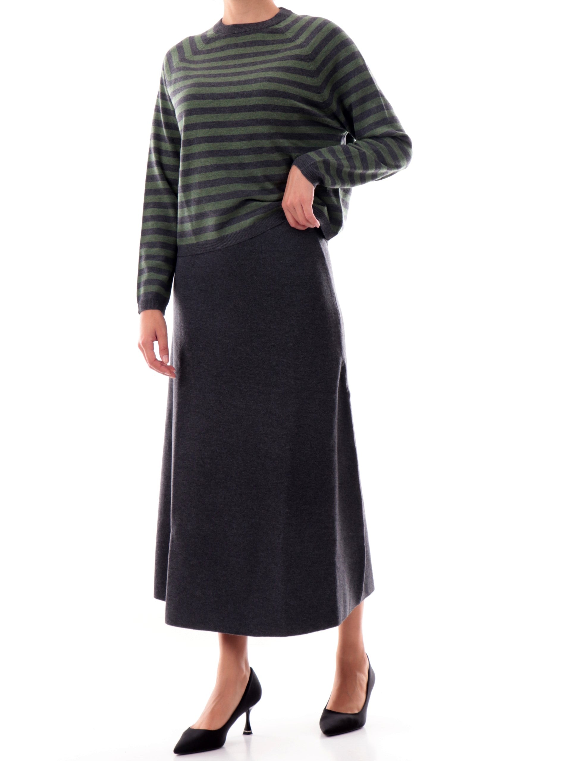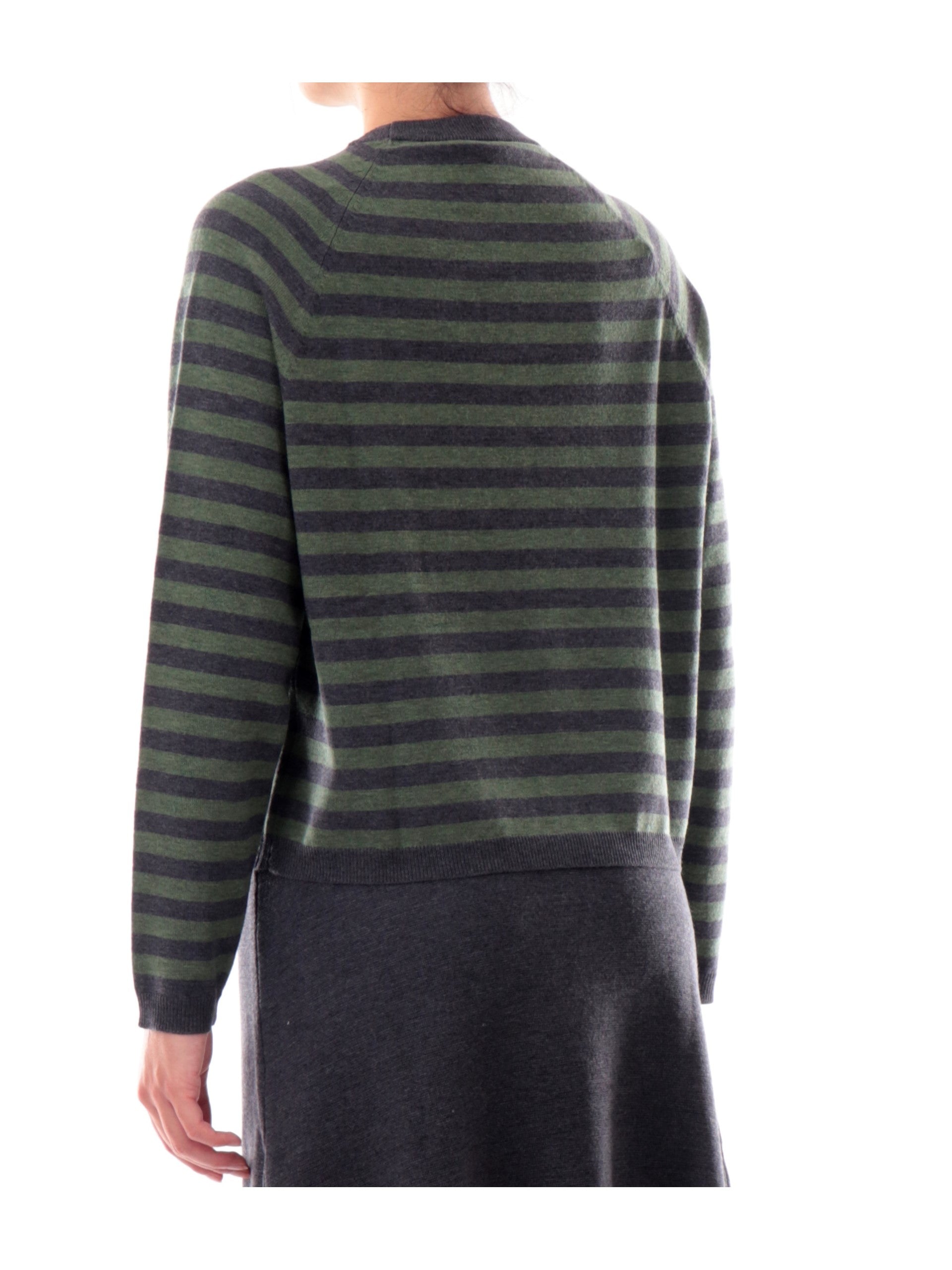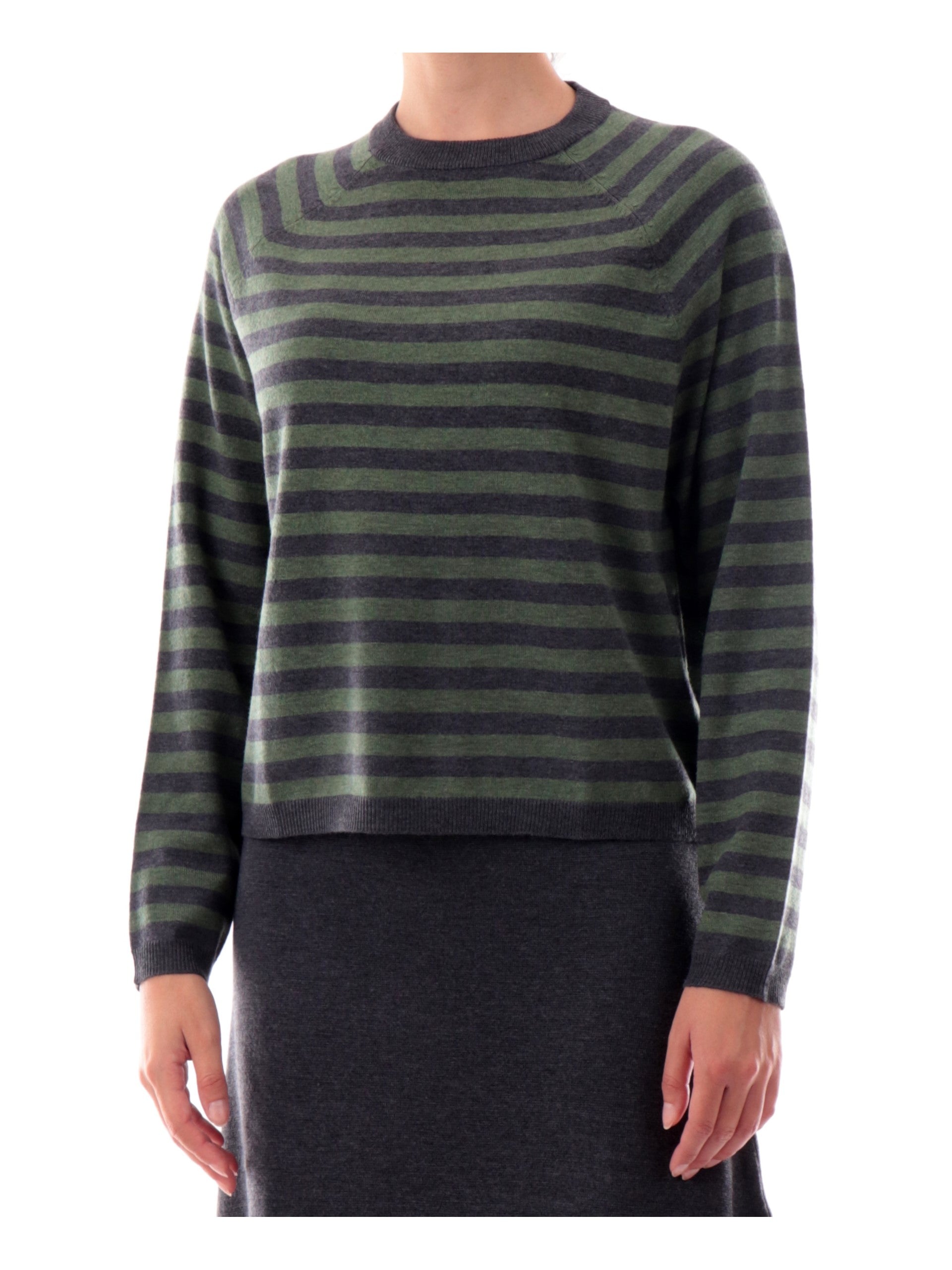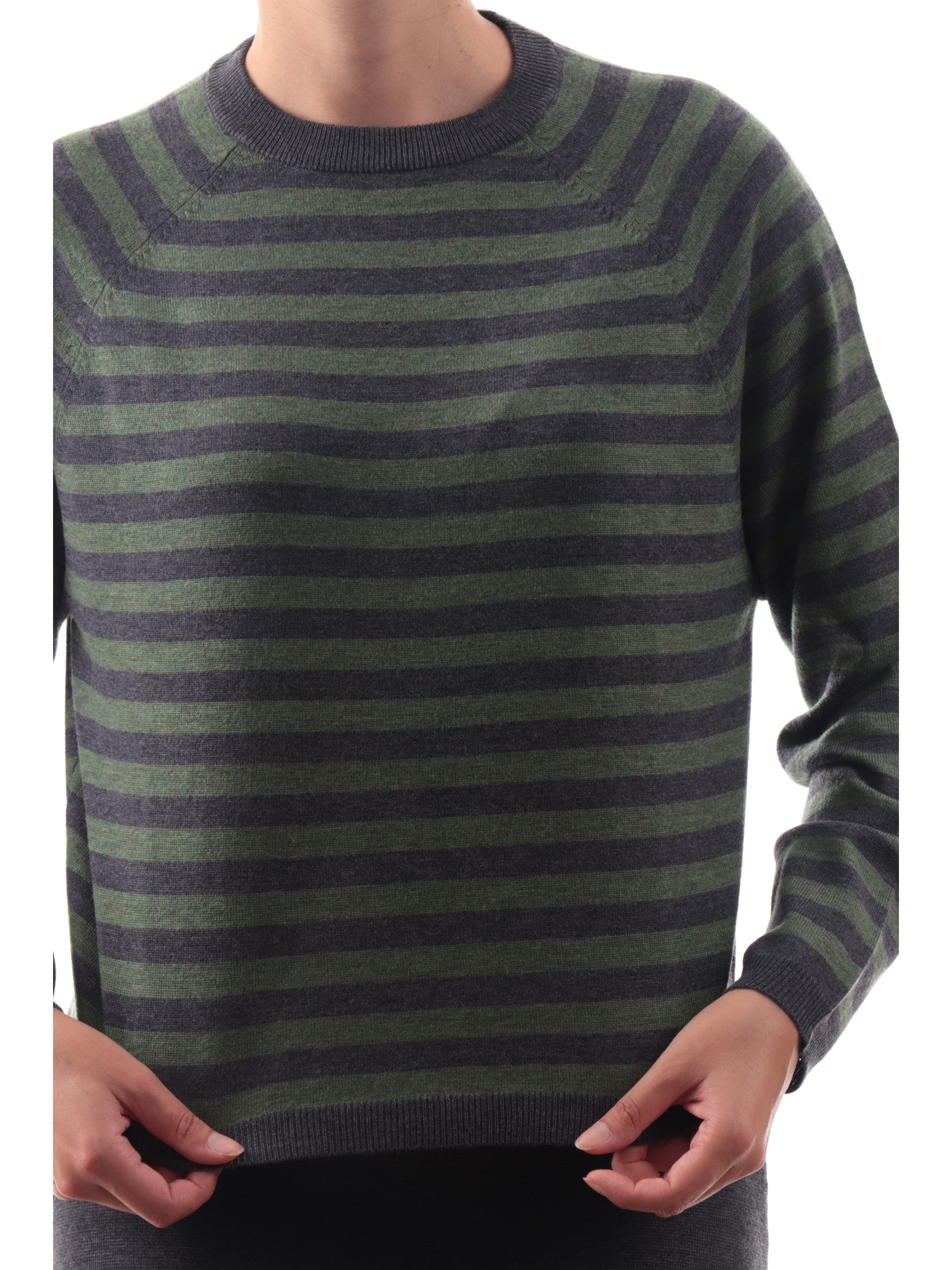 Maglione Anis verde a righe grigie da donna girocollo 255W1266