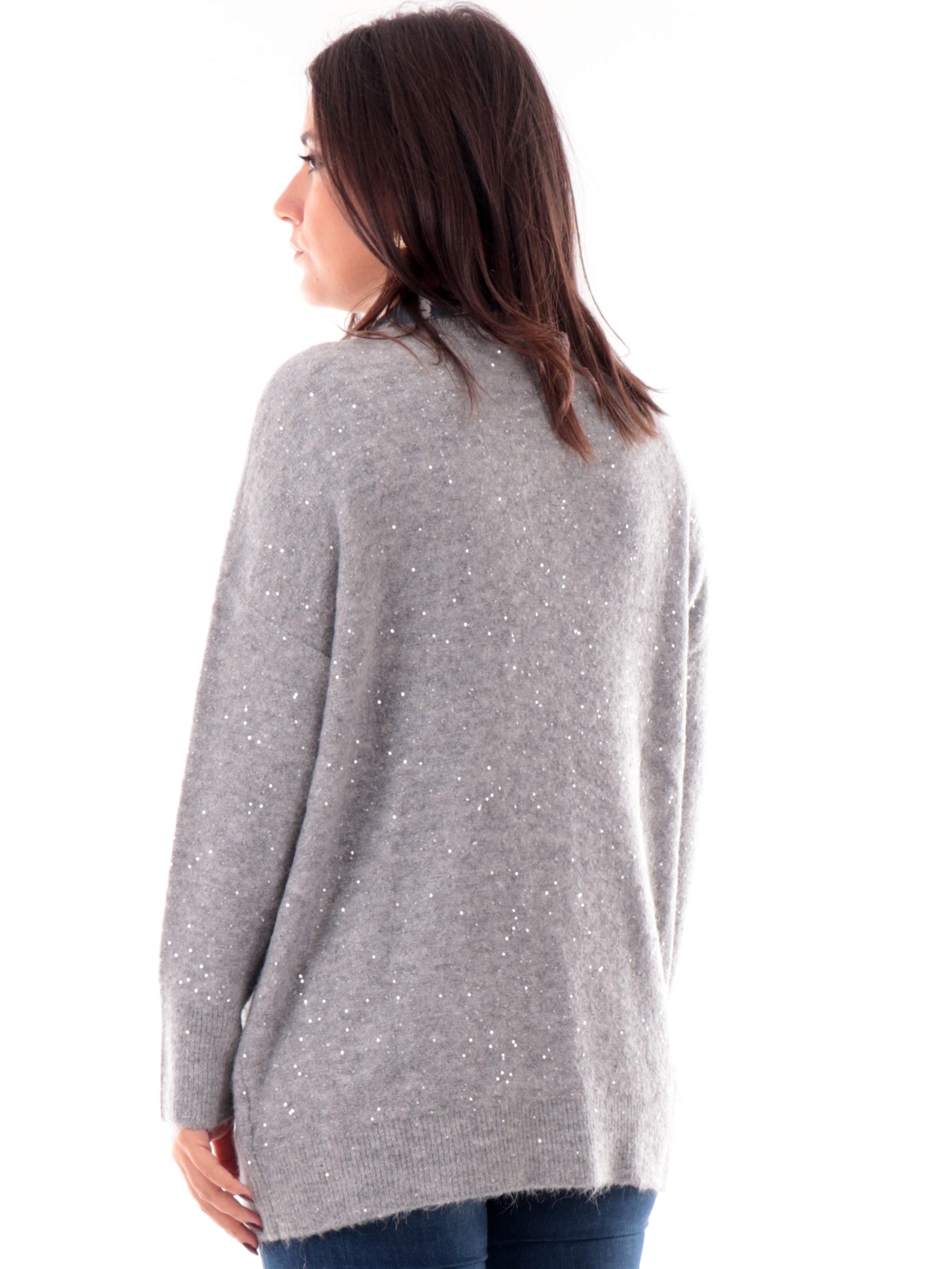 Maglione Cardigan Anis grigio da donna con scollo a V e pailletes. Questo maglione Anis white grigio da donna con dettagli luminosi è realizzato in morbido filato misto lana caldo ed avvolgente. Questo maglione con bottoni Anis grigio da donna è una maglia Anis versatile e comoda, perfetta per ogni situazione. La sua vestibilità morbida lo rende adatto ad ogni donna.