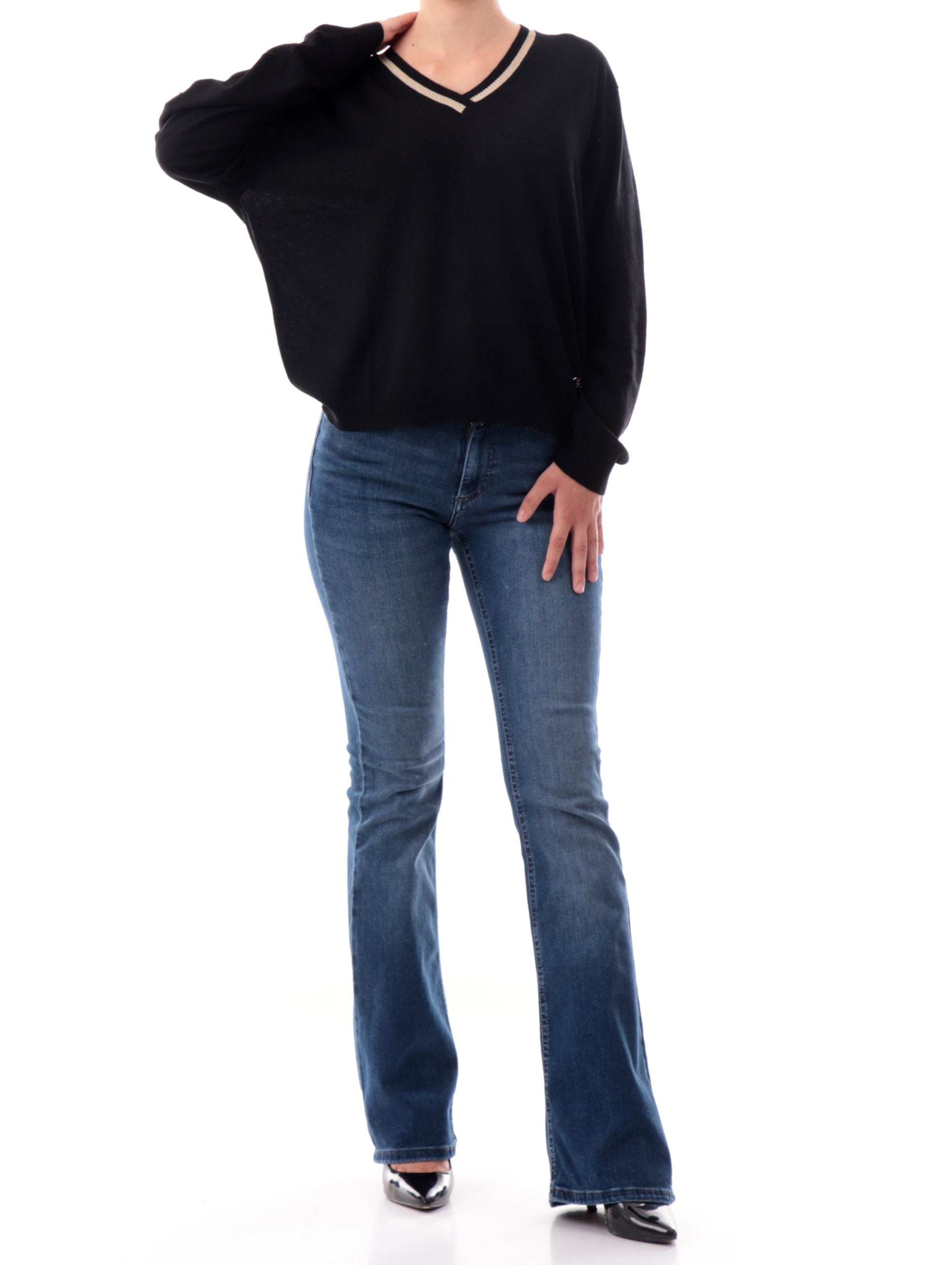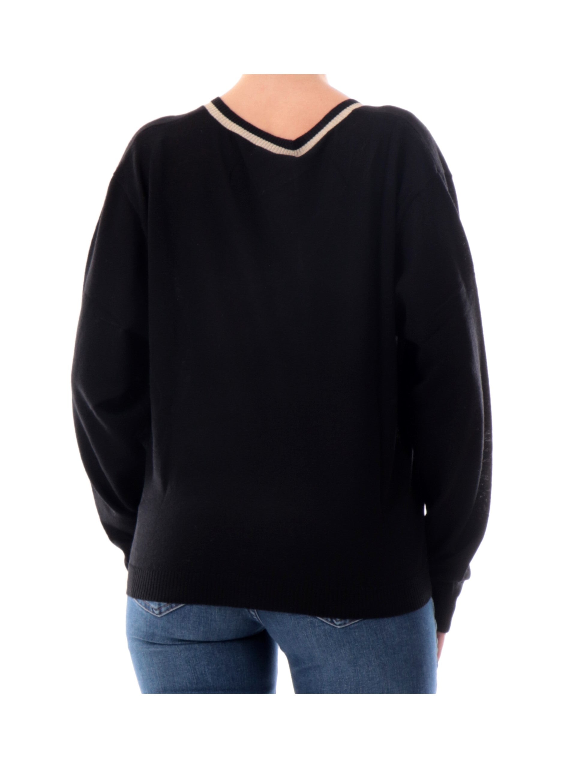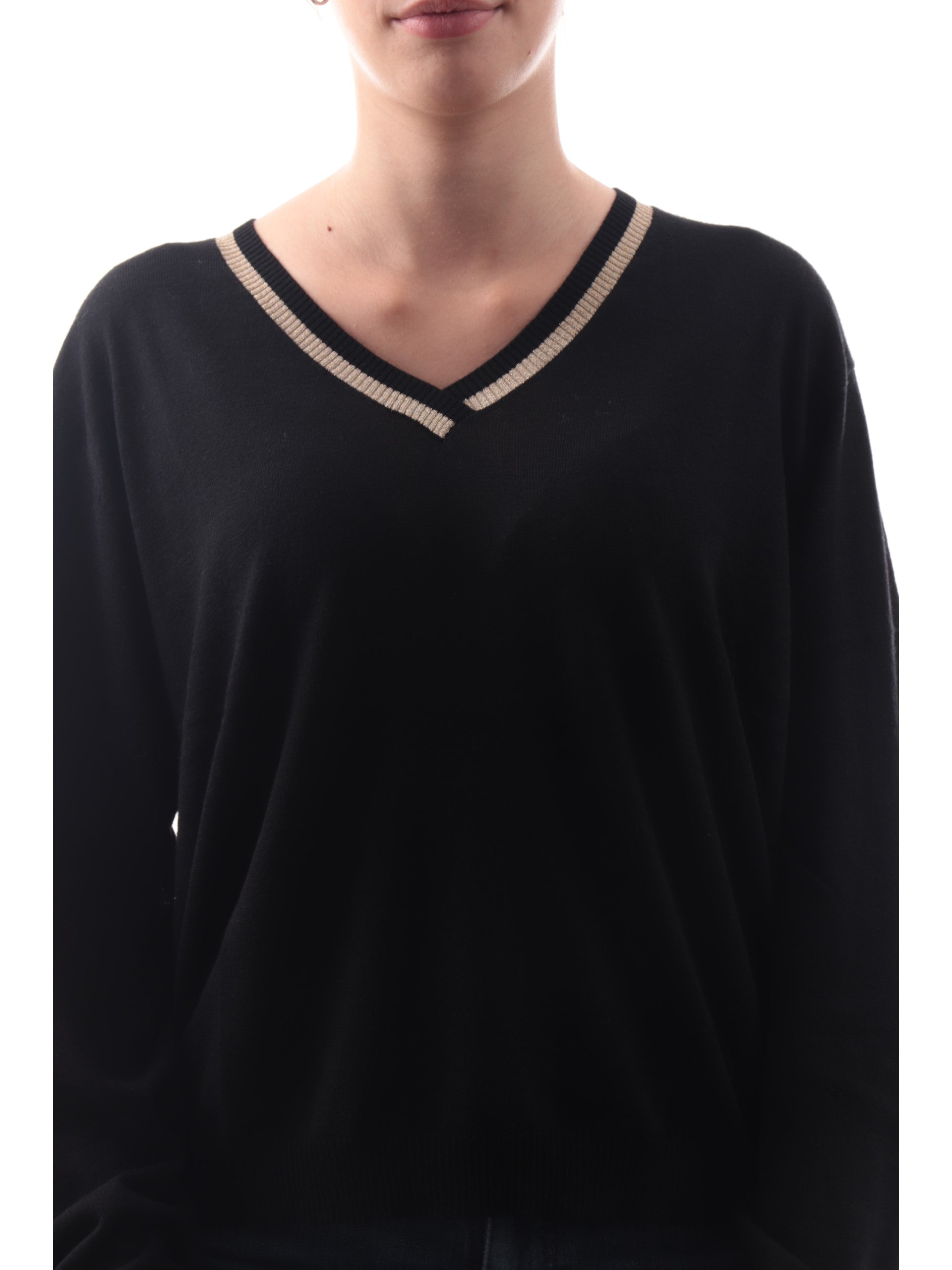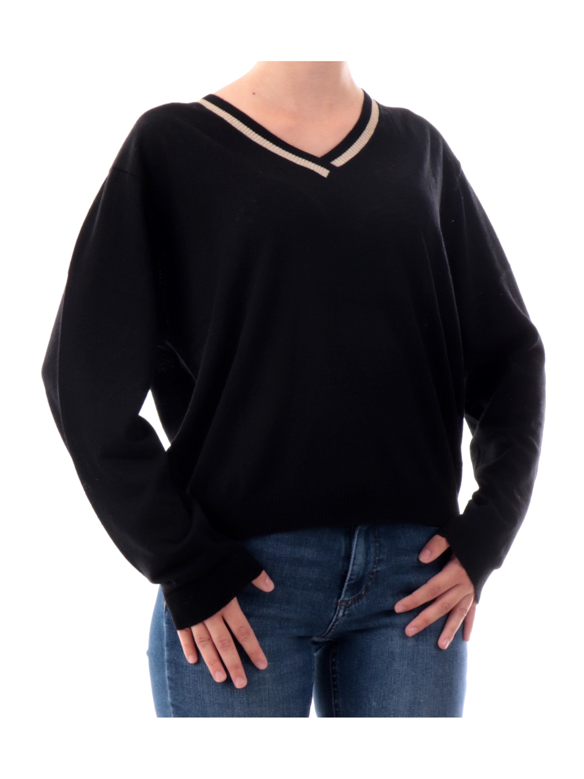 Maglione Nero Yes Zee Donna scollo a V bordi oro M017IP000801