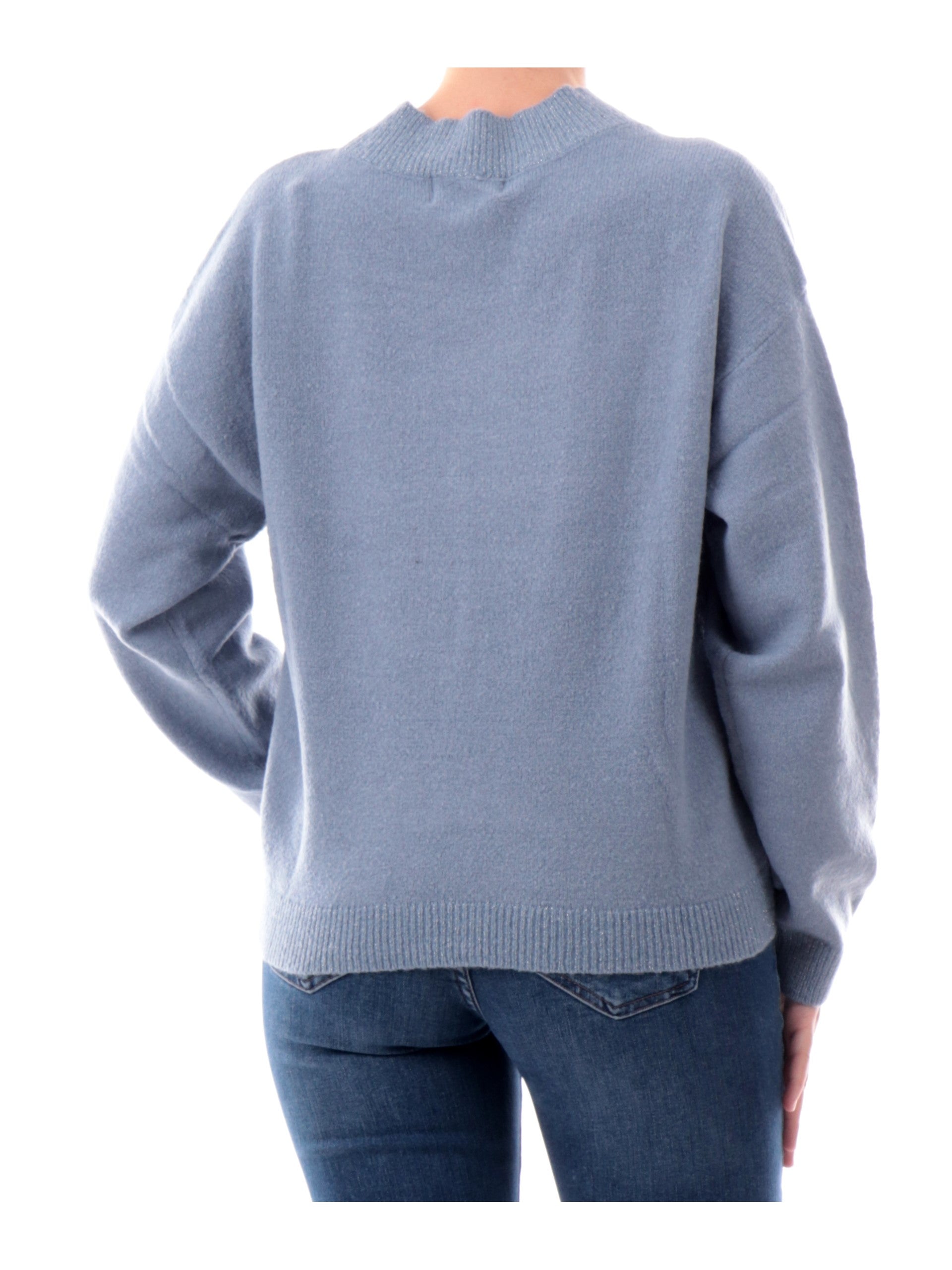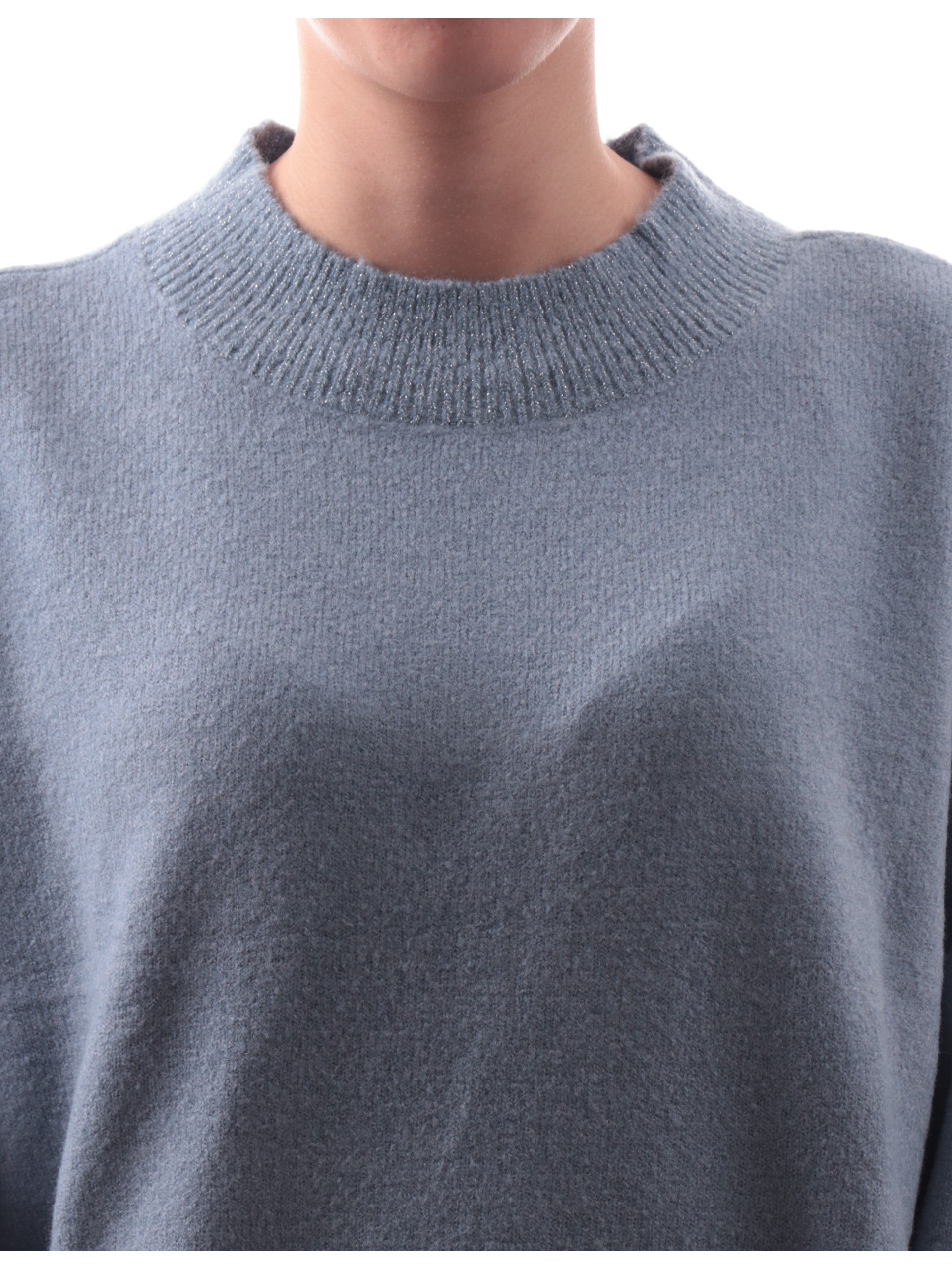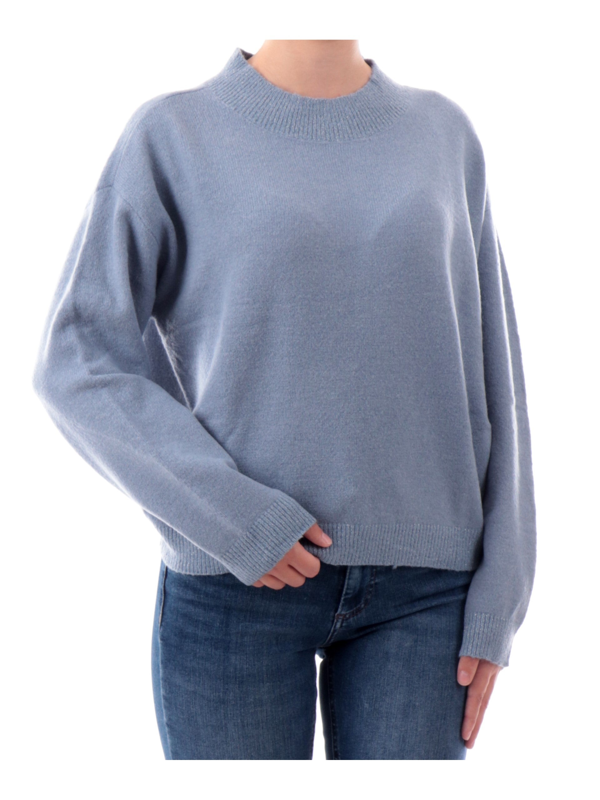 Maglione Yes Zee Celeste da donna lupetto cropped bordi lurex M003BT000633