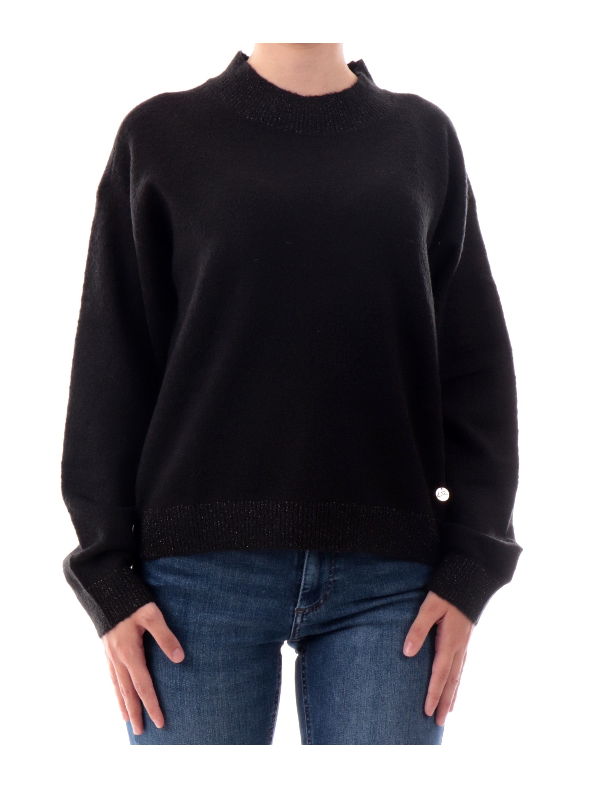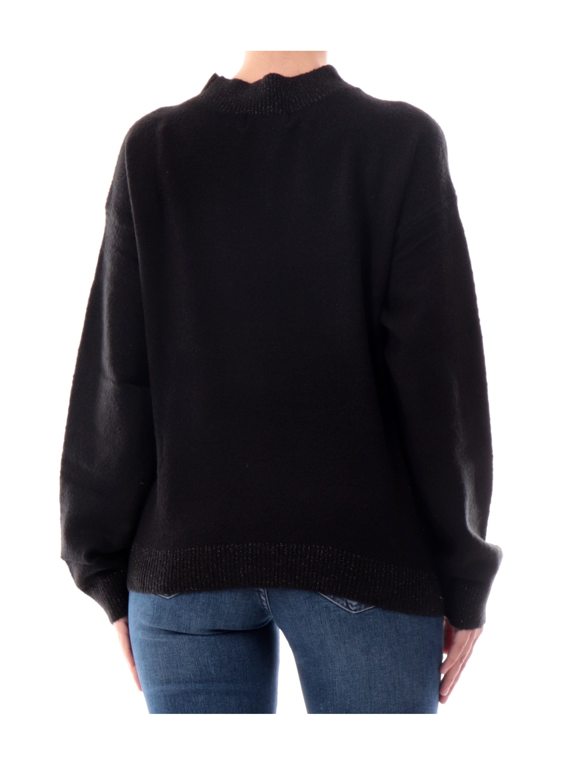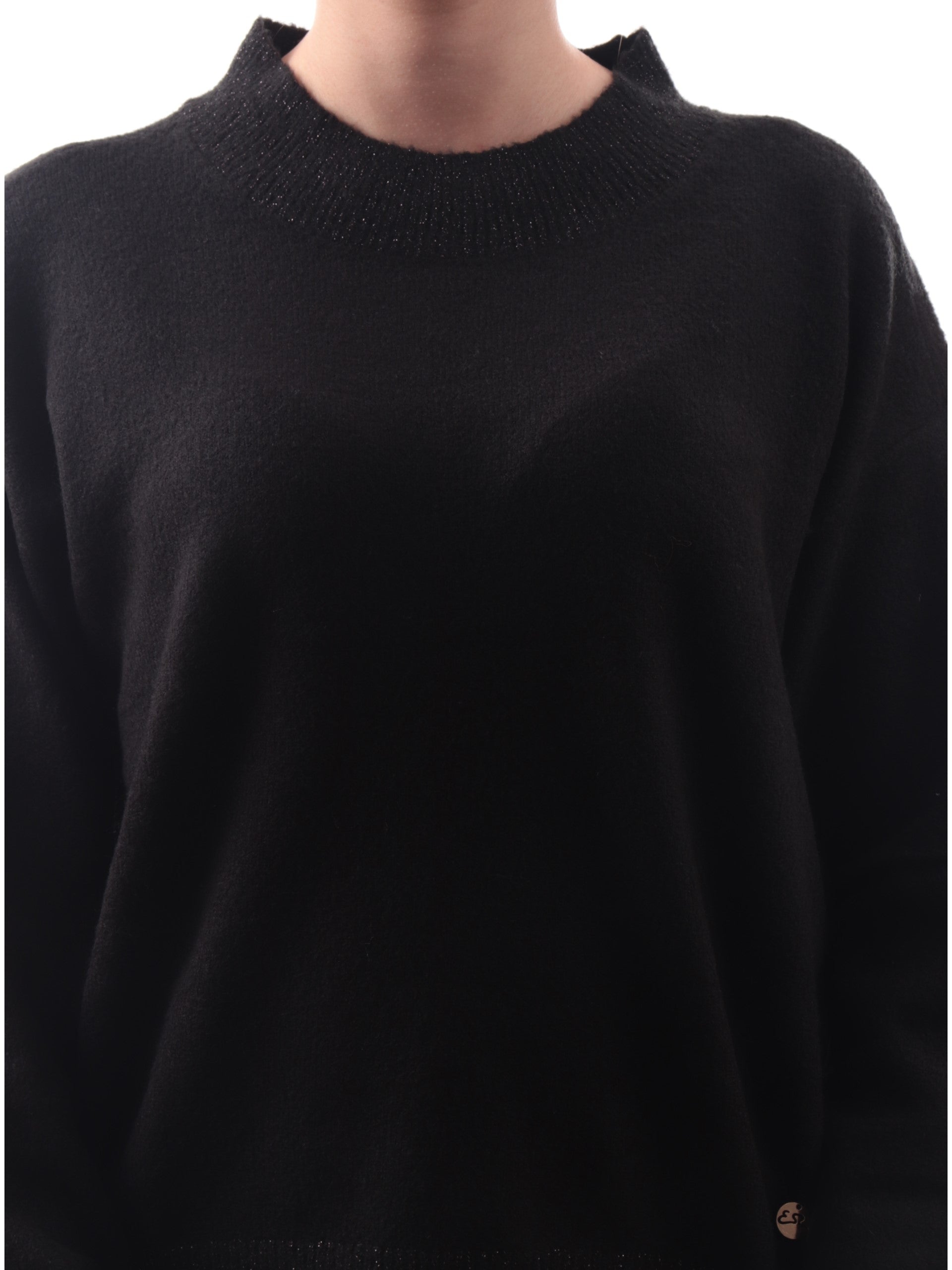 Maglione Yes Zee donna nero lupetto . Questo maglione nero da donna yes zee è caratterizzato da colletto con lurex oro che profilano lo scollo alto e placchetta logo oro Yes Zee sul fondo.