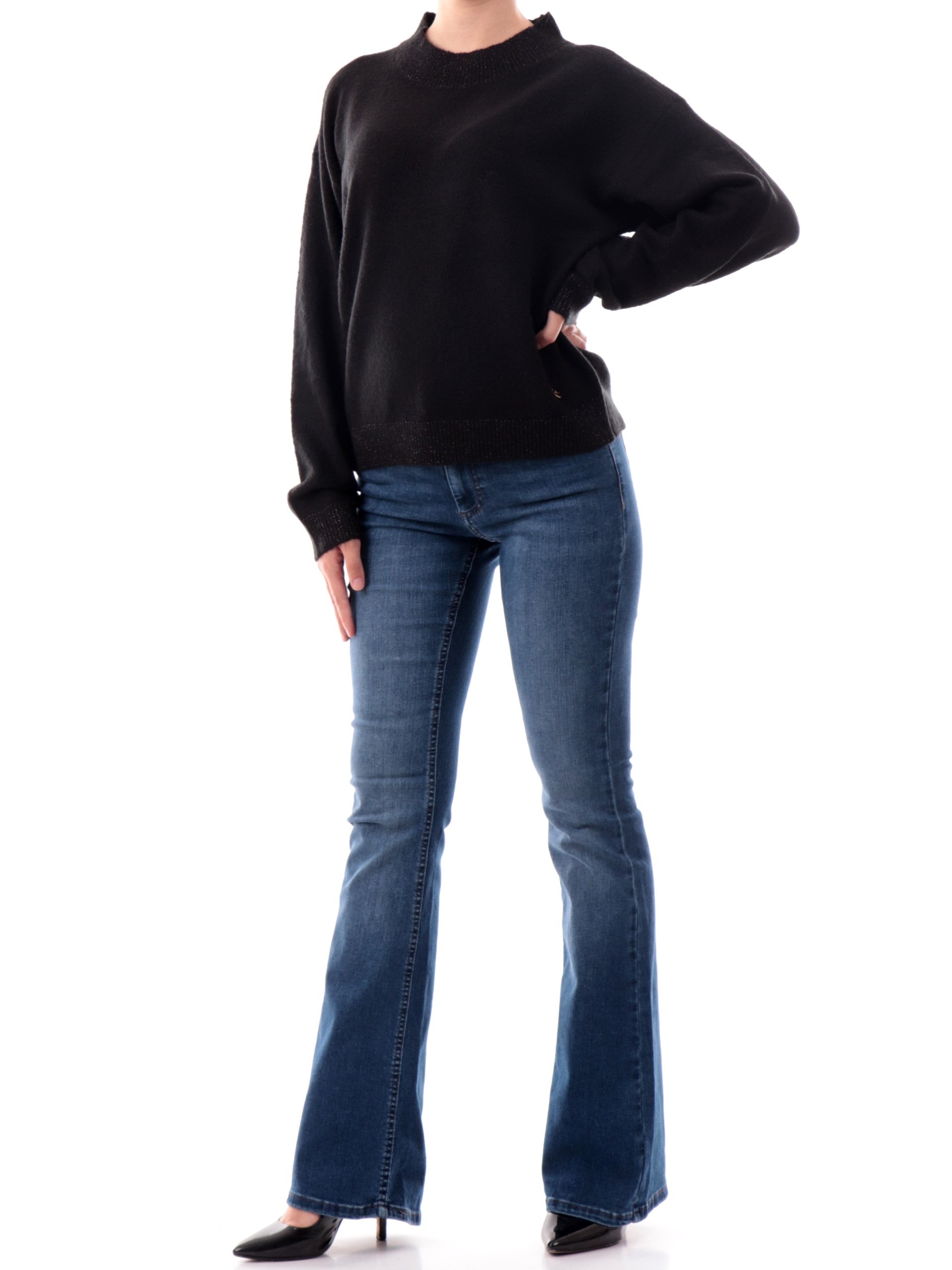Maglione Yes Zee Nero da donna lupetto cropped bordi lurex M003BT000801