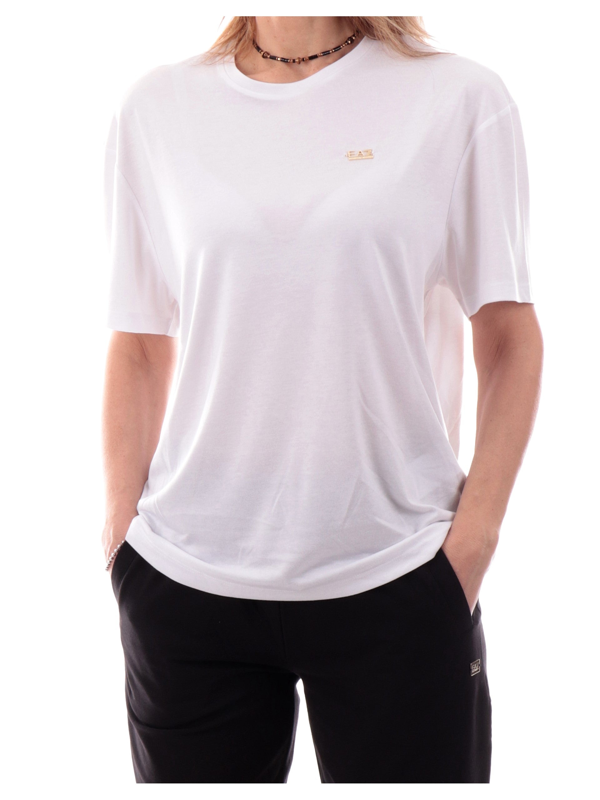 Maglia Emporio Armani EA7 bianca da donna logo EA7 oro 7W000189AF13919 U0002