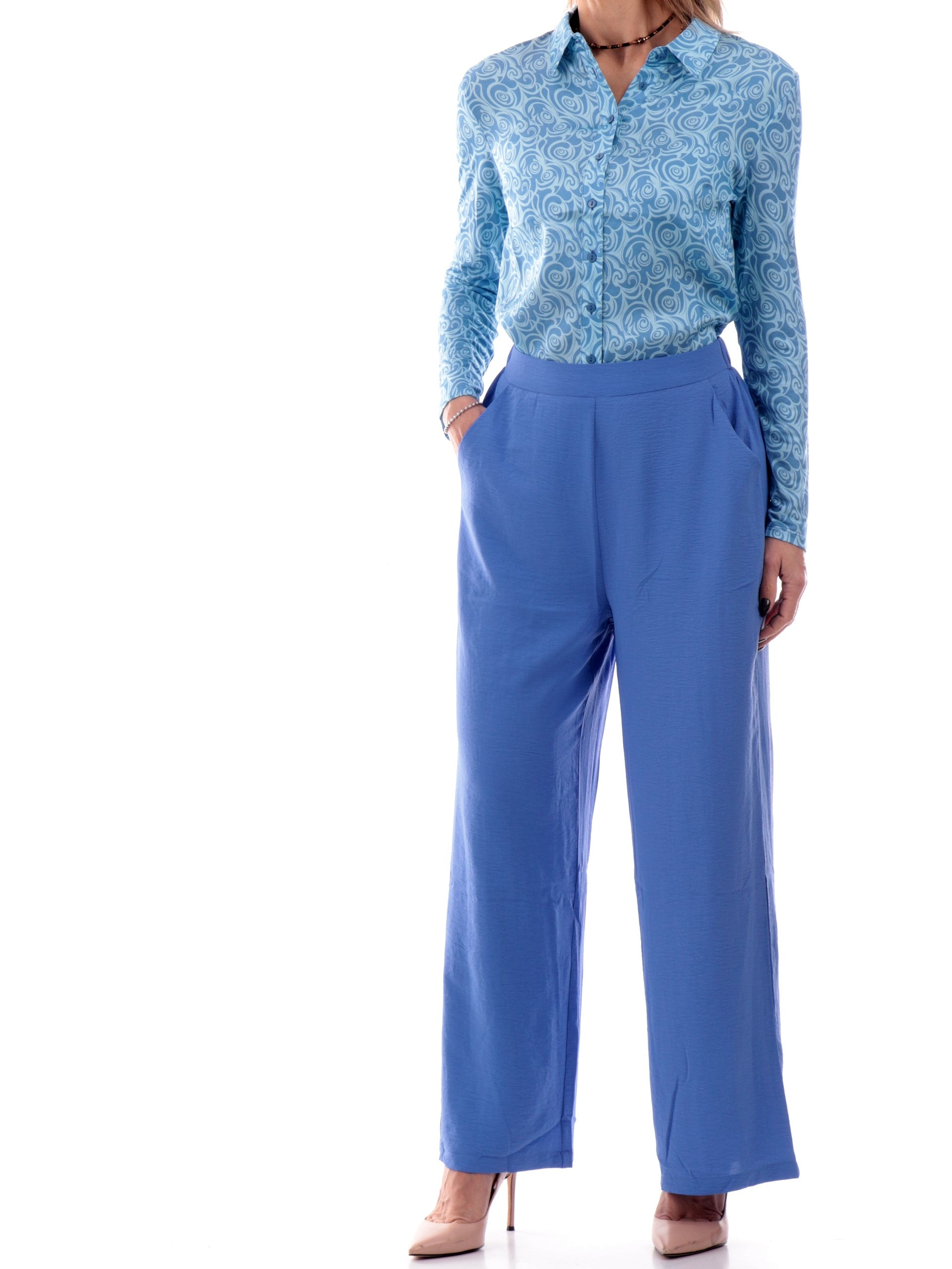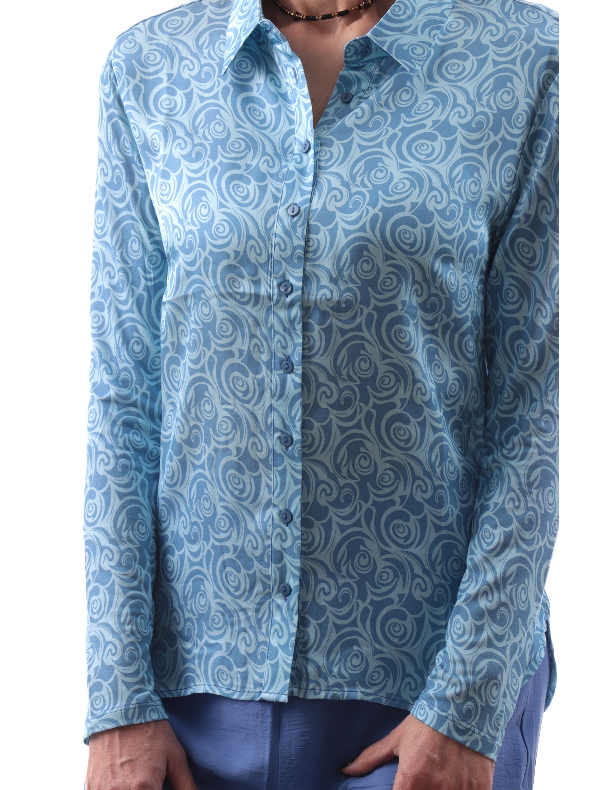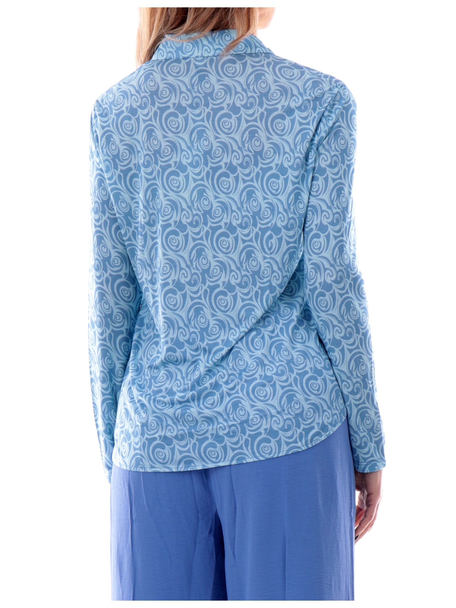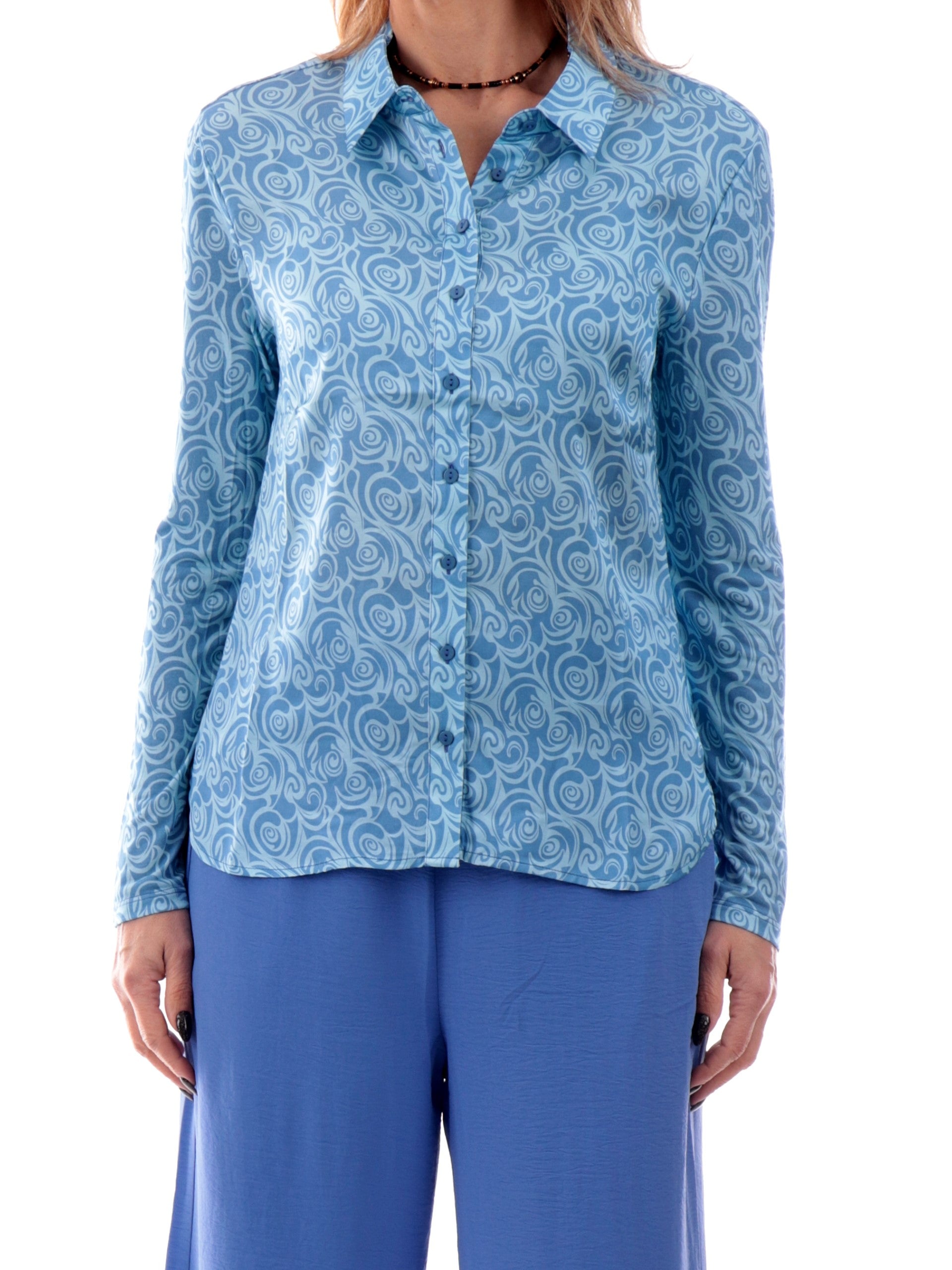 Camicia Anis azzurra floreale da donna maniche lunghe 251W1490-291