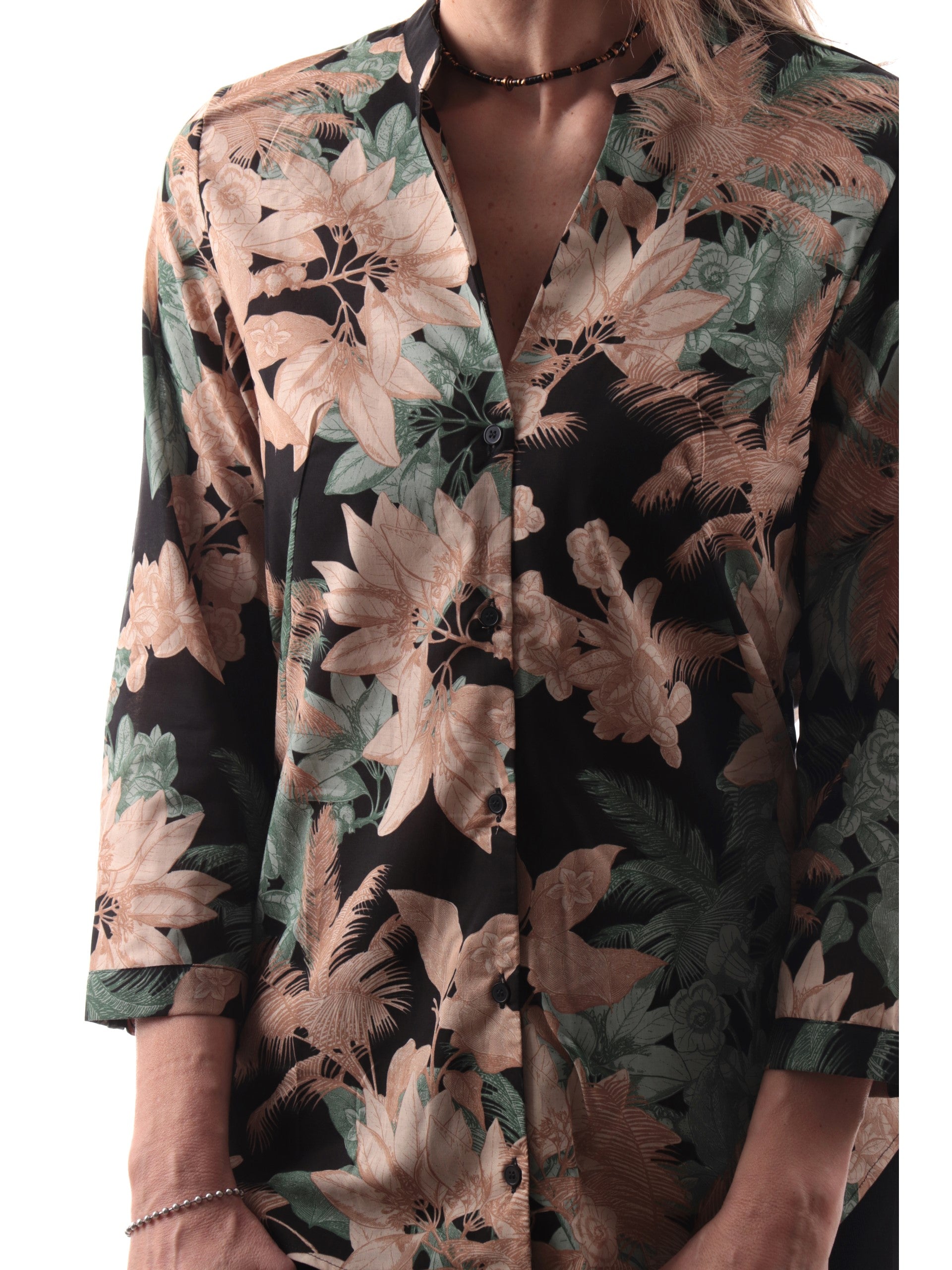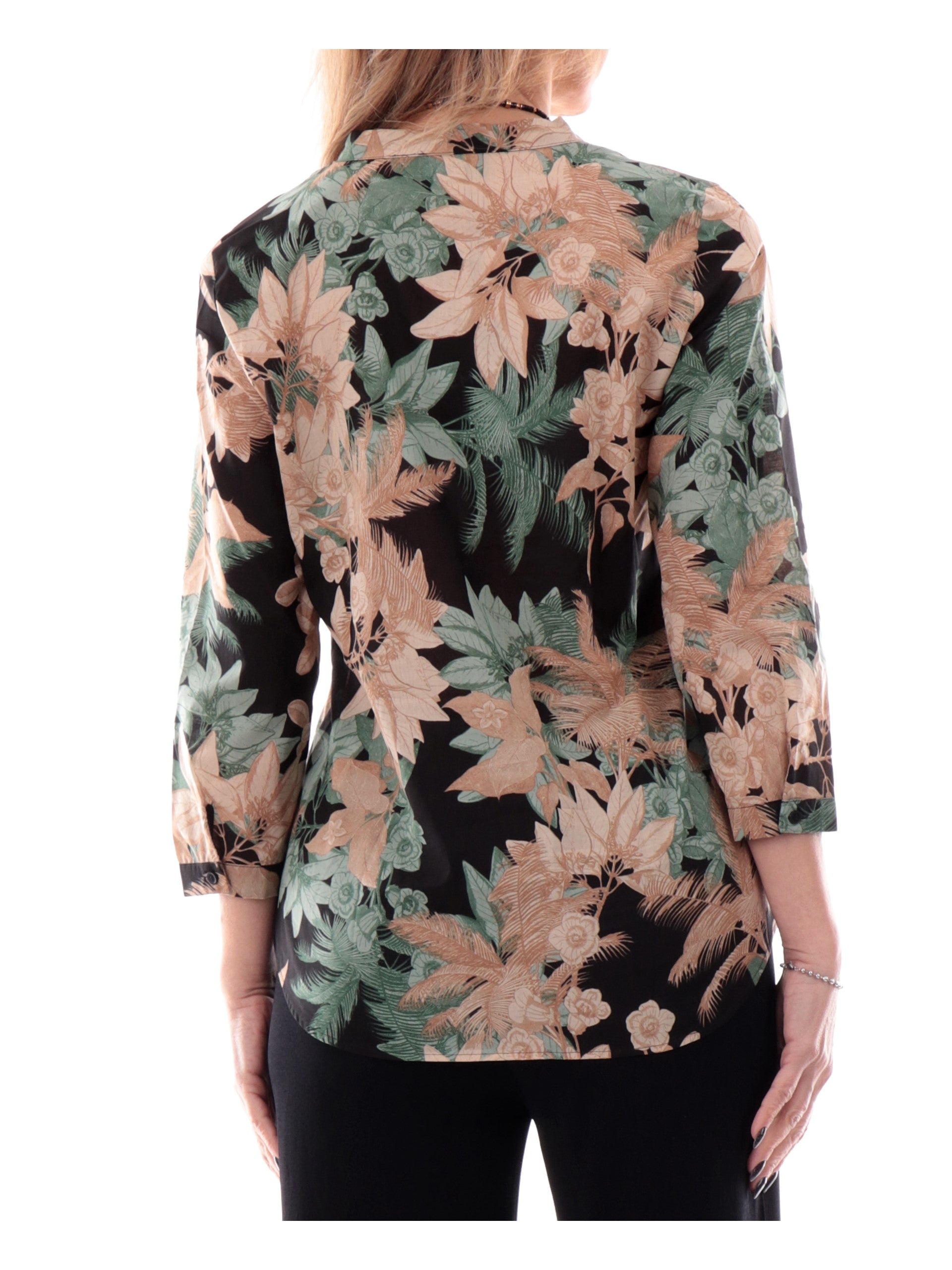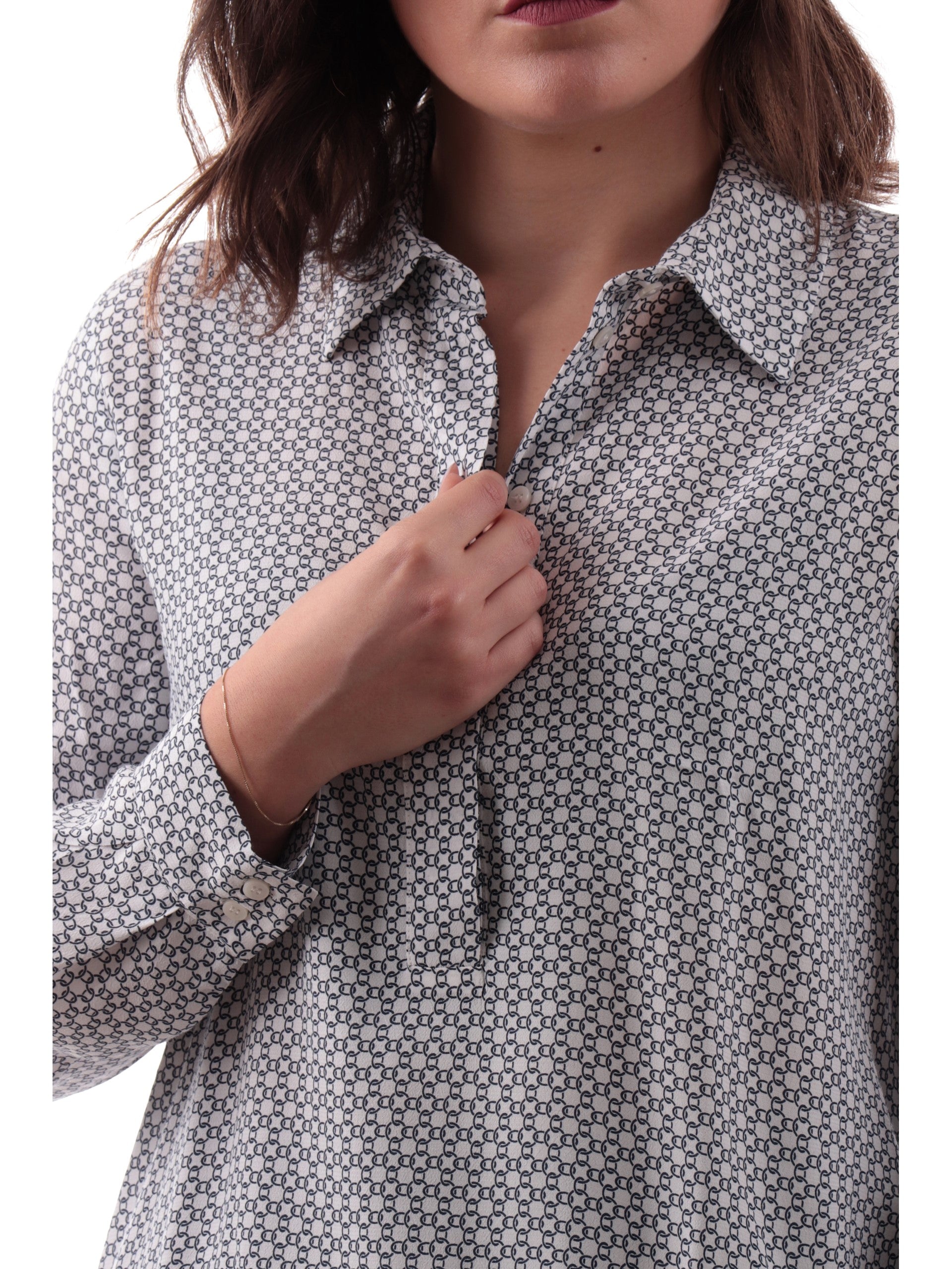Camicia lino Emme Marella blu fantasia foulard da donna BOBOLI. Questa camicia Marella donna ha il colletto alla francese, la chiusura con bottoni, le maniche tre quarti, la fantasia foulard e la composizione in misto lino.