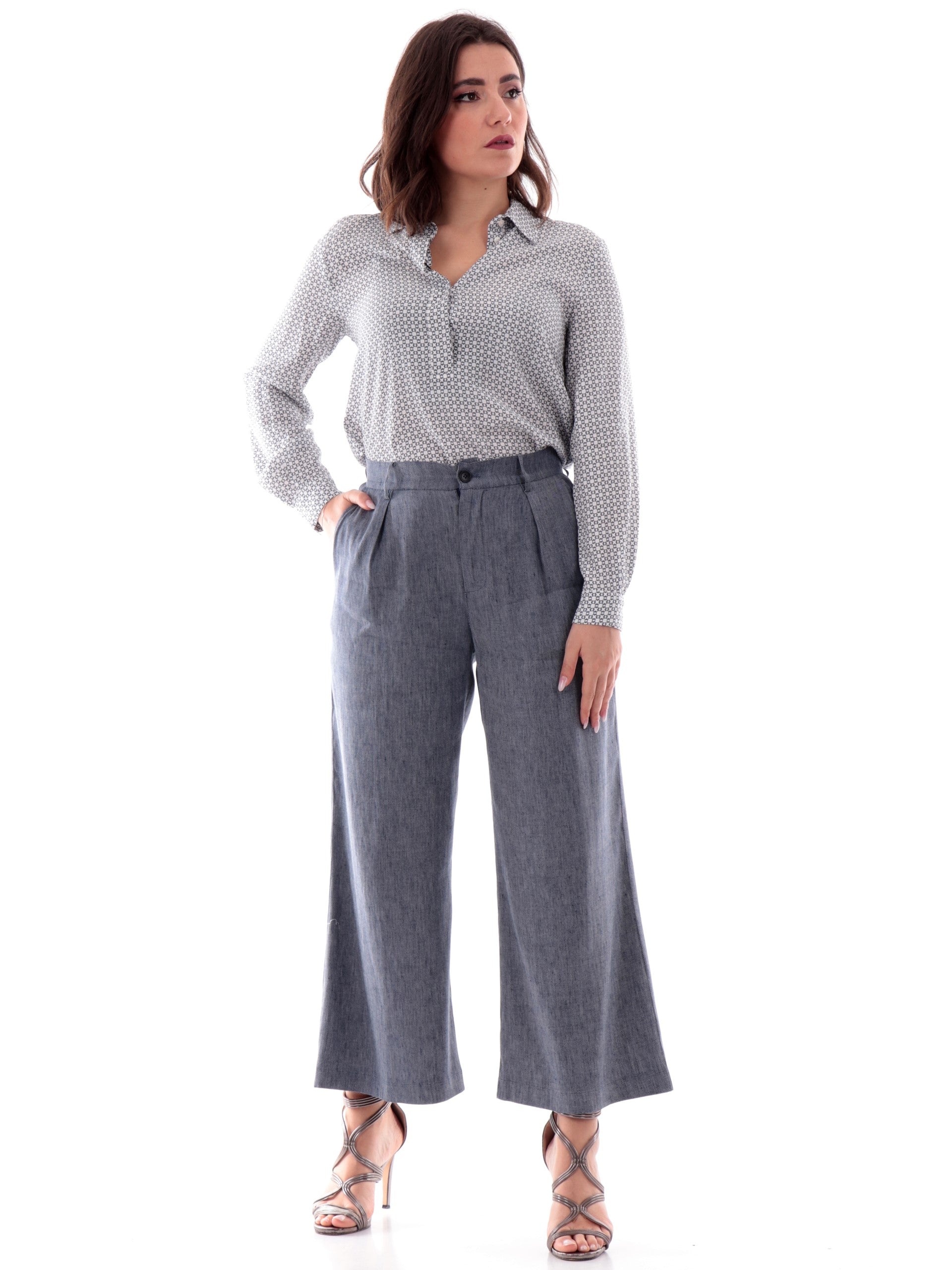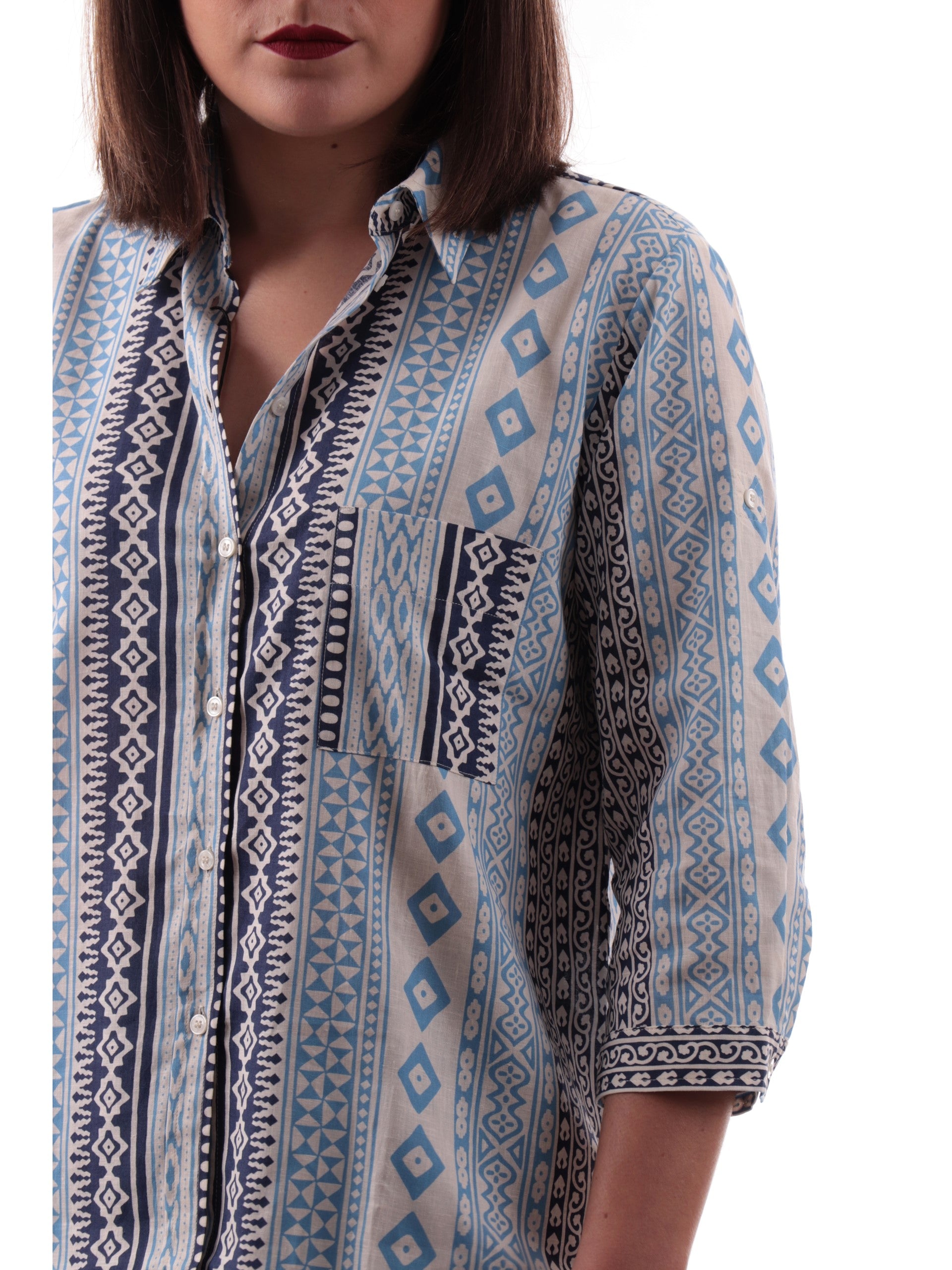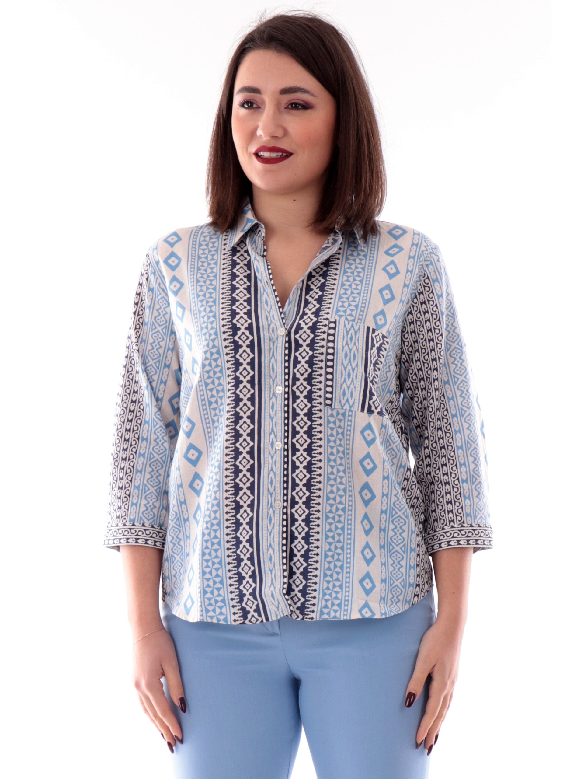 Camicia lino Emme Marella blu fantasia foulard da donna BOBOLI