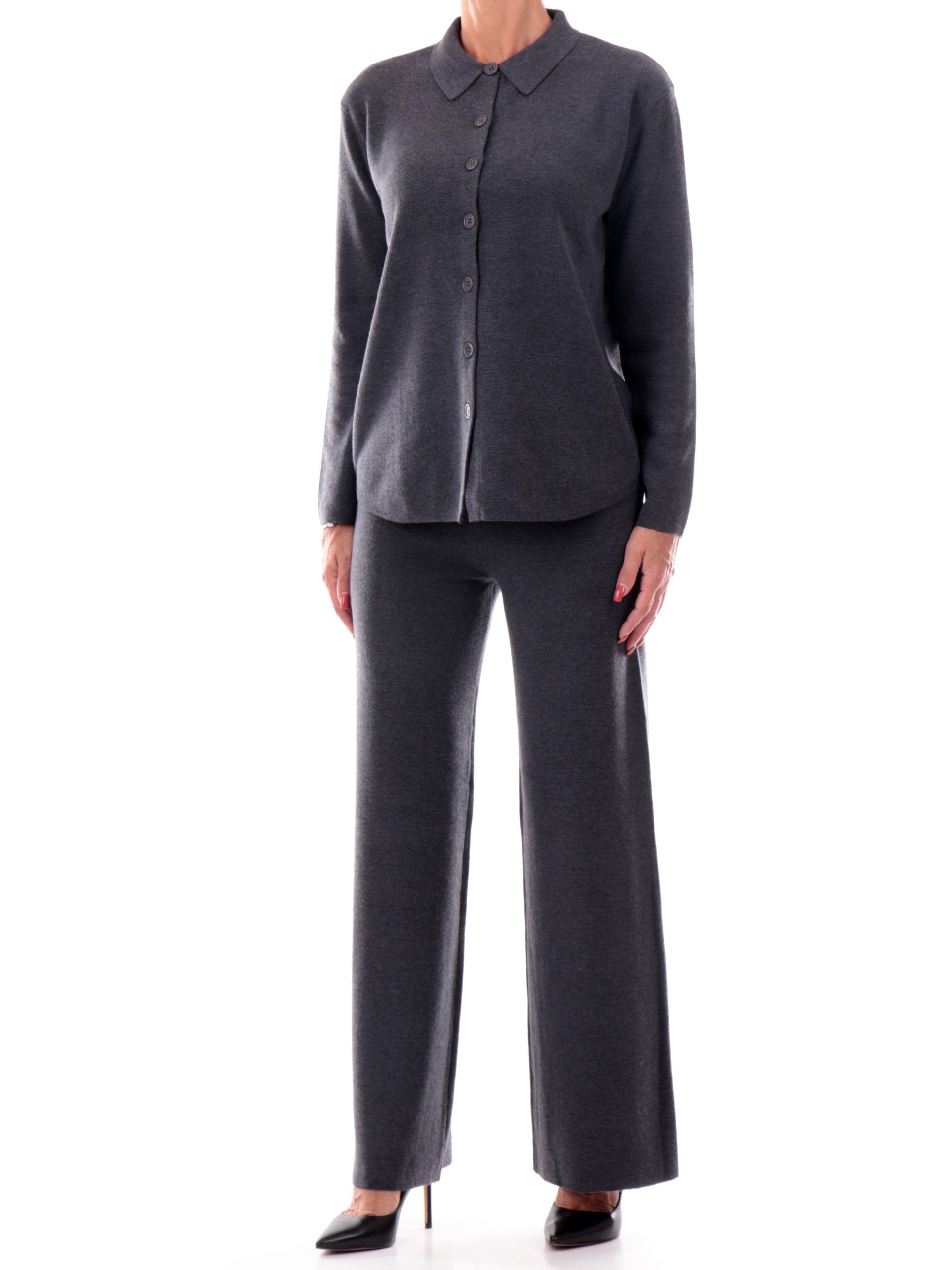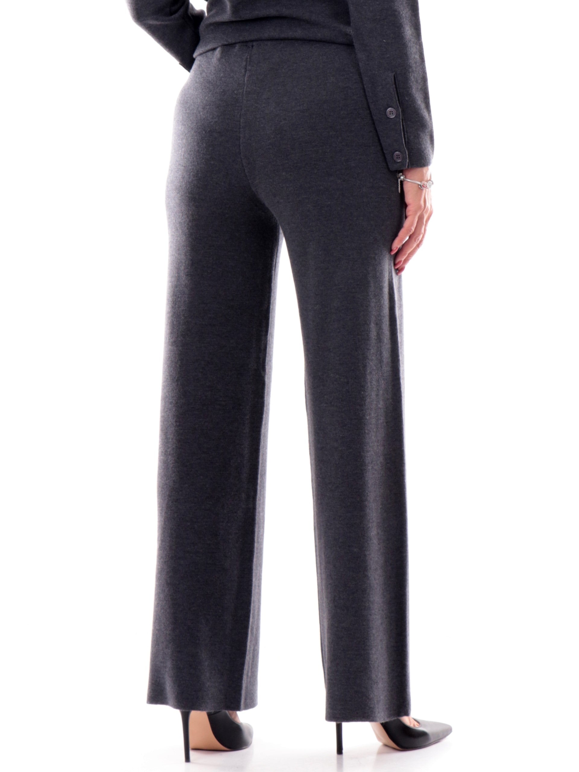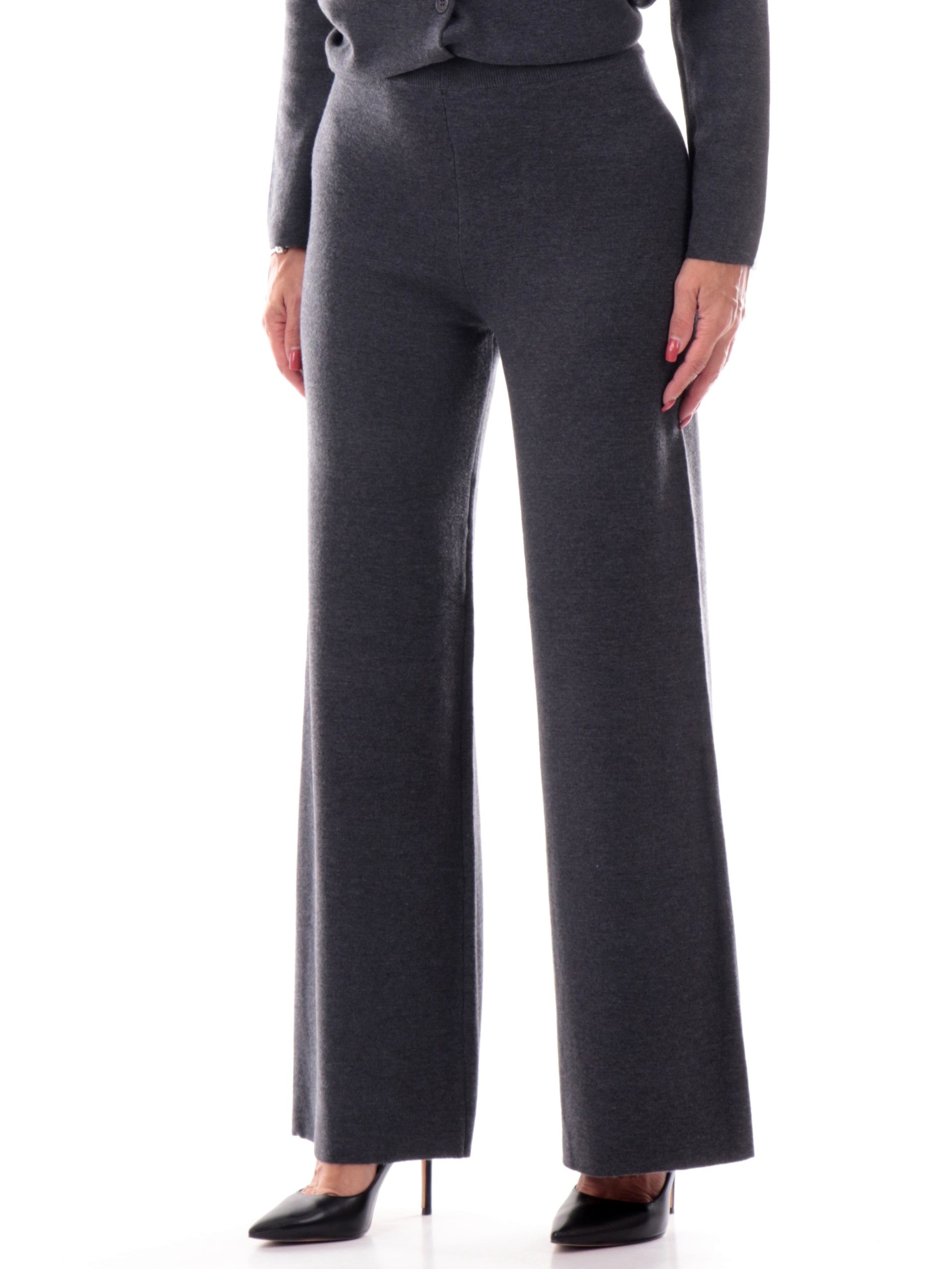Pantaloni Anis grigi da donna palazzo in maglina 255W1306028