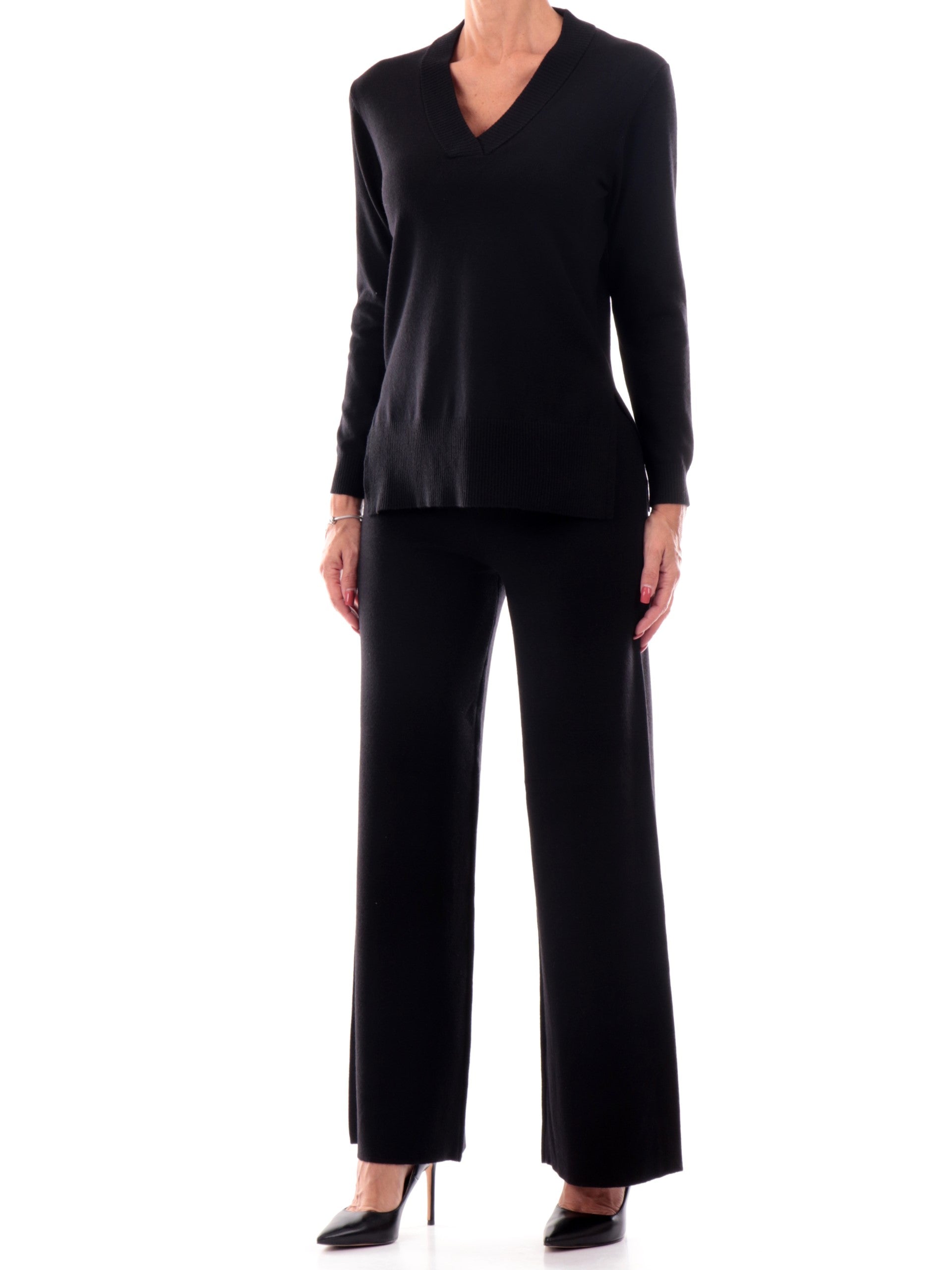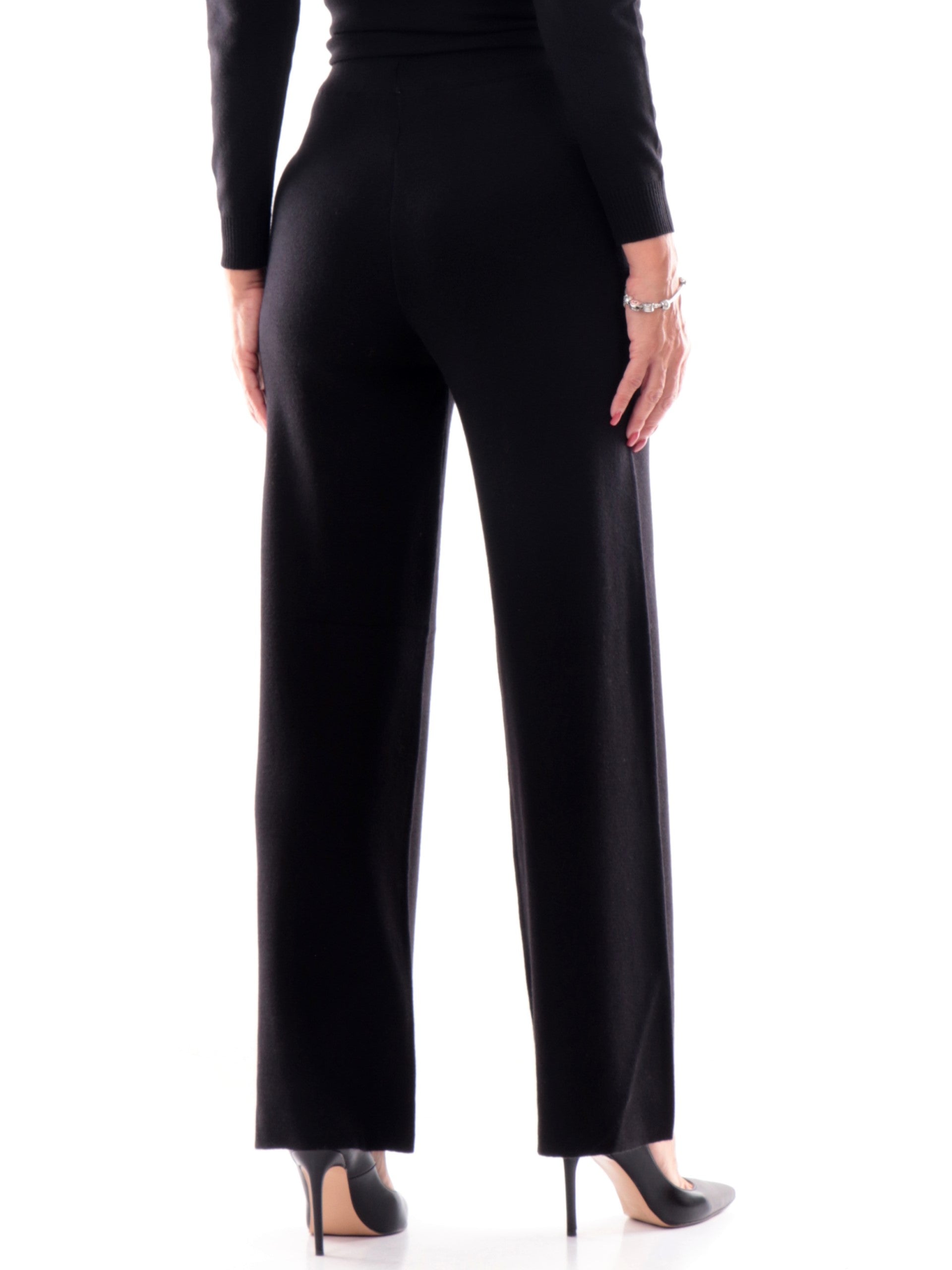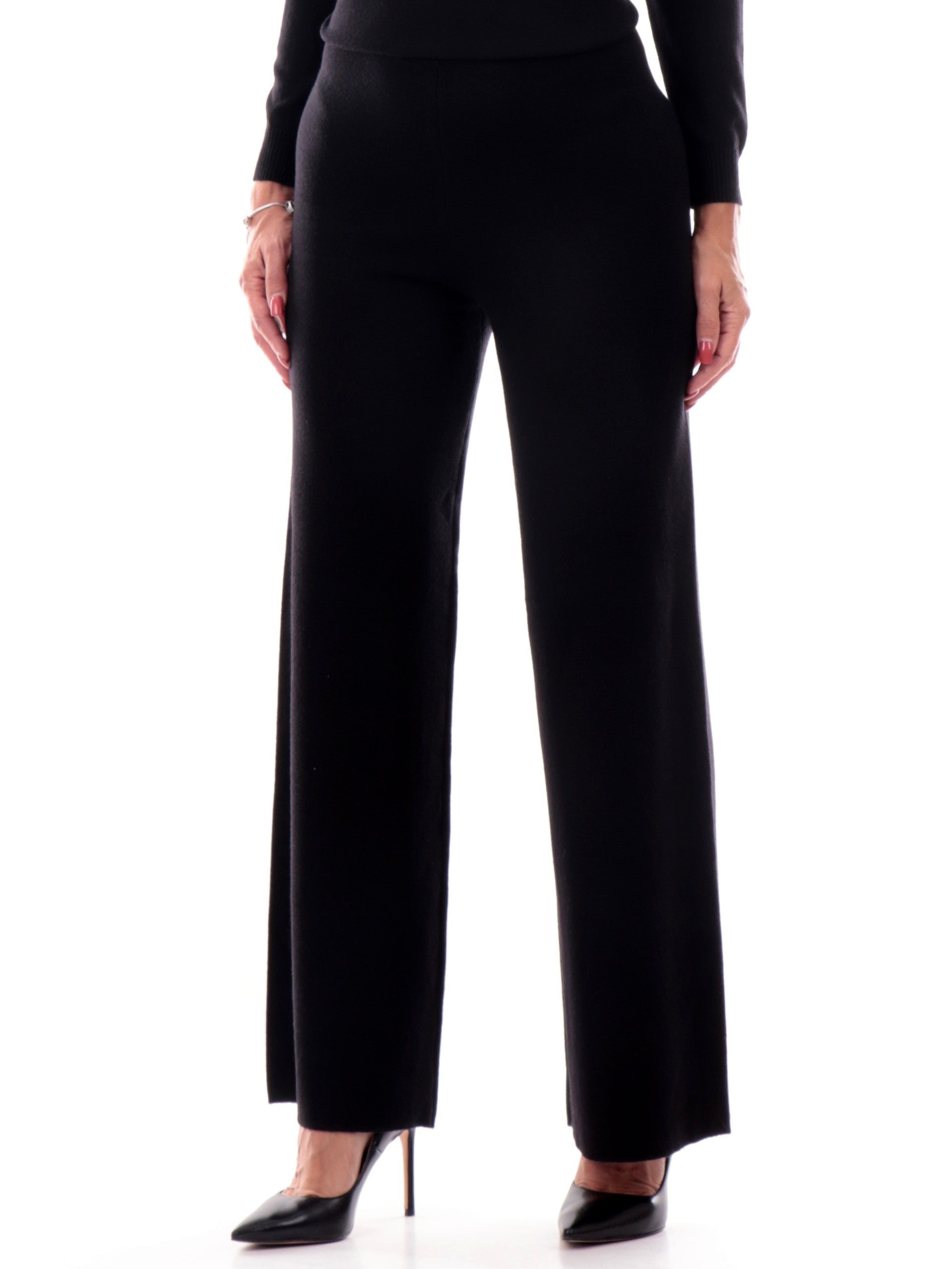 Pantaloni Anis neri da donna palazzo in maglina 255W1306029