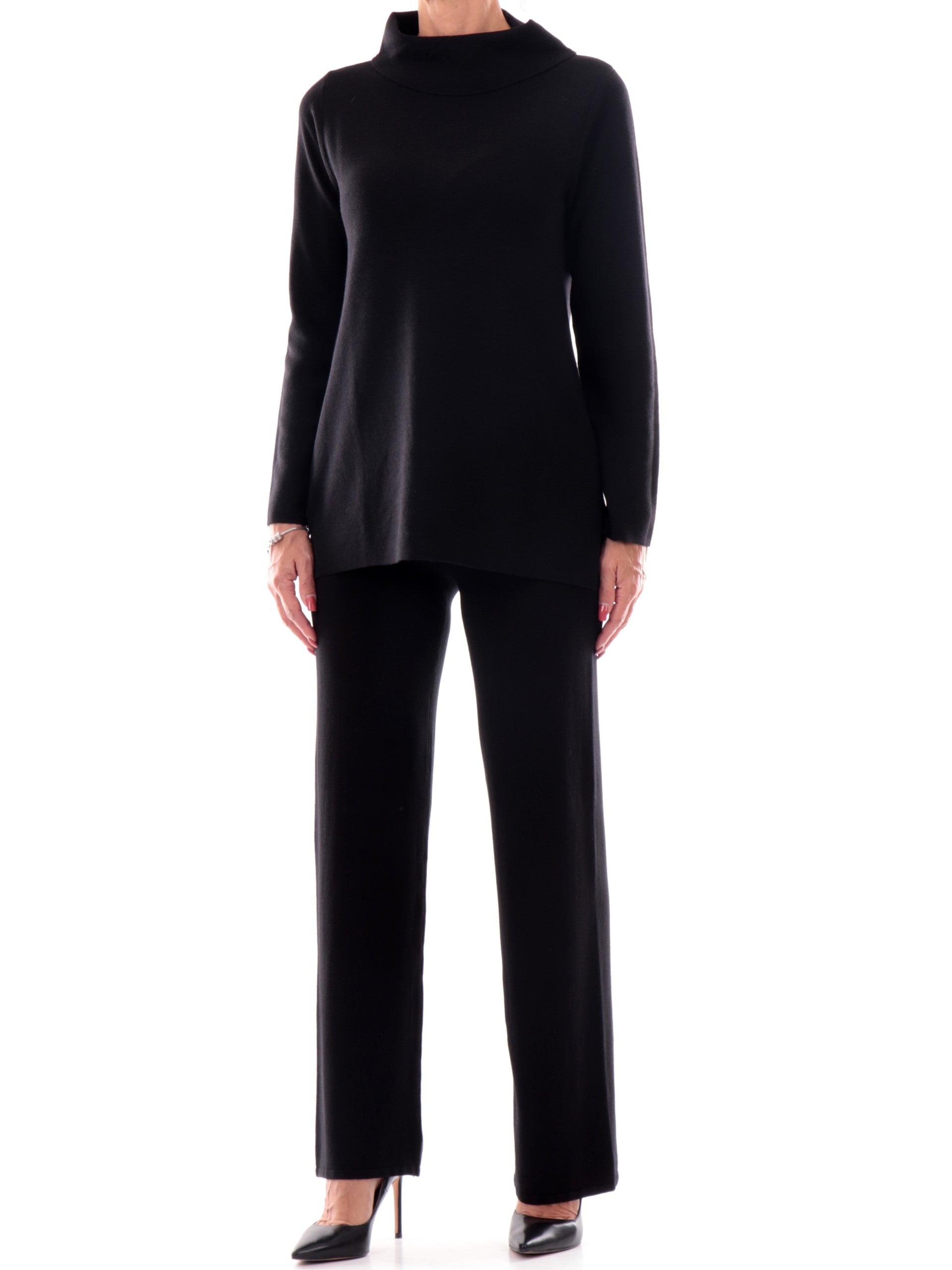 Pantaloni Anis neri da donna palazzo in maglina 255W6008029