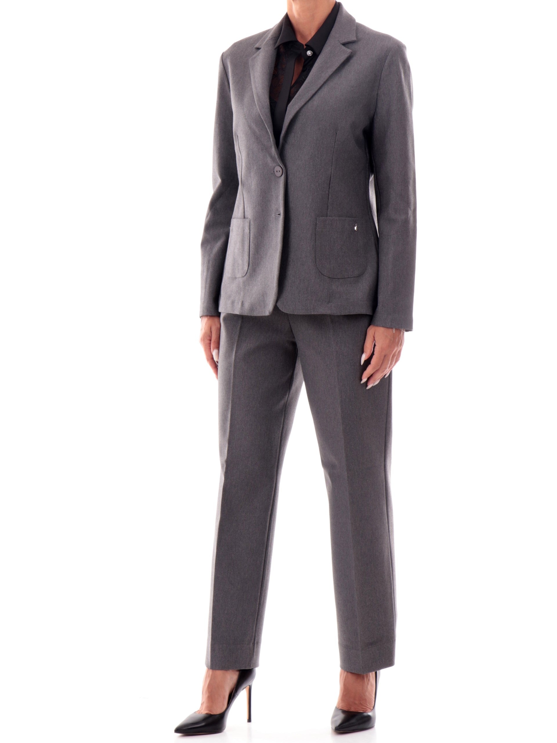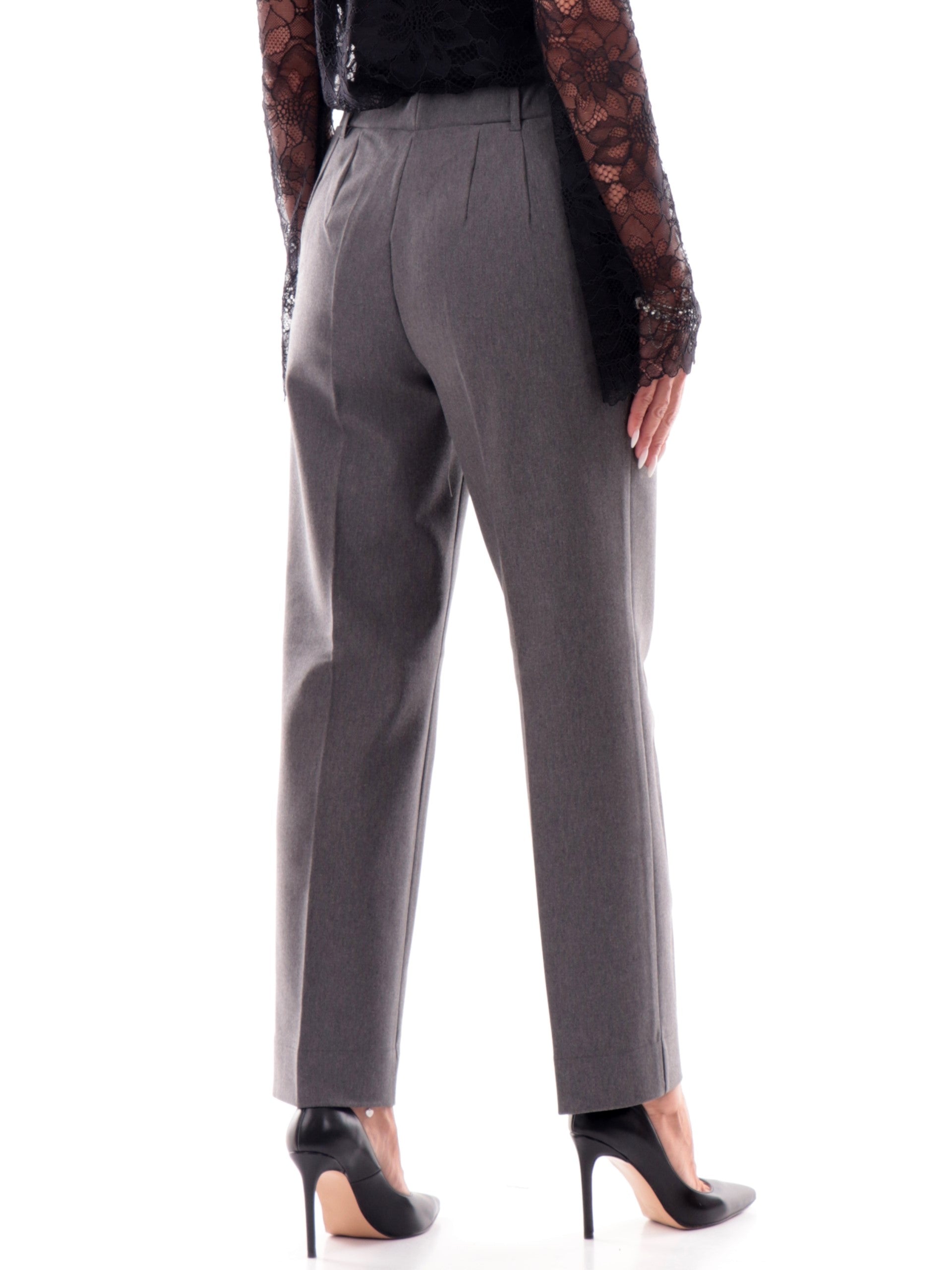 Pantaloni Ragno Chino grigi da donna con tasche DB24PP, realizzati in viscosa. Questi pantaloni donna Ragno hanno la banda elastica sul punto vita, la predisposizione per indossare la cintrua, due tasche laterali aperte con taglio obliquo e il ciondolo del brand applicato sul lato destro.