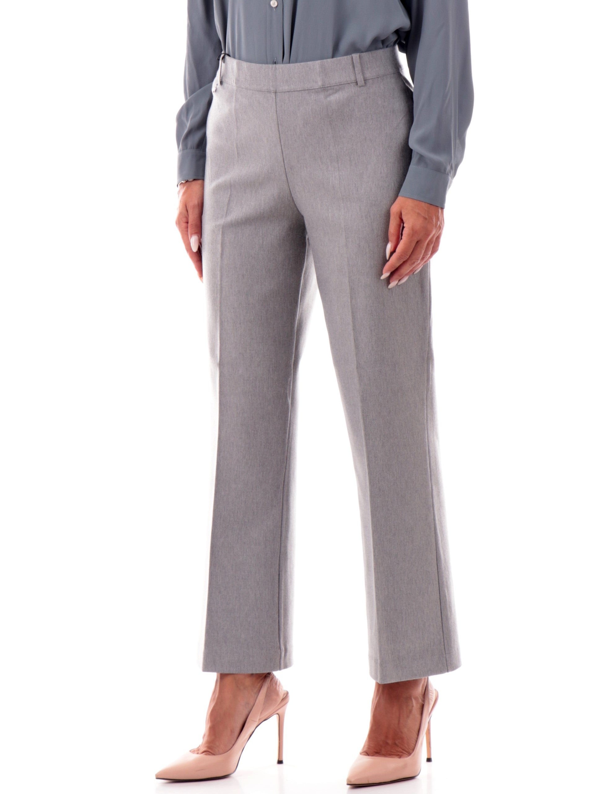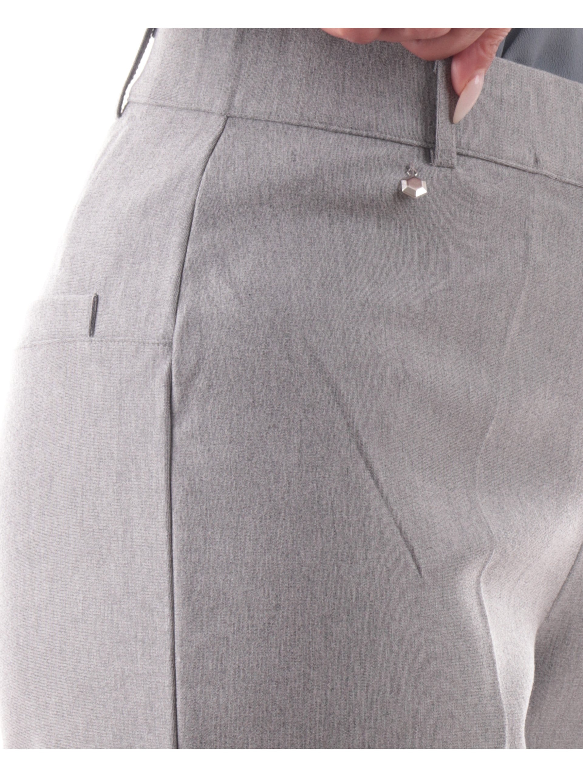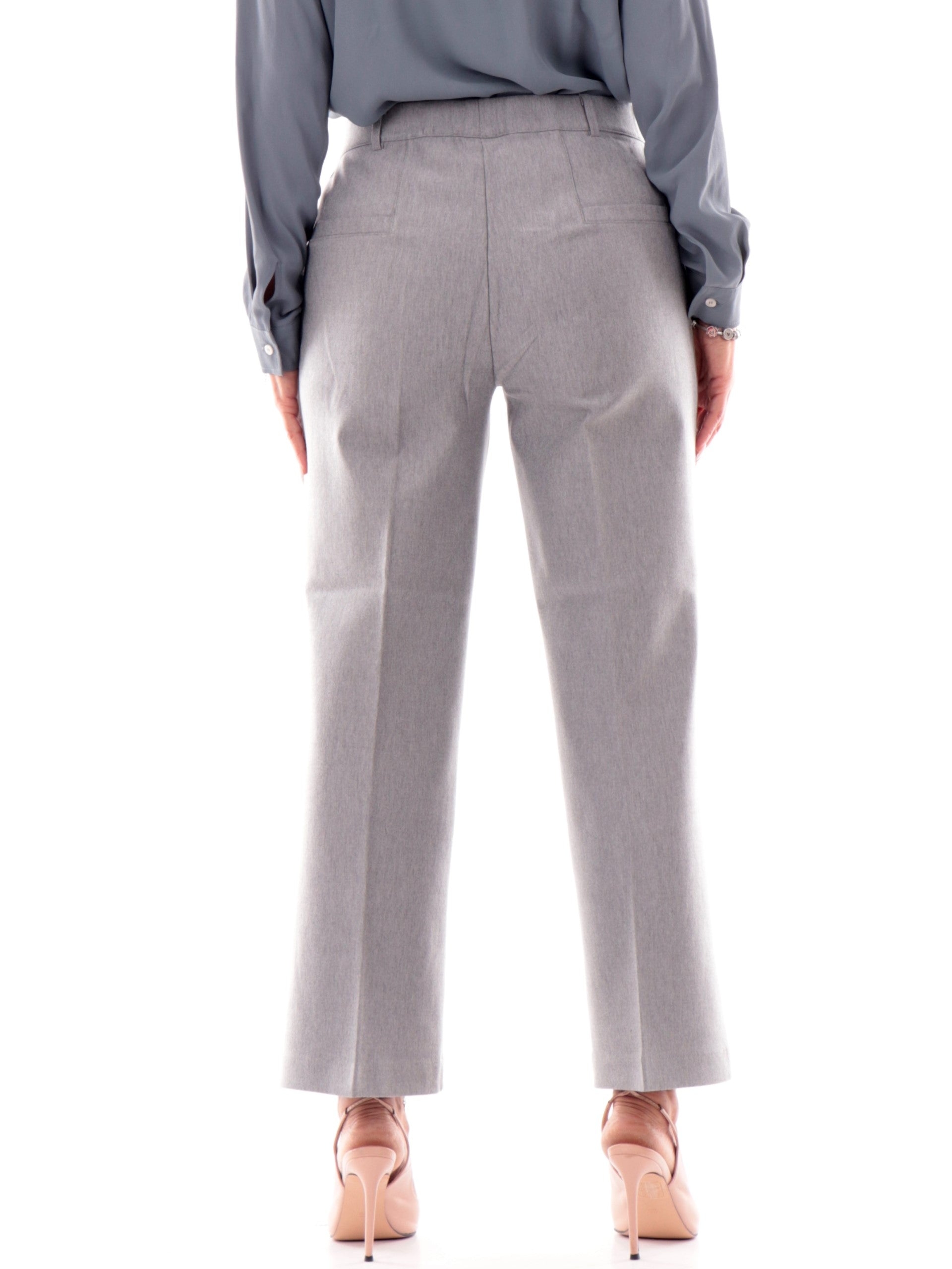 Pantaloni Ragno Crop Flare grigi da donna con tasche DE72PM, realizzati in viscosa. Questi pantaloni donna Ragno hanno la banda elastica sul punto vita, la predisposizione per indossare la cintura, due tasche posteriori a filo e il ciondolo del brand applicato sul lato destro.