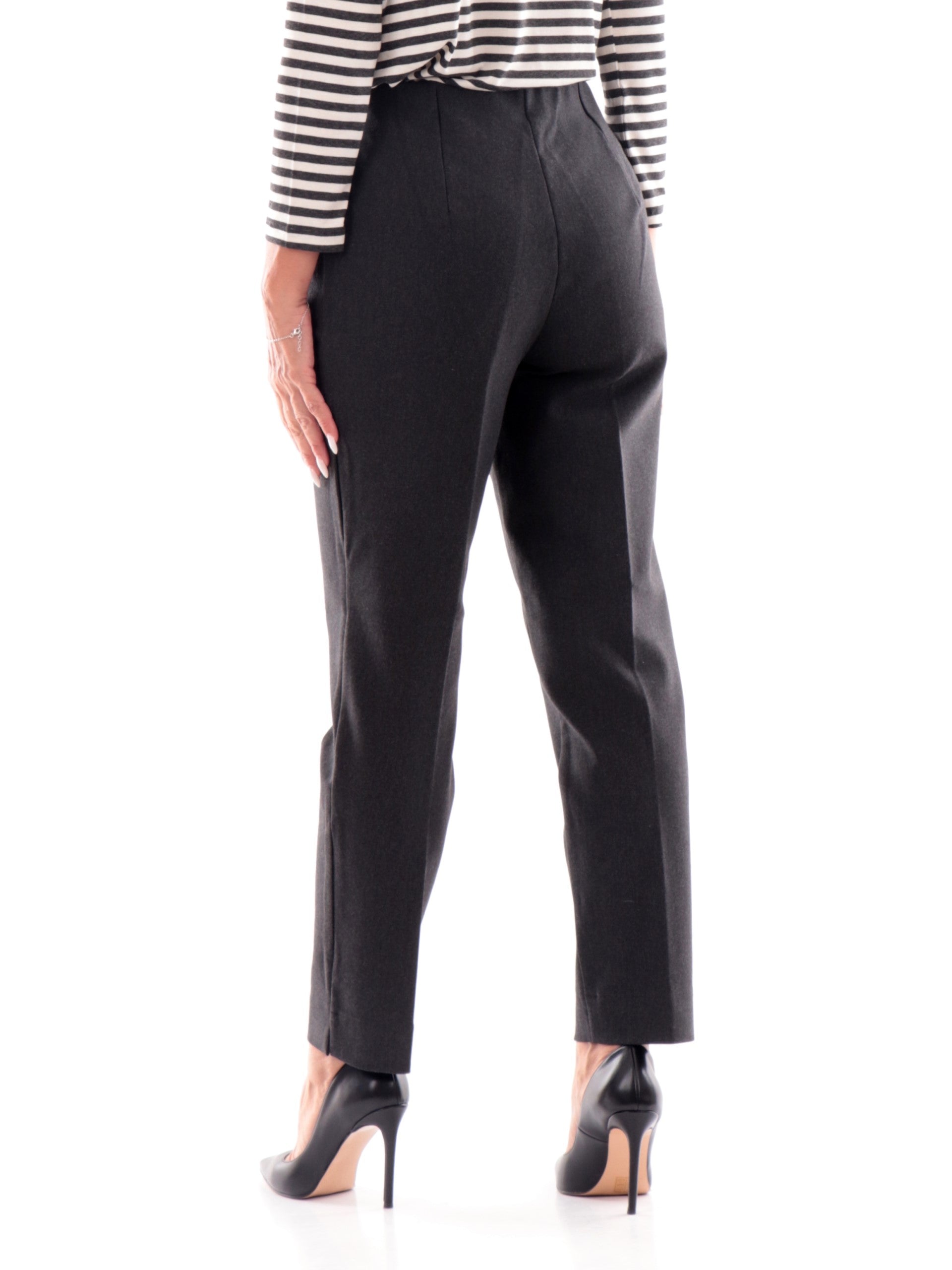 Pantaloni Ragno Slit Cigarette neri da donna Crop Chino DE72PS, realizzati in viscosa. Questi pantaloni donna Ragno hanno la banda elastica interna sul punto vita e il ciondolo del brand applicato sul lato destro.
