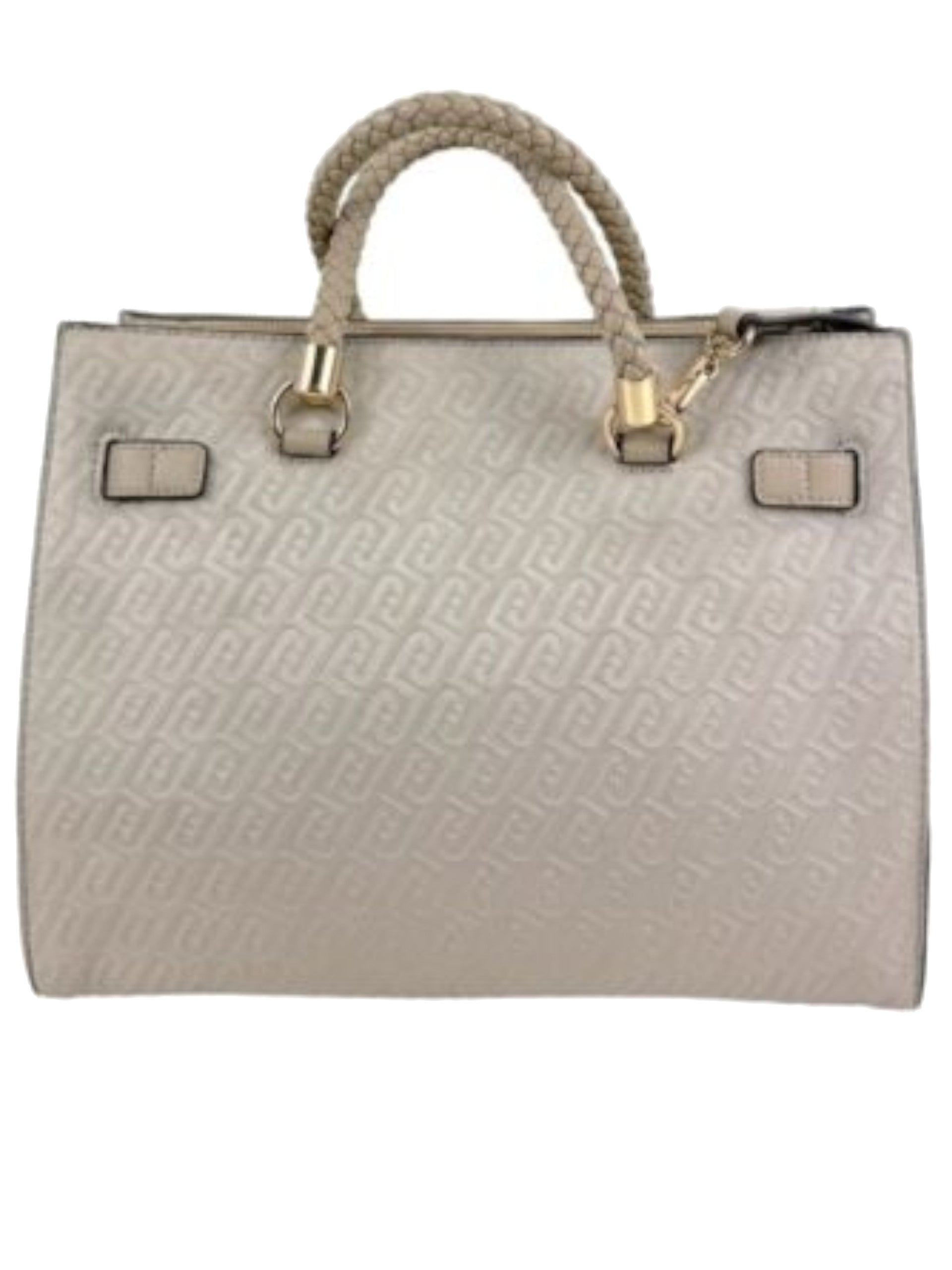 Borsa Liu Jo beige media da donna a mano con manici intrecciati Tote. Questa borsa Liu Jo è caratterizzata da manici intrecciati, charms removibile, logo all over e da tre scomparti, due scomparti con bottone automatico e uno con zip