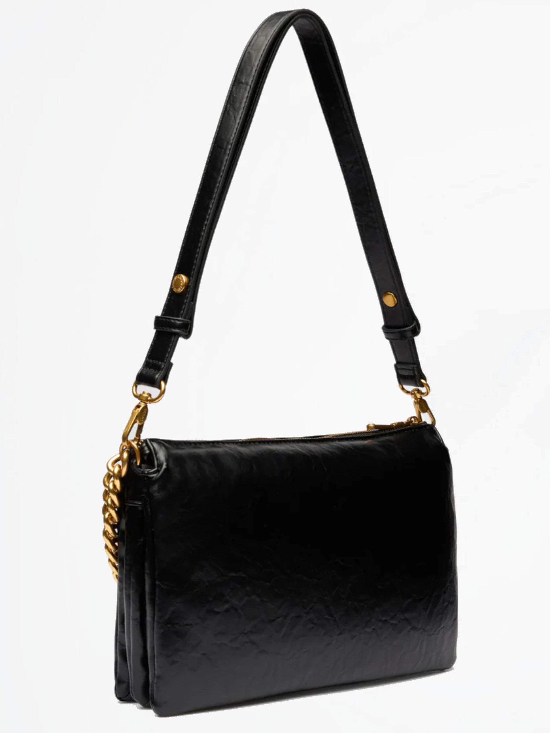 Borsa Liu Jo nera ECS M Crossbody da donna con tracolla AA5141E0886. Questa borsa donna Liu Jo nera ha il manico fisso con catenella, la tracolla rimovibile e regolabile, il salvaspalla, la chiusura full zip centrale e il logo Liu Jo applicato sul davanti. All'interno di questa tracolla Liu Jo troviamo un unico grande scomparto con una tasca interna con zip.