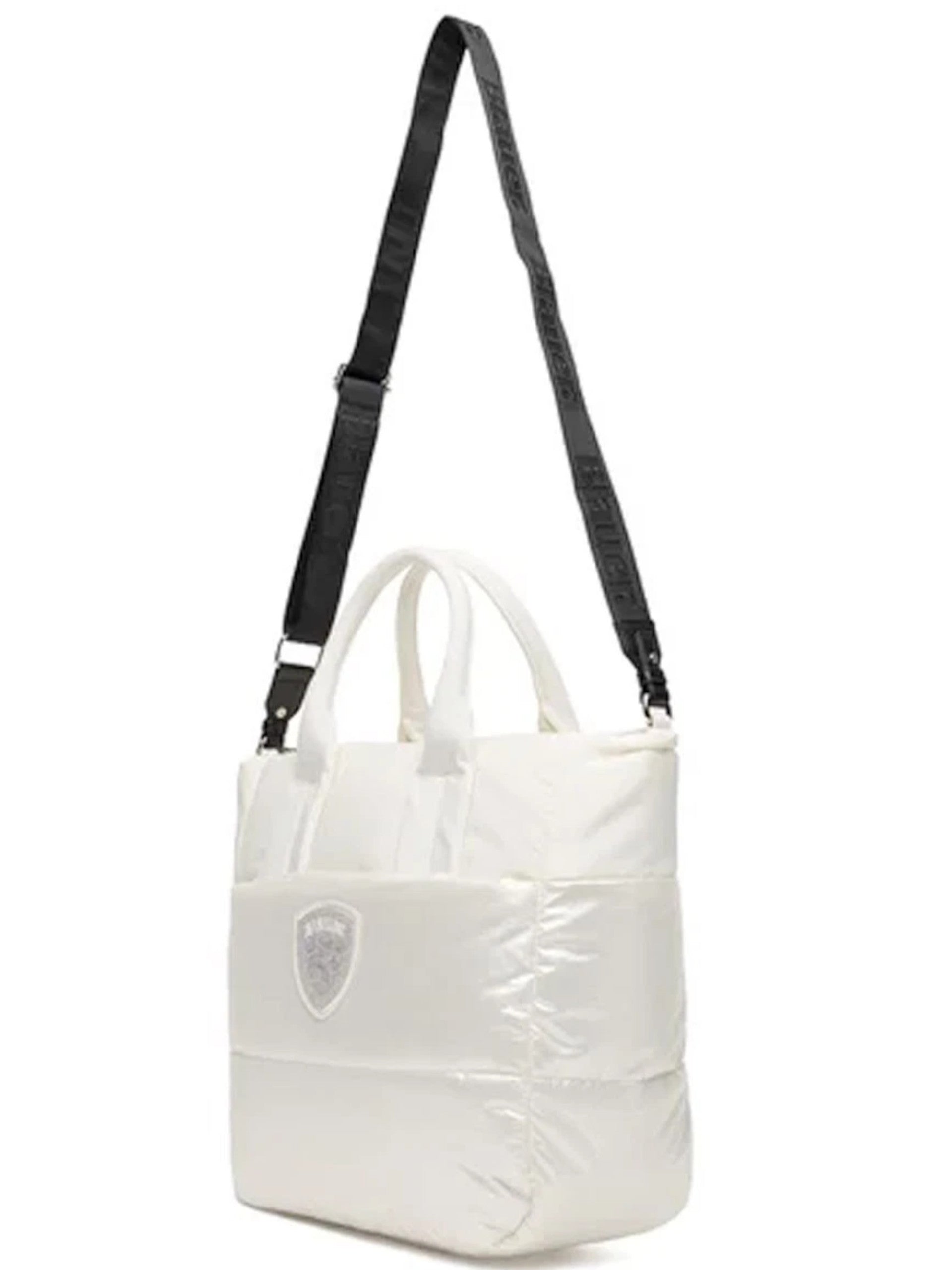 Borsa tracolla grande Blauer piumino ad onde bianca Quartxl01. Questa tracolla Blauer ad onde è caratterizzata da una tracolla nera removibile e regolabile, doppi manici, e la chiusura a zip. Sul davanti di questa tracolla Blauer troviamo uno scomparto con la chiusura a zip, all'interno è caratterizzata da un unico scomparto ampio, due tasche, una con la cerniera e una aperta.