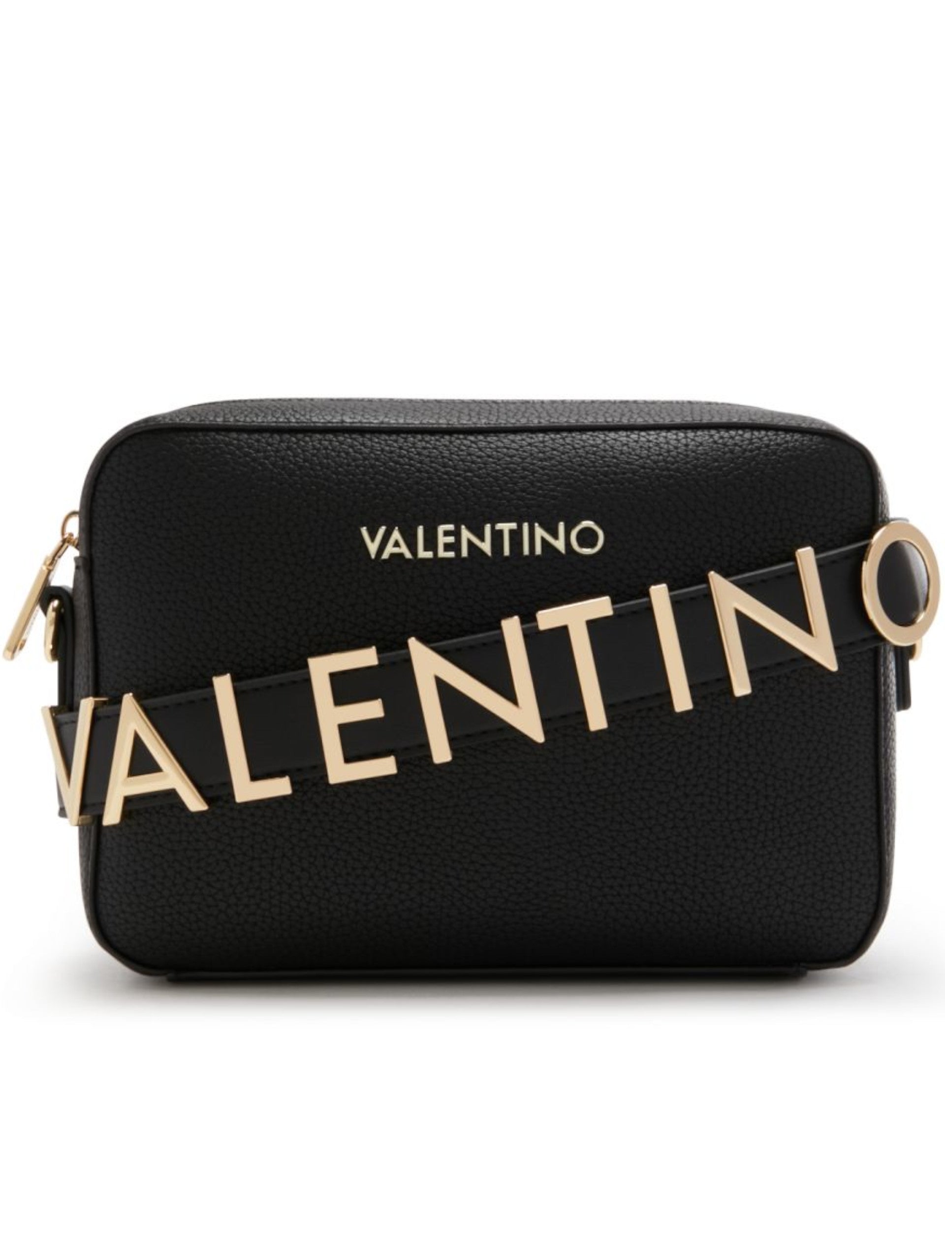 Borsa Valentino nera Alexia Medium da donna con tracolla logata VBS5A809. Questa borsa donna Valentino nera ha la chiusura full zip centrale, la tracolla logata rimovibile e regolabile, il salvaspalla e il logo Valentino applicato sul davanti. All'interno di questa tracolla Valentino troviamo un unico scomparto con una tasca interna.