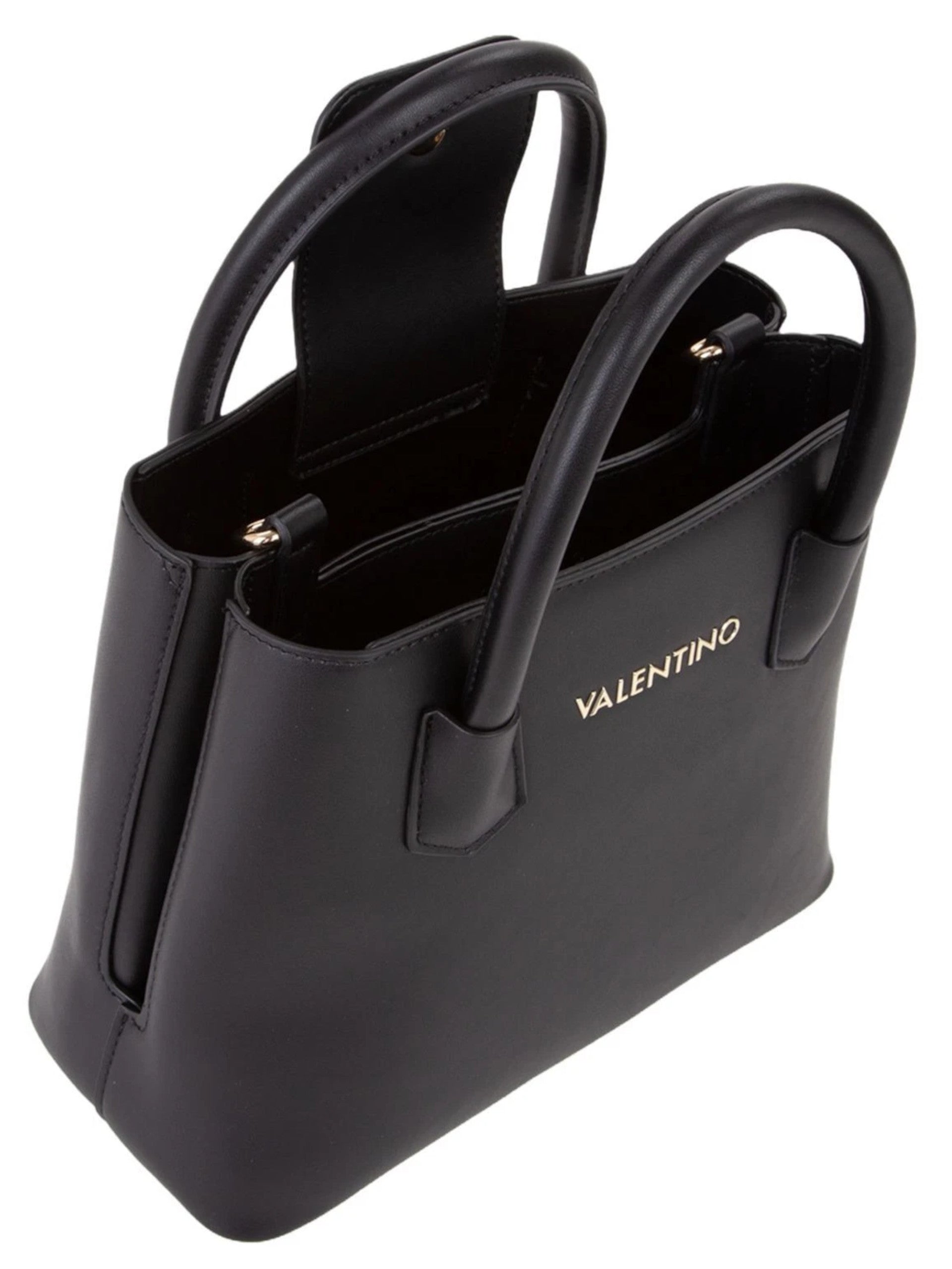 Borsa Valentino nera Faith Re da donna con tracolla VBS9AL05. Questa borsa Valentino nera ha il doppio manico, la tracolla removibile e regolabile, la chiusura con bottona automatico e il logo del brand sul davanti a contrasto colore. All'interno di questa borsa donna Valentino troviamo due grandi scomparti.