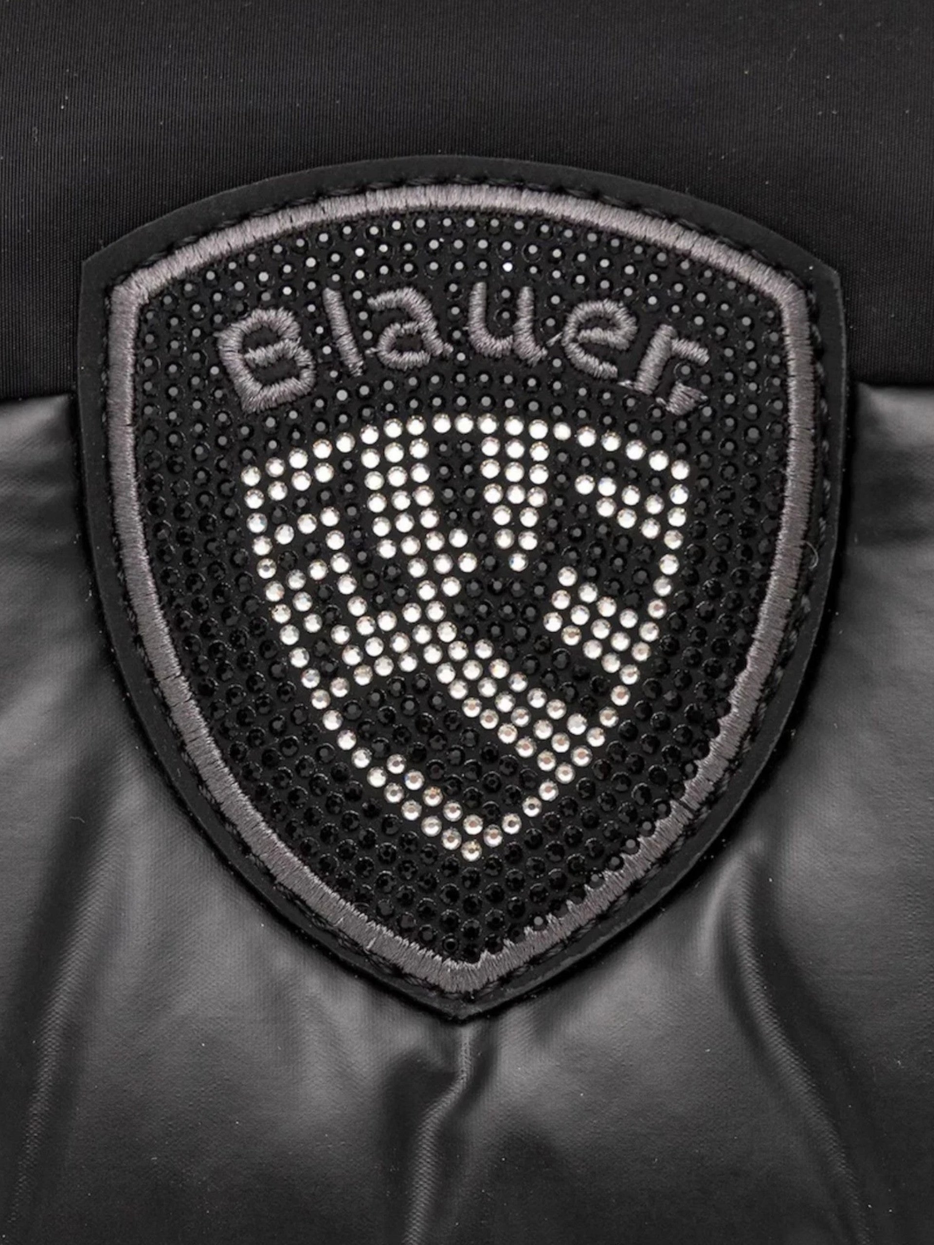 Borsa tracolla Blauer piumino ad onde nera JENNA02. Questa tracolla Blauer ad onde è caratterizzata da una tracolla removibile e regolabile, chiusura con bottone automatico, in ambo lati troviamo duetasche a zip e il logo con strass sul davanti. All'interno di questa tracolla Blauer troviamo un unico scomparto, due tasche, una aperta e una con la cerniera.