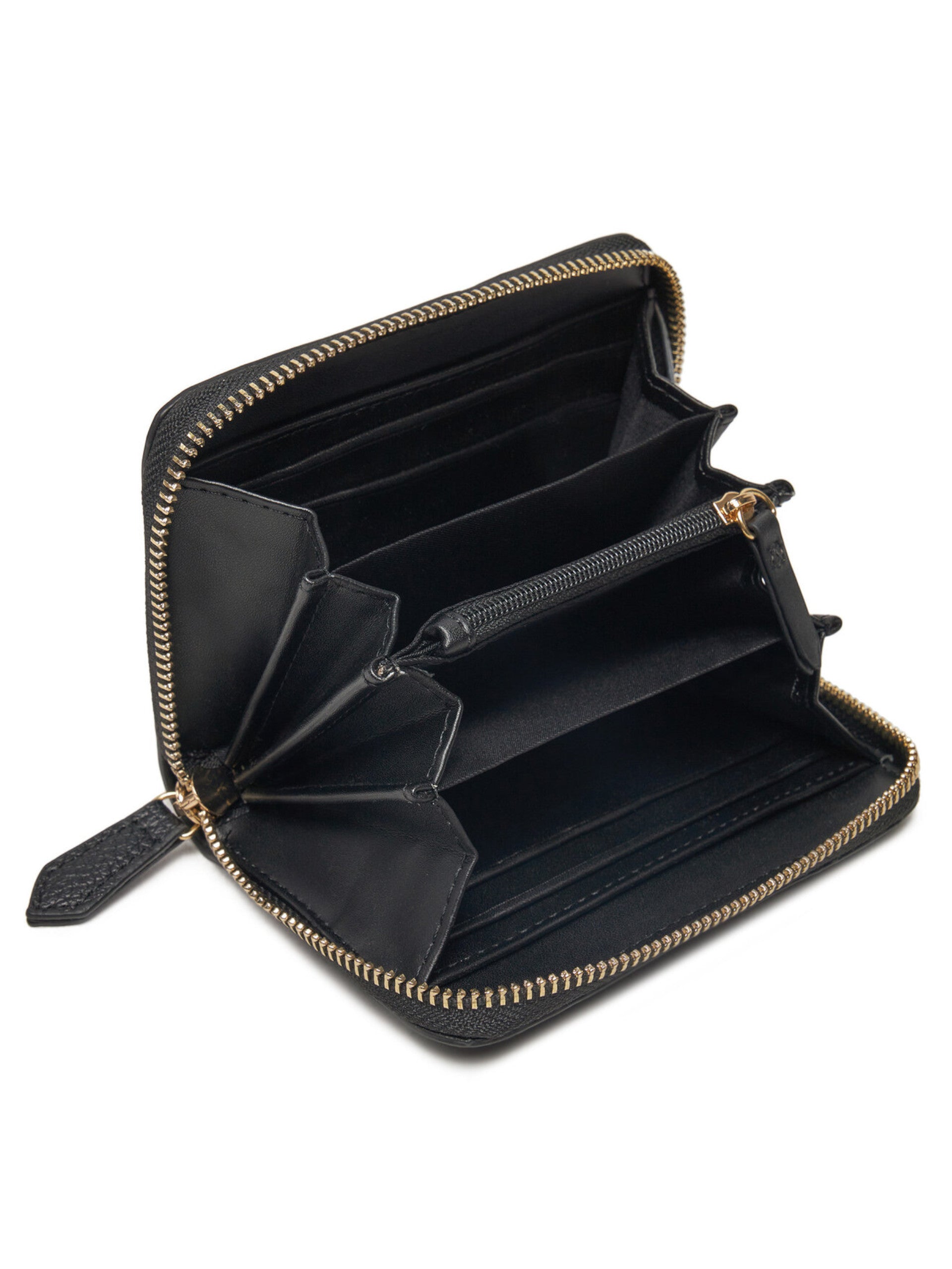 Portafoglio Valentino nero Alexia Medium da donna zip around VPS5A8137. Questo portafoglio donna Valentino nero ha la chiusura zip around e il logo Valentino applicato sul davanti. All'interno di questo portafogli Valentino troviamo cinque comodi scomparti e sei tasche per tessere e documenti.