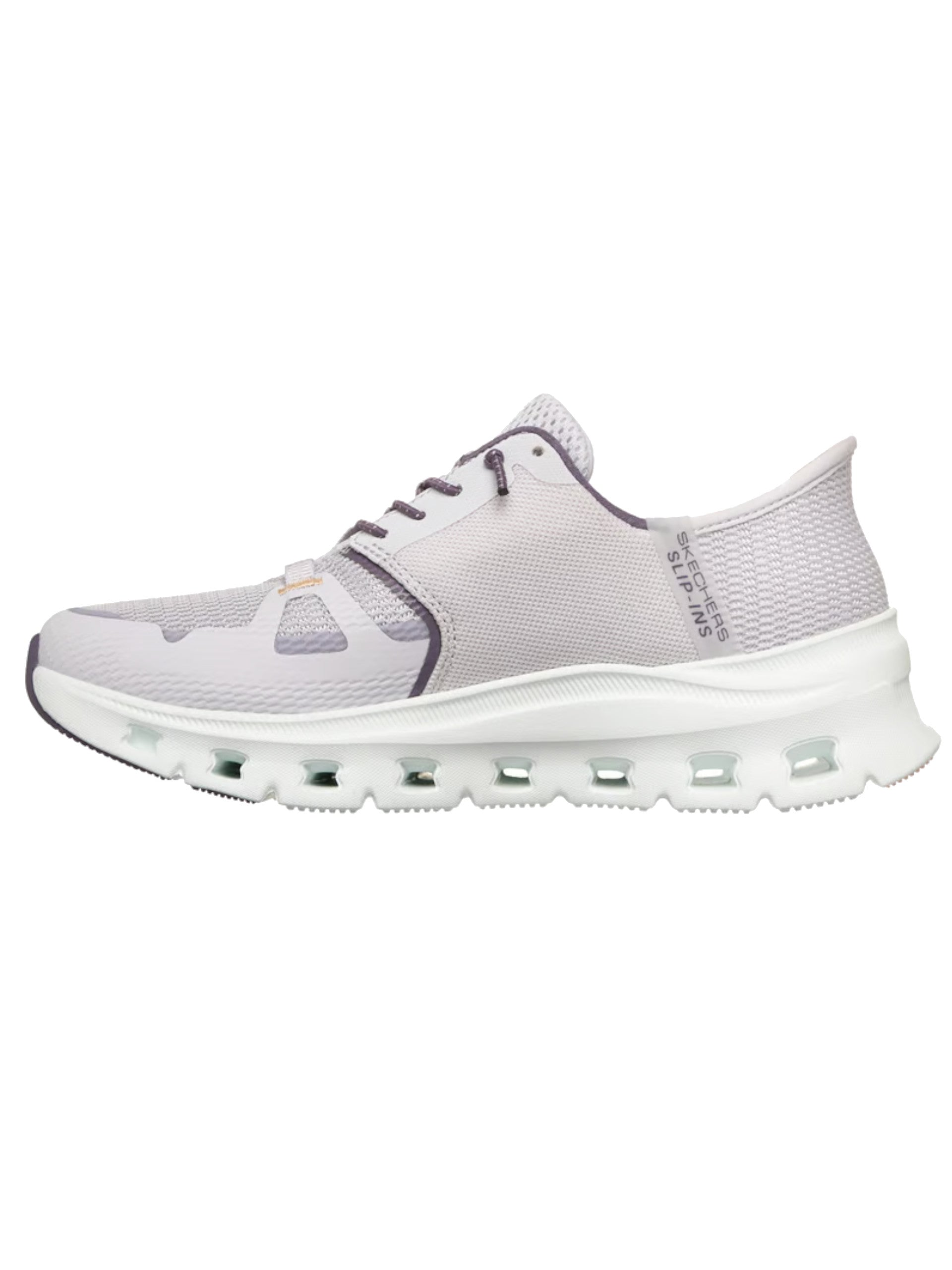 Scarpe Skechers lilla Glide step Pro da donna Vegan. Queste scarpe Skechers lilla hanno la tomaia in mesh con applicazioni termosaldate in materiale tecnico, la chiusura con lacci, la suola in gomma che garantisce un corretto sostegno dell'arco plantare, una soletta Skechers Air-Cooled Memory Foam, un’intersuola Glide-Step e la tecnologia SLIP IN per il massimo comfort e praticità