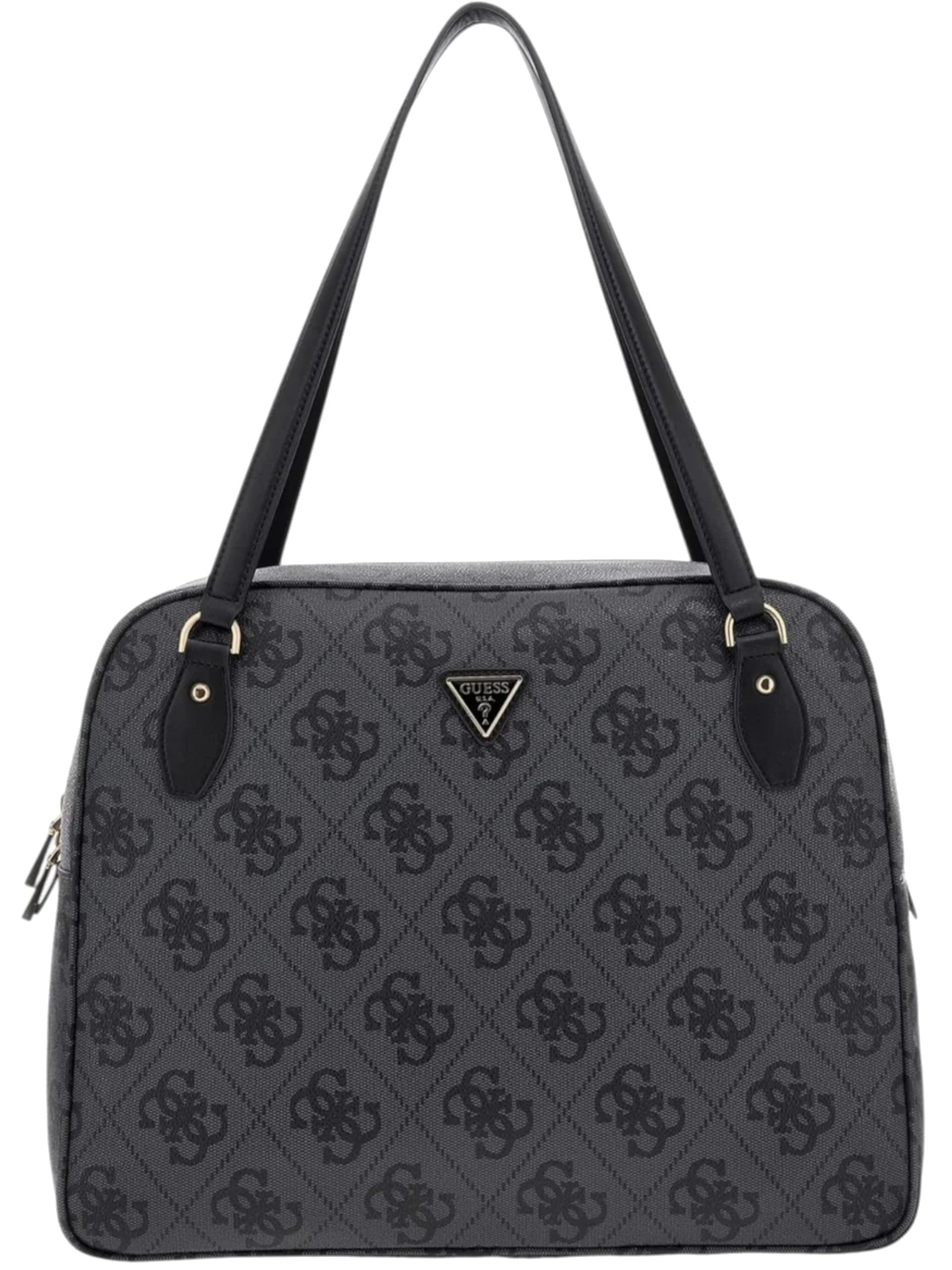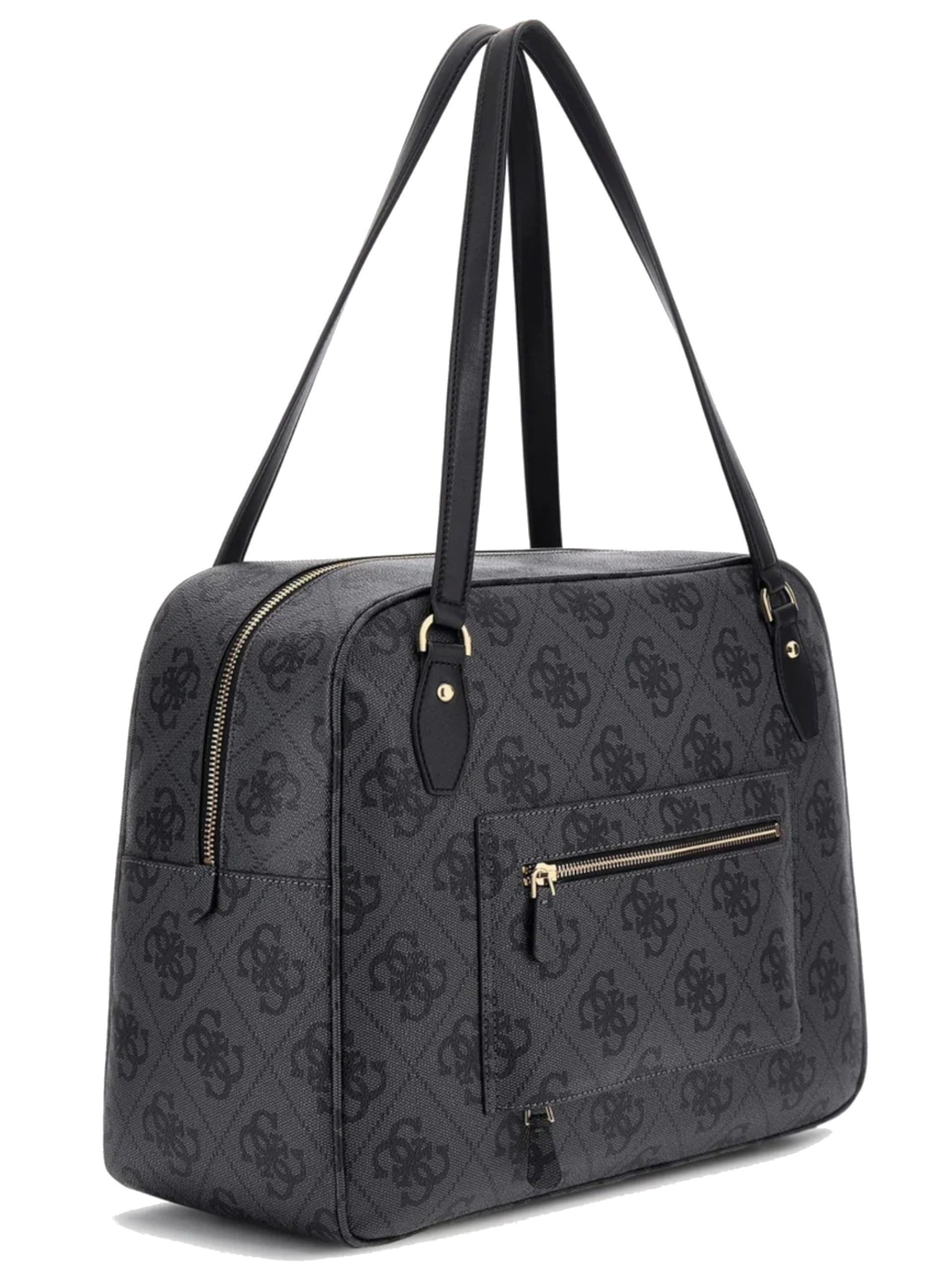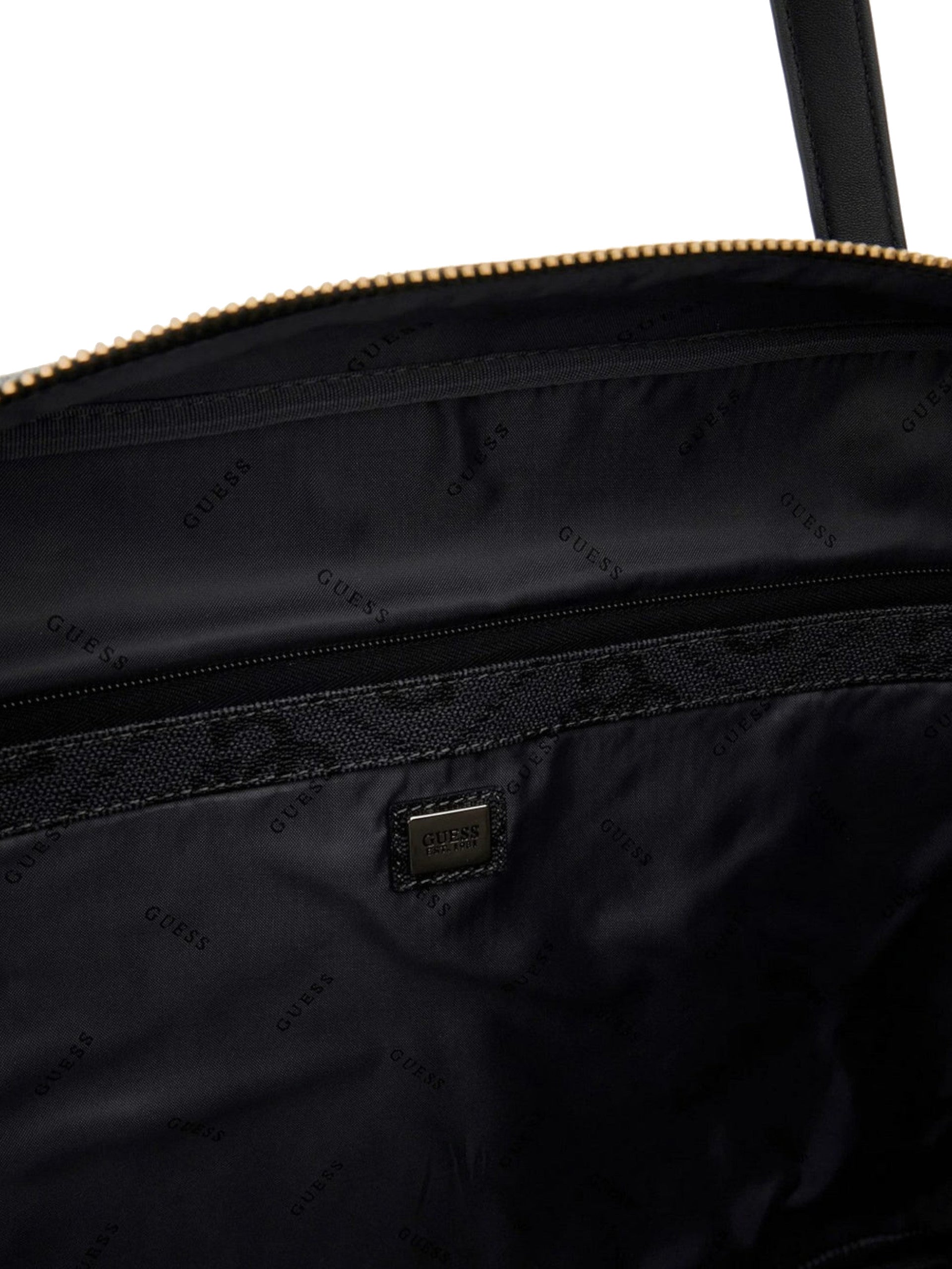 Borsone da viaggio Guess nero da donna logo all over. Questo borsone da viaggio Guess è caratterizzato dal manico fisso per il trasporto a mano e a spalla, la chiusura con zip, sul davanti troviamo applicato il logo Guess e il logo all over. Questa borsa è caratterizzata da un unico scomparto grande caratterizzato da una tasca con zip e due tasche aperte