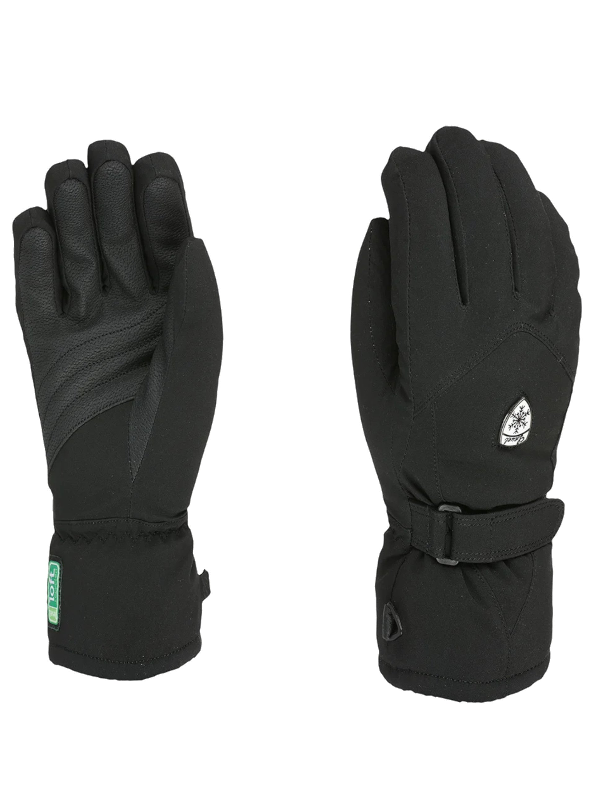 Guanti Level neri da donna Hero. Questi guanti Hero sono affidabili per lunghe giornate in montagna. Il design classico garantisce calore e impermeabilità con tecnologia Membra- Therm Plus e tessuti idrorepellenti. L'Imbottitura è realizzata in materiali riciclati, adatto fino a - 10°C