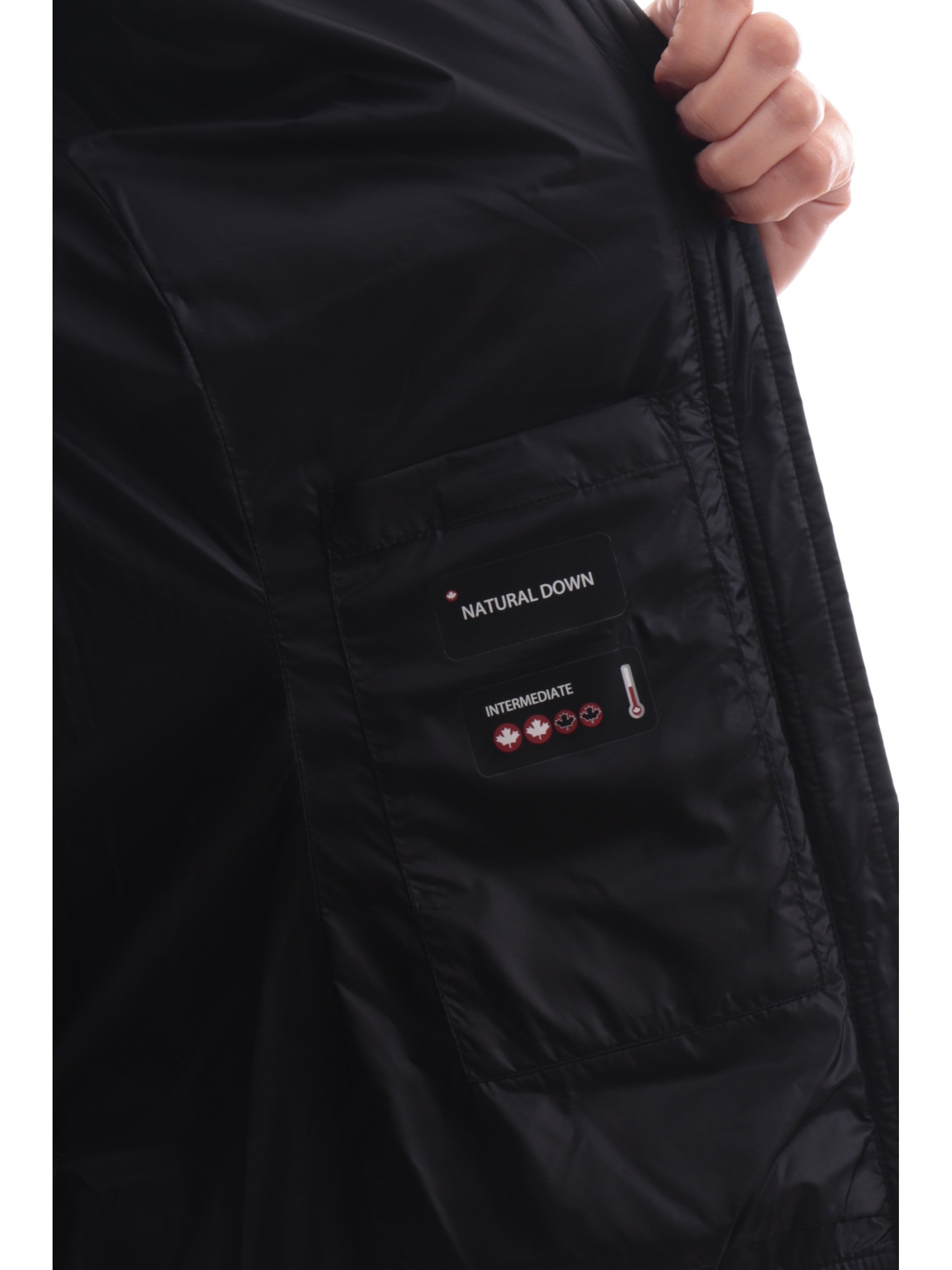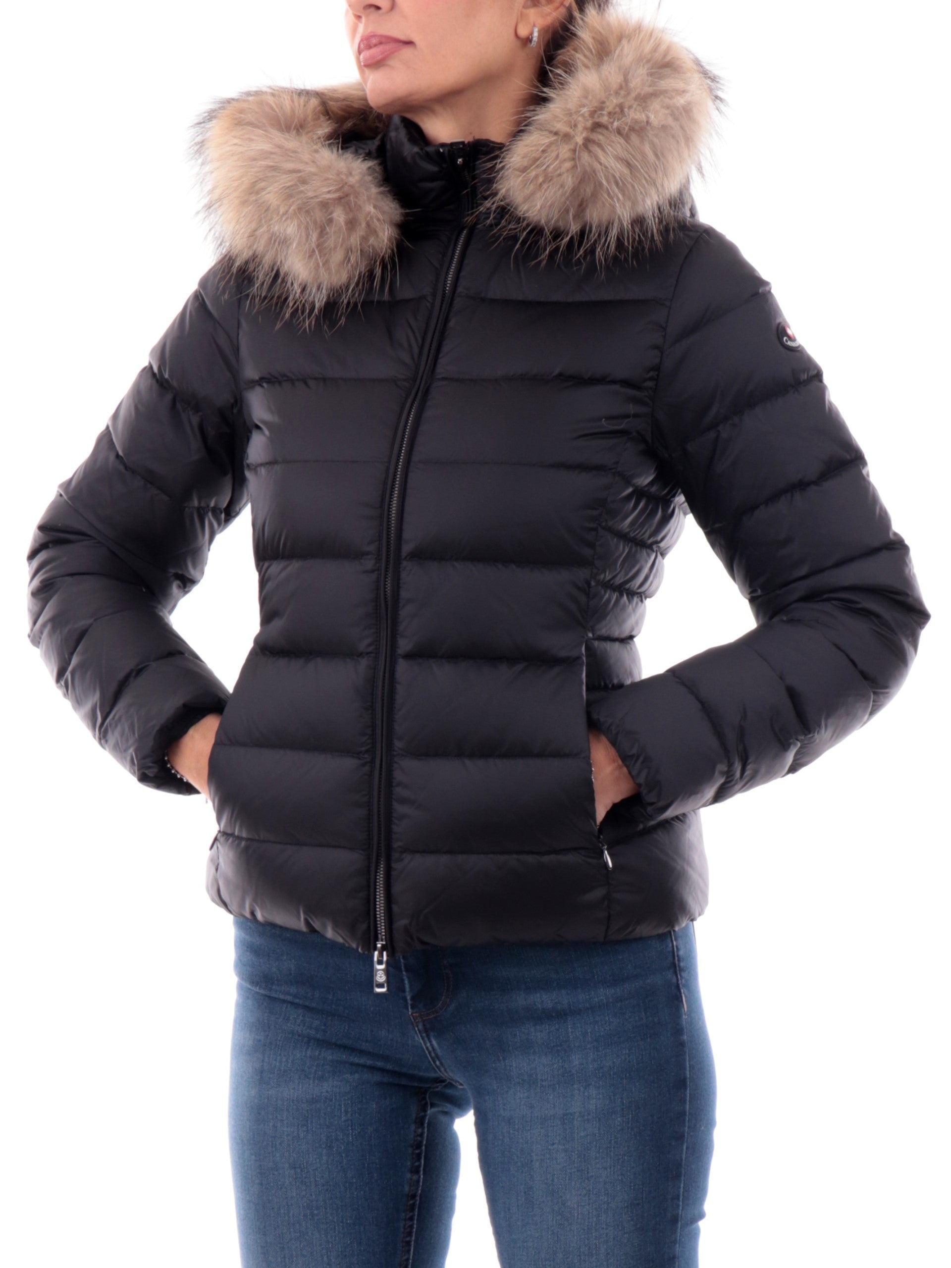 Piumino Canadiens nero con cappuccio in pelliccia da donna LISBET 2.0. Questo piumino Canadiens realizzato da un tessuto trapuntato idrorepellente, in vera piuma è caratterizzato dal cappuccio fisso con pelliccia removibile, chiusura full zip con doppio cursore, due tasche laterali con zip, polsini e fondo regolare e il logo del brand applicato sulla manica sinistra