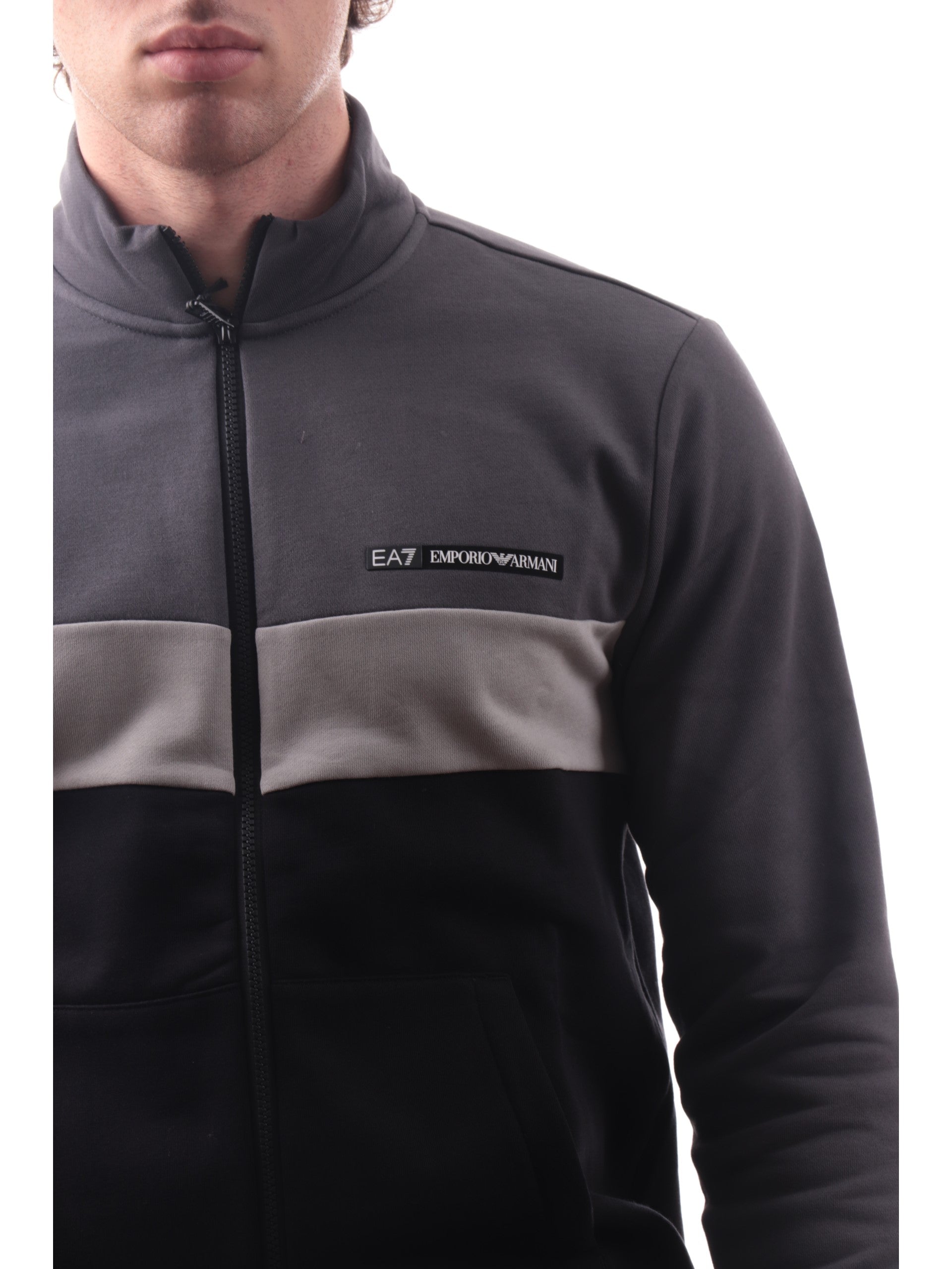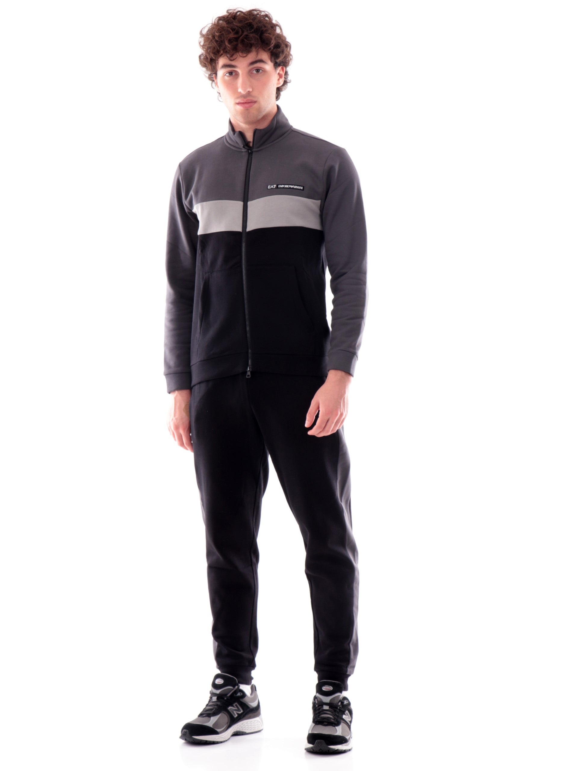 Tuta EA7 Grigia da uomo realizzata in morbido cotone felpato con banda logo lato cuore. Questa tuta uomo Emporio Armani è composta da felpa full zip e pantaloni tuta con polsini sul fondo. Una tuta completa uomo Armani essenziale nello stile e funzionale nel design.
