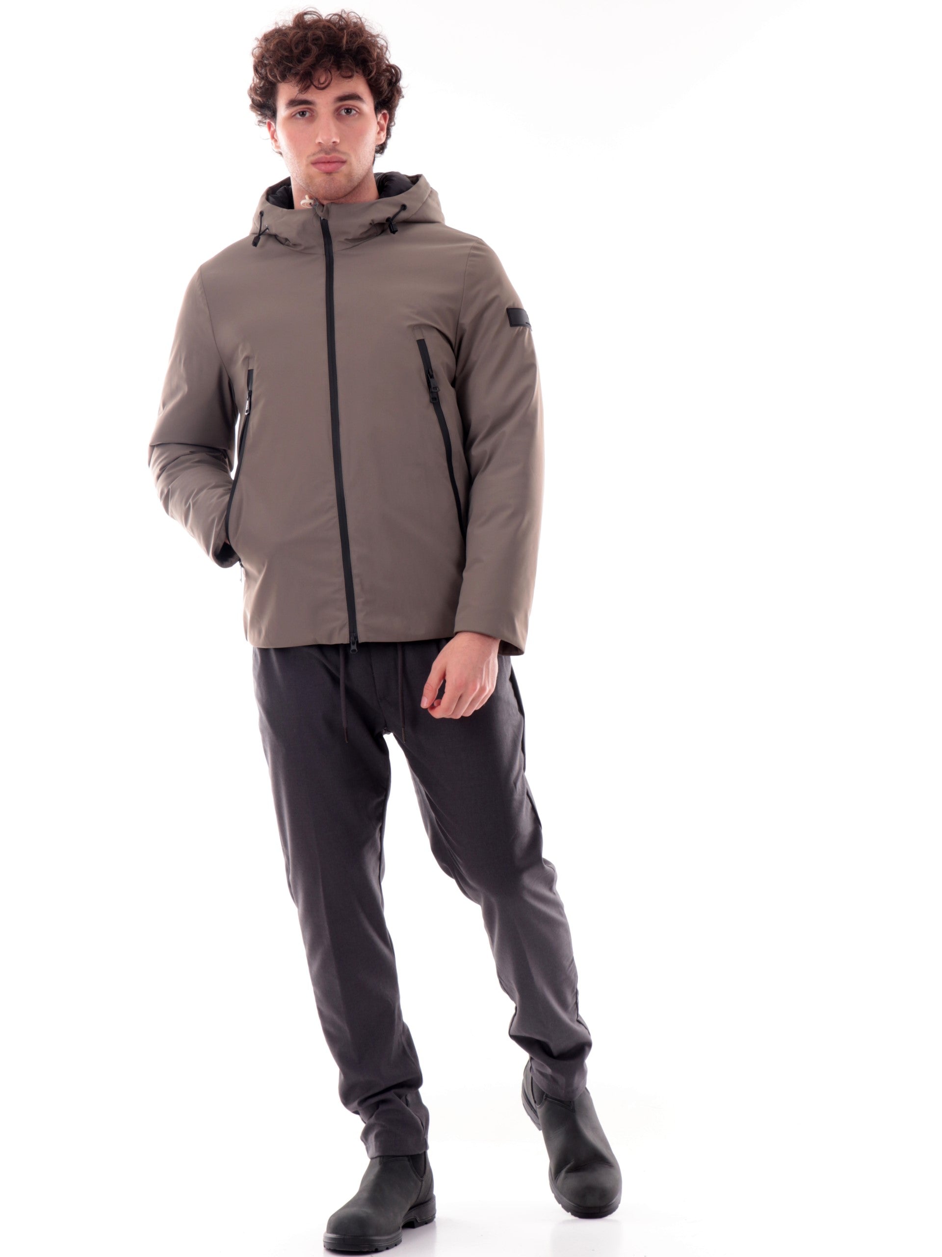 Giubbino verde da uomo Gianni Lupo. Questo giubbino verde Gianni lupo è realizzato dal tessuto tecnico, impermeabile e resistente all'acqua perfetto per un utilizzo versatile in diverse condizioni climatiche, ha un'imbottitura calda, soffice ed avvolgente al tatto. Questo giubbino verde da uomo è caratterizzato dalla chiusura full zip, quattro tasche laterali con chiusura a zip, un cappuccio fisso con coulisse, polsini e fondo elasticizzati. all'interno di questo giubbino verde troviamo due tasche con zip.