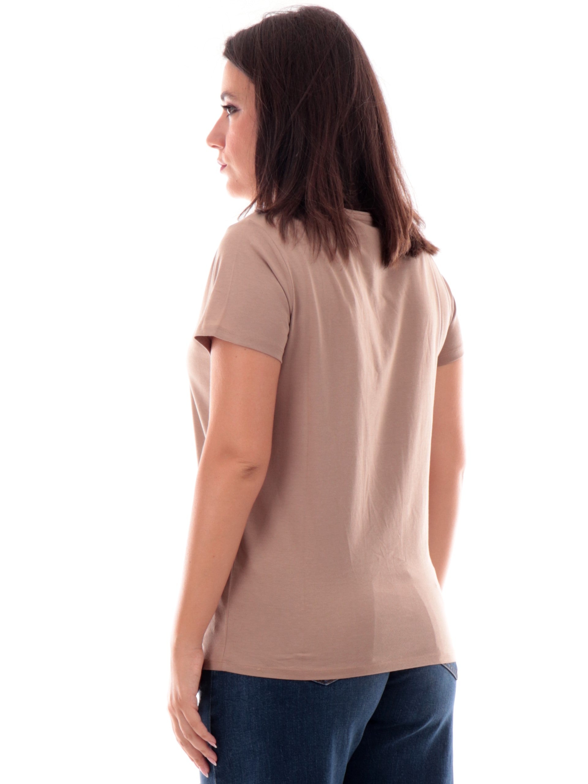 T-shirt Guess beige da donna girocollo logo Guess con strass W5YI32K9RM1