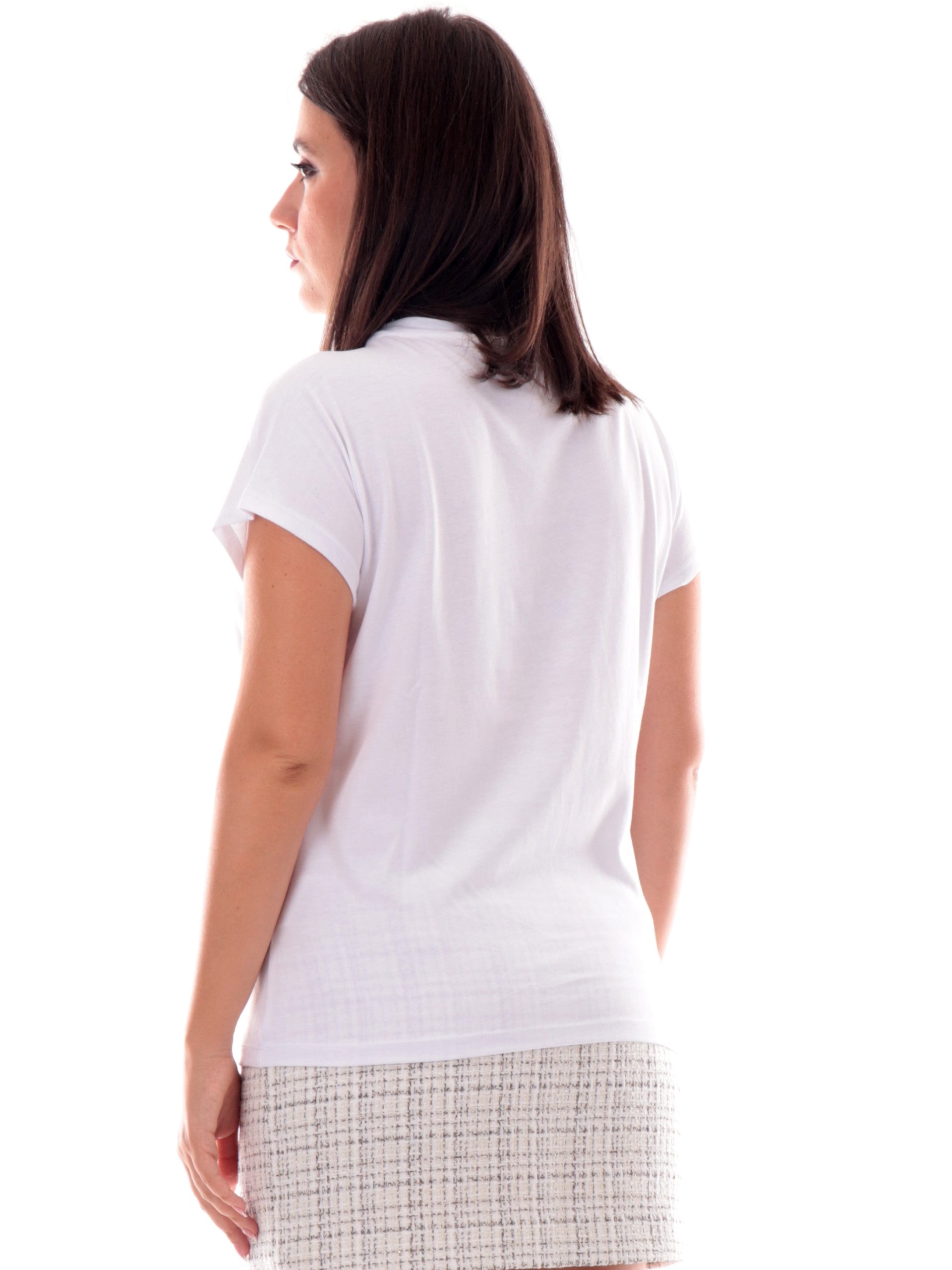Maglia Guess bianca da donna girocollo stampa Guess 4G con strass W5YI14I3Z14