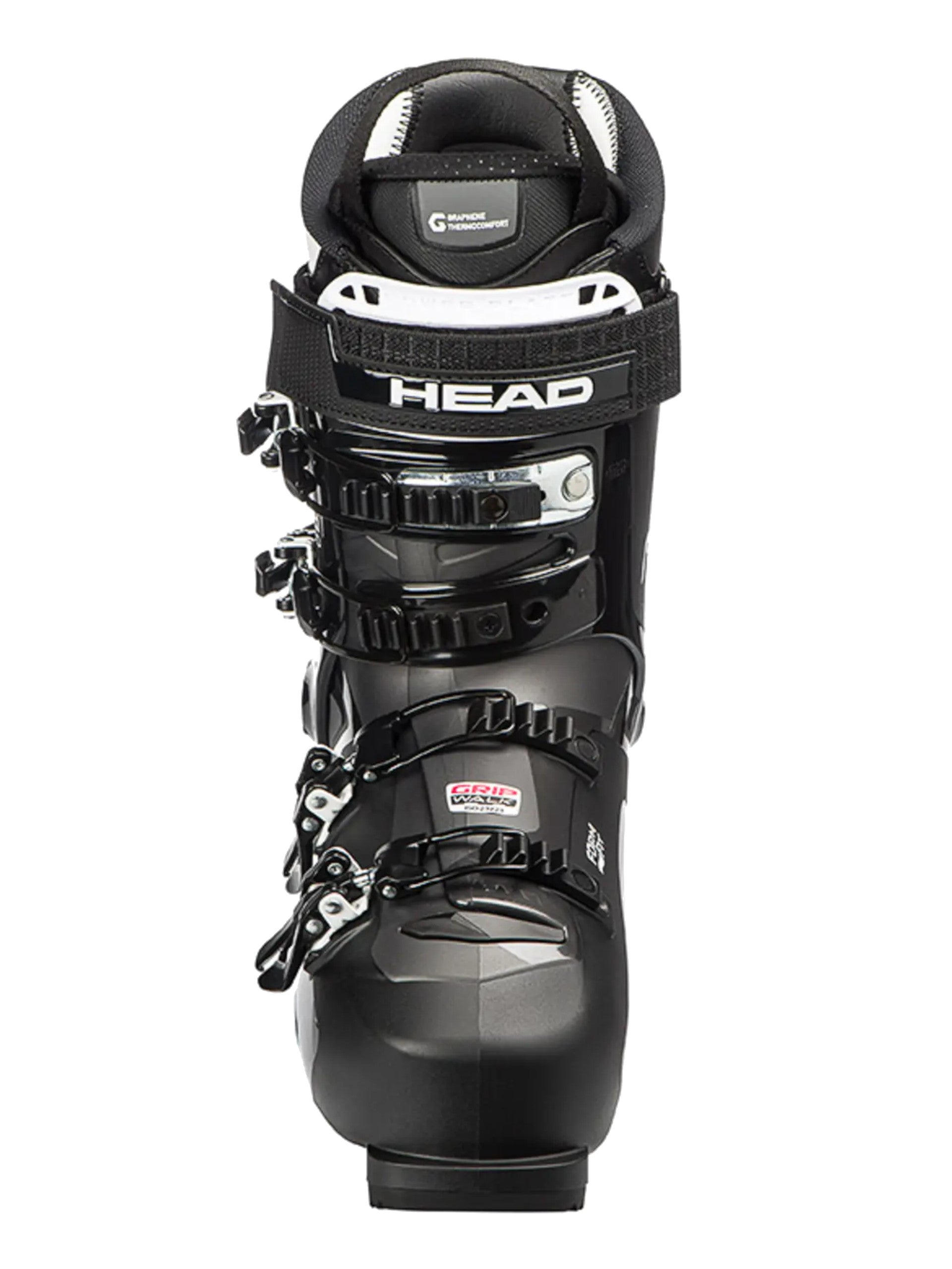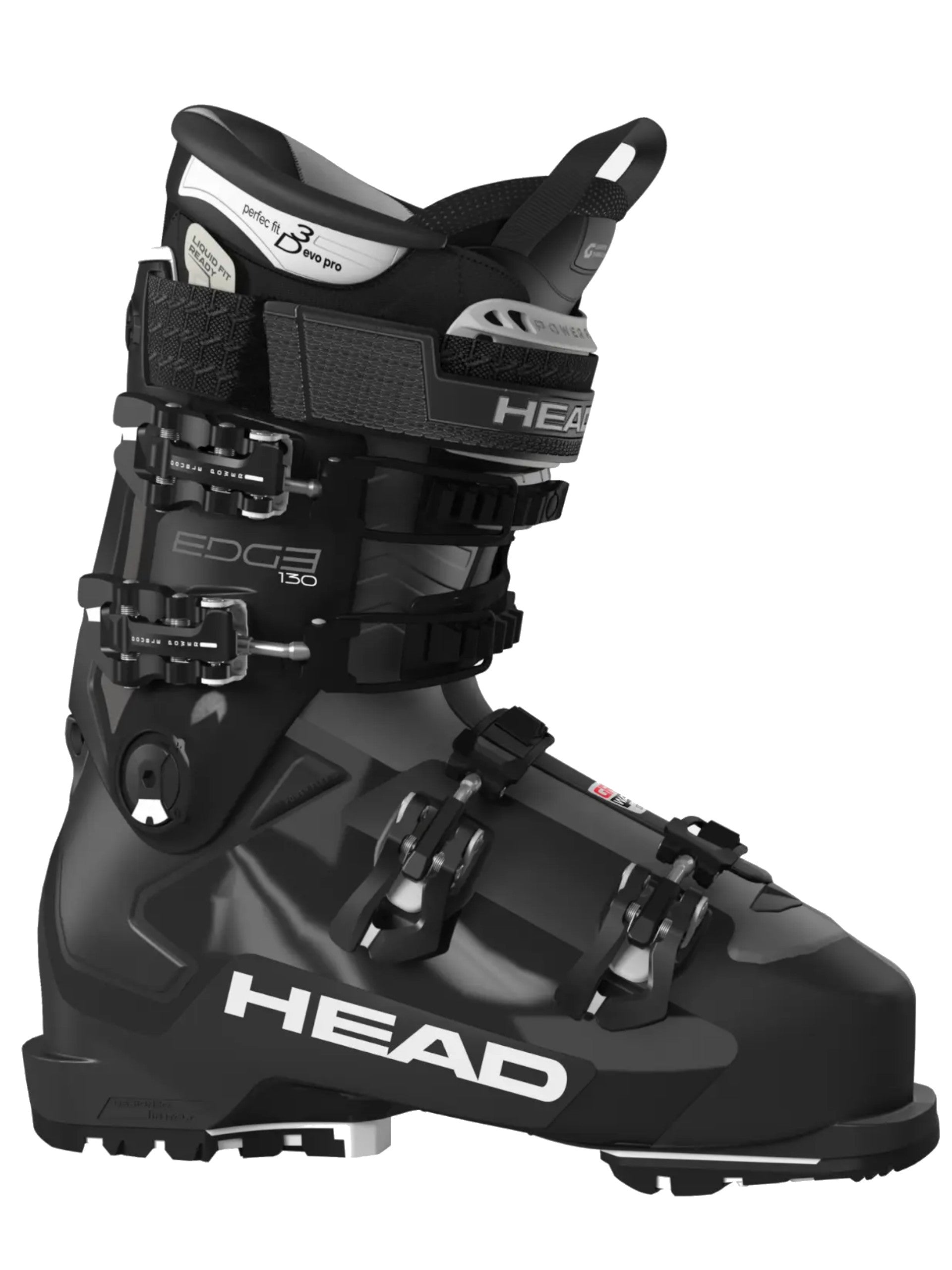 Scarponi Head da sci neri da uomo Edge 130 HV GW. Questi scarponi da neve da uomo con il nuovo design dello scafo EZ rende lo scarpone facile da calzare e togliere, mentre le plastiche Form Fit consentono una personalizzazione completa. Il materiale Liquid Fit nella scarpetta anatomica crea una sagoma aderente attorno alla caviglia e al tallone per una maggiore personalizzazione. Il grafene intrecciato nella scarpetta aiuta a regolare la temperatura.