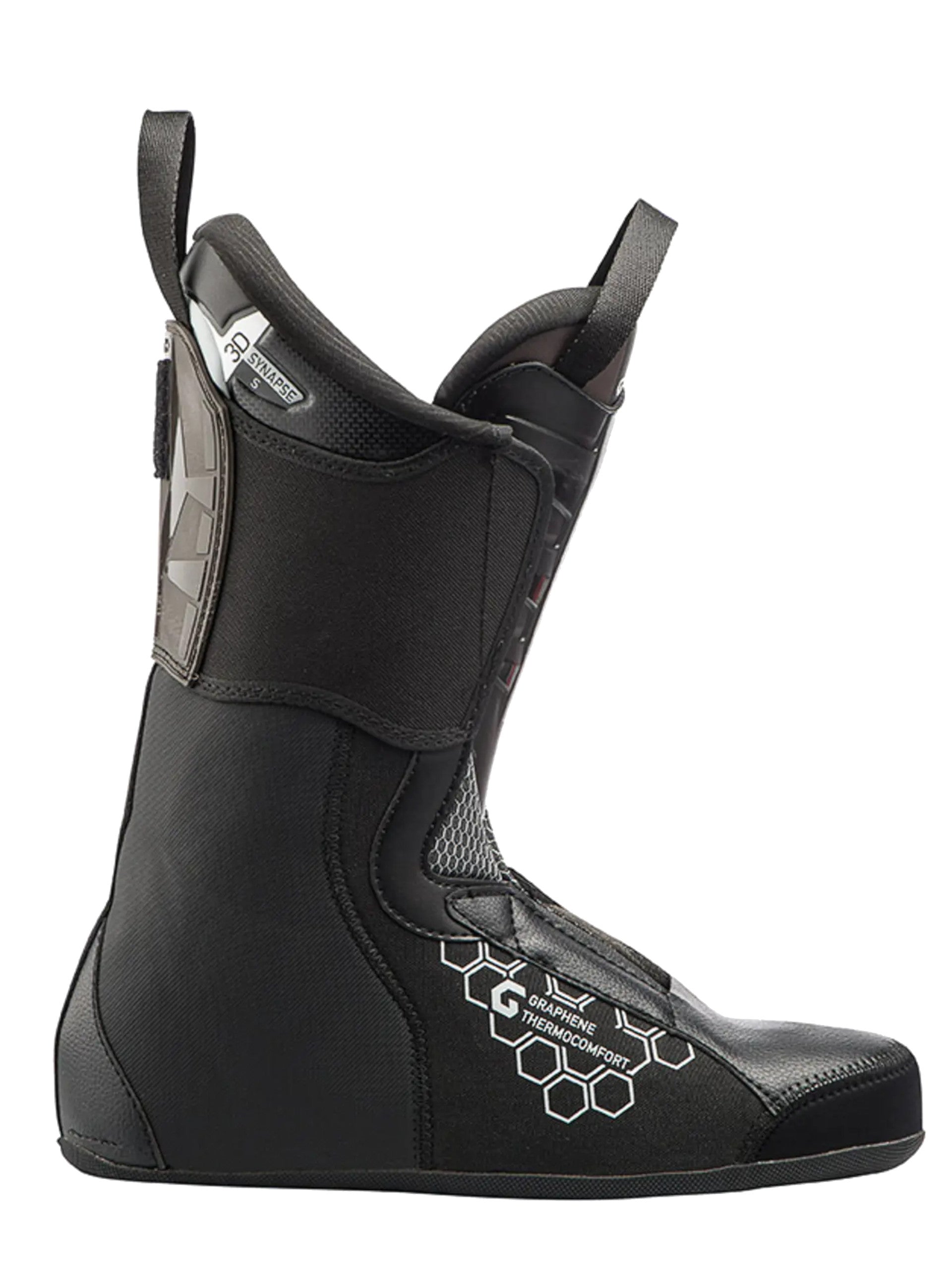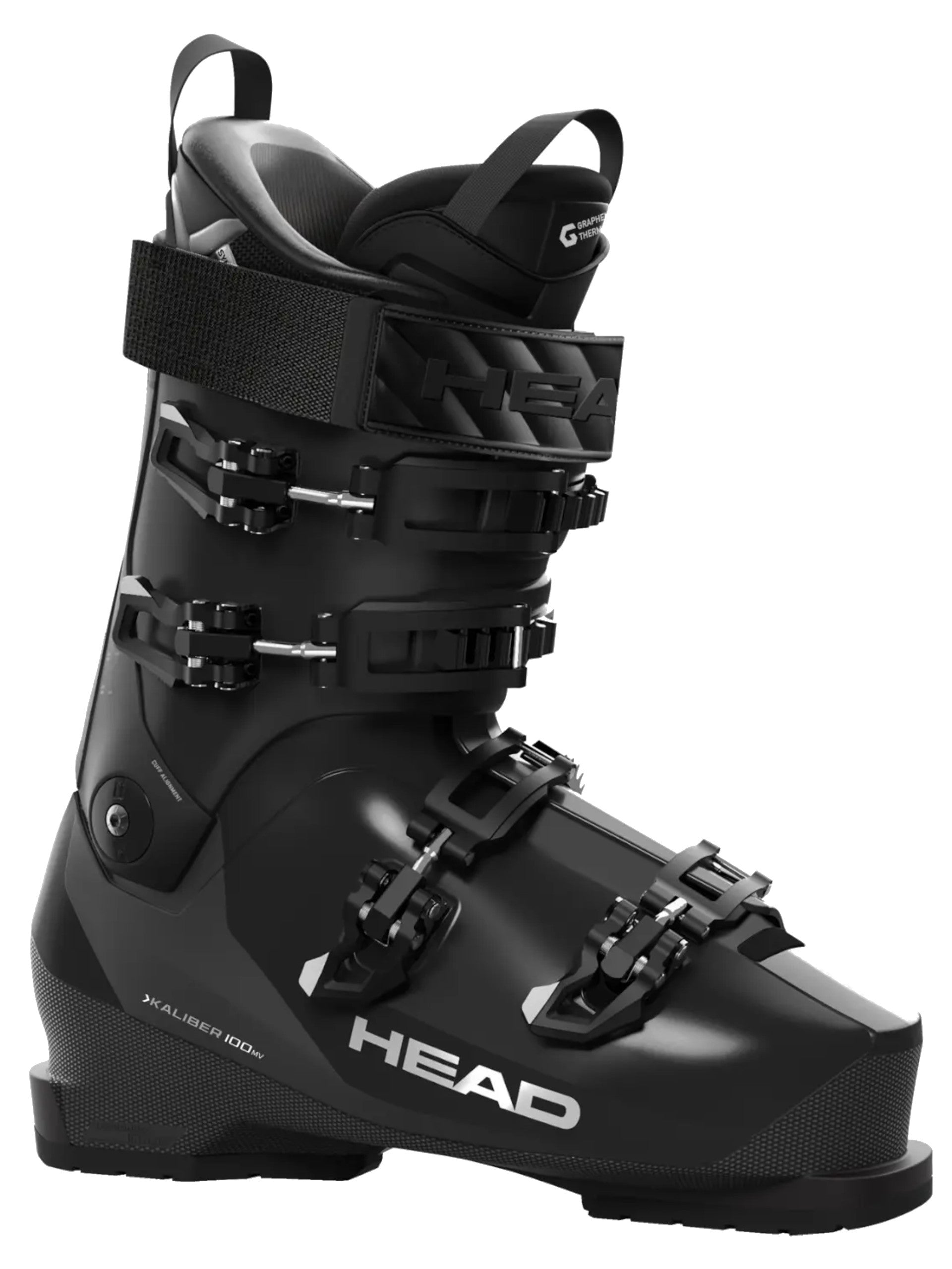 Scarponi Head da sci uomo neri Kaliber 100 MV. Questi scarponi a neve hanno la forma da 100 mm presenta una nuova forma che combina un maggiore spazio in punta con un avvolgimento più stretto del gambetto attorno alla parte inferiore della gamba. La scarpetta Synapse S, più sottile e dalla forma più anatomica, migliora ulteriormente la calzata con una migliore tenuta del piede, oltre all'aggiunta di grafene intrecciato per la regolazione della temperatura. Il profilo posteriore dello scafo rigido fornisce resistenza, potenza e precisione, consentendo di utilizzare una plastica più morbida nelle aree dell'avampiede e insieme alla sovrapposizione dei lembi di plastica, forniscono un avvolgimento uniforme del piede fino alle dita, modellandosi sul piede e massimizzando la funzionalità del BOA. Questi scarponi da sci hanno la tecnologia Graphene Thermocomfort che assorbe e dissipa il calore.