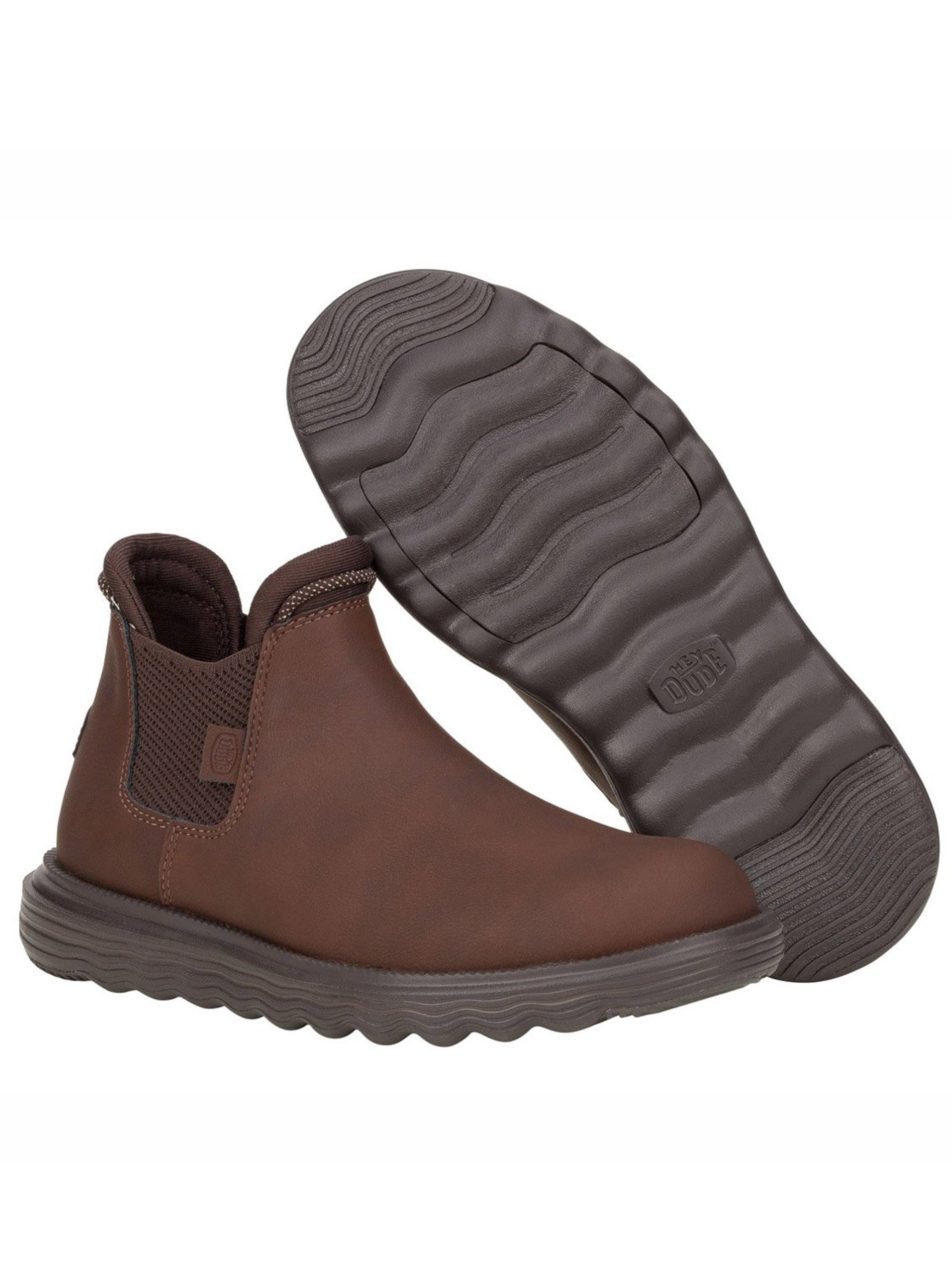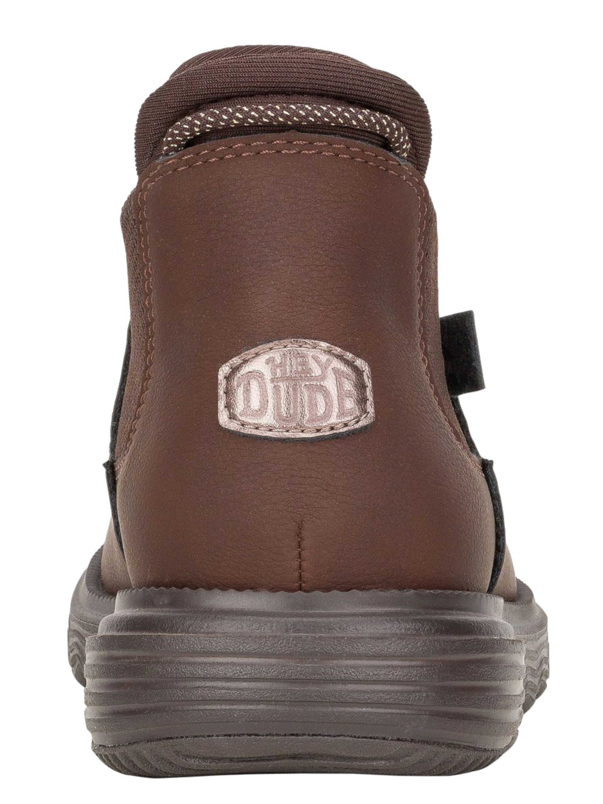 Scarpe Hey Dude marroni Branson W Classic da donna 42659. Questi stivaletti Hey Dude marroni hanno la tomaia in pelle scamosciata, la suola in EVA per il massimo comfort e la soletta rimovibile in memory foam. Sul davanti di queste scarpe Hey Dude troviamo la 'chiusura' slip on e il patch del brand applicato sulla zona tallonare a contrasto colore.