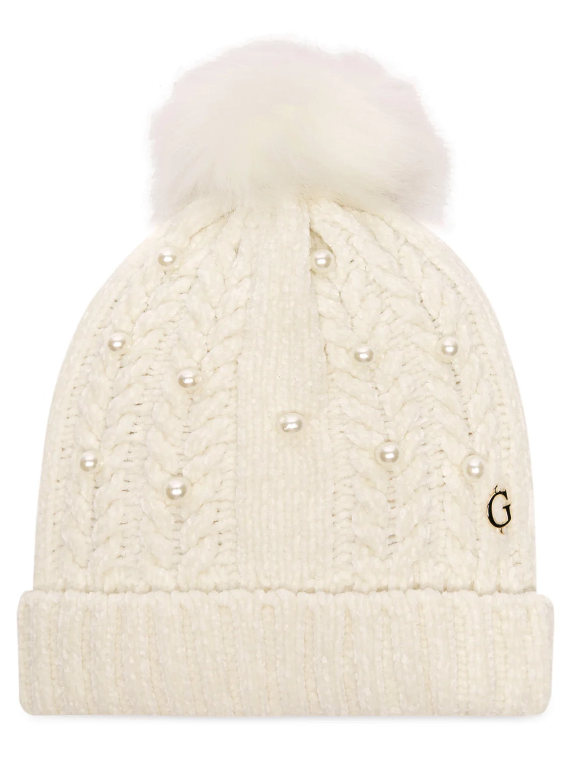 Cappello Guess da donna bianco con perle e pompon J3BZ05Z39H0G012