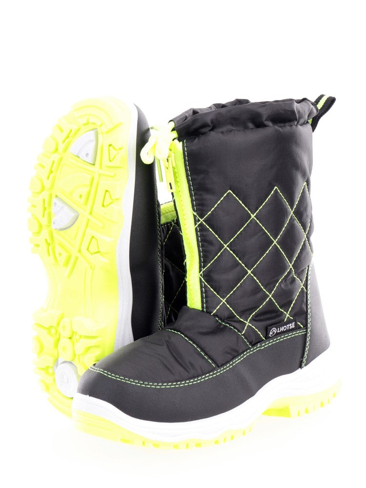 Black and yellow Lhotse snow boots made of FIZZYNOIR snowproof thermal fabric