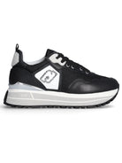 Scarpe Liu Jo nere Maxi Wonder 01 da donna patch Liu Jo argentato BA5013PX602. Queste sneakers Liu Jo nere hanno la tomaia in pelle, la suola platform in gomma, la chiusura con lacci e il patch Liu Jo applicato tono su tono.