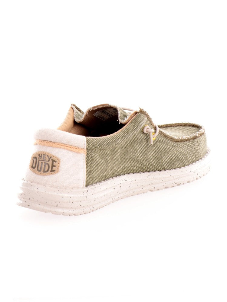 Wally Coastline Jute 4095 men's green Hey Dude shoes. These green Hey Dude shoes have an upper made of breathable fabric, a reinforced rubber sole and Flex&Fold technology which guarantees maximum comfort. On the front of these Hey Dude moccasins we find the lace closure and the brand patch embroidered on the back in a contrasting color. Minimal and versatile, these Hey Dude are perfect for the summer season.