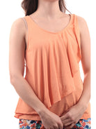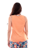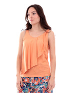 Molly Bracken orange women's tank top with weaving, model TR152BE, made of 100% pure cotton. This Molly Bracken sleeveless sweater has a V-neck, regular hem and woven front.