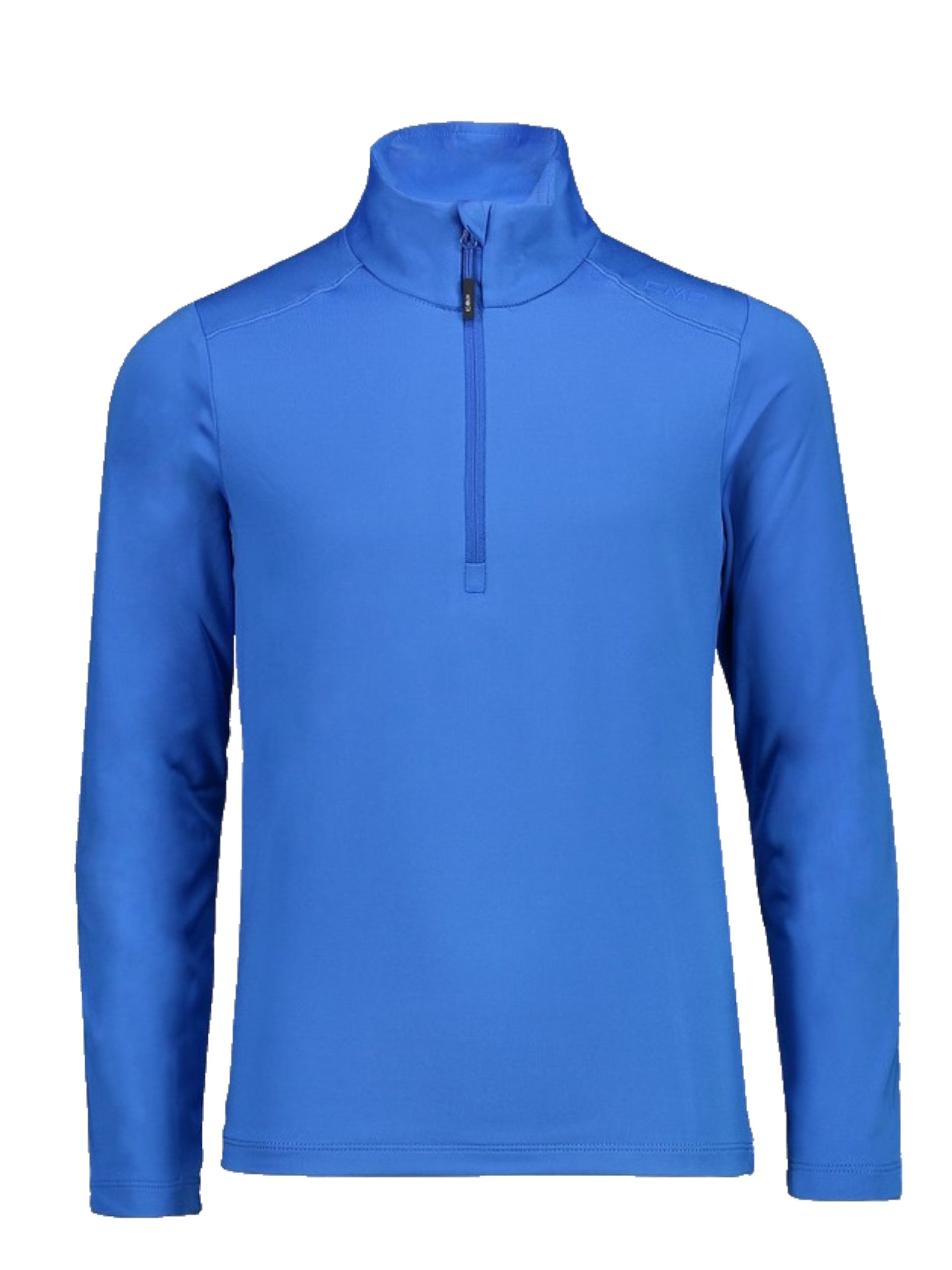 Pile mezza zip collo alto Softech da bambino blu CMP Sweat. Questo pile blu da bambino è stato realizzato da un tessuto super leggero con finitura in carbonio che garantisce morbidezza e traspirabilità.